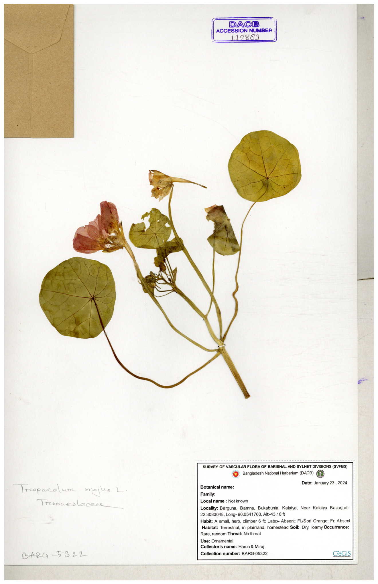 | 112882 | Tropaeolaceae | Tropaeolum majus | 30-11--0001 |