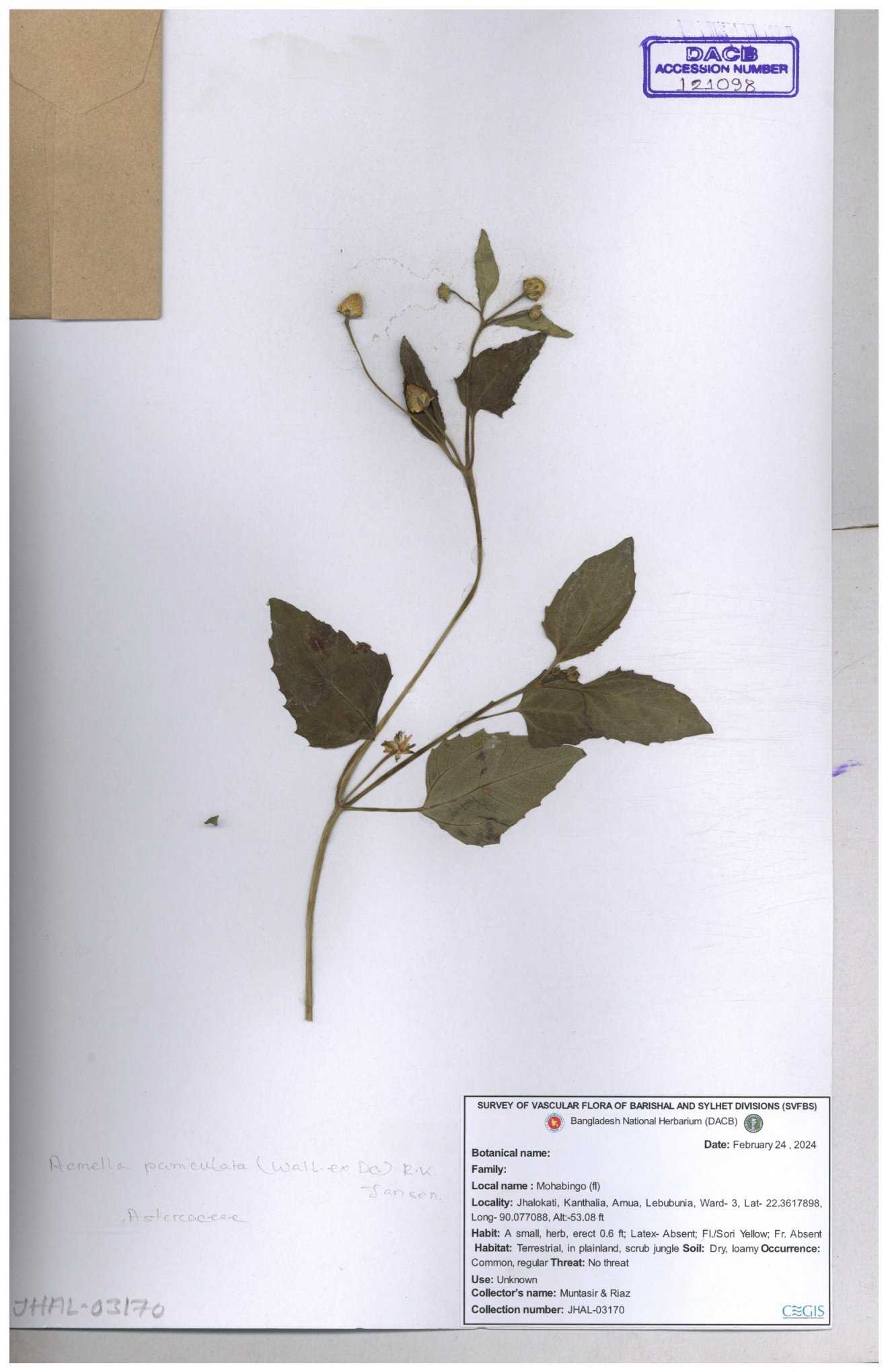 | 85737 | Asteraceae | Acmella panicalata | Joyanta Mominur, Al amin, Kamrul & Suborno | JCR-2873 08-02-2017 |
