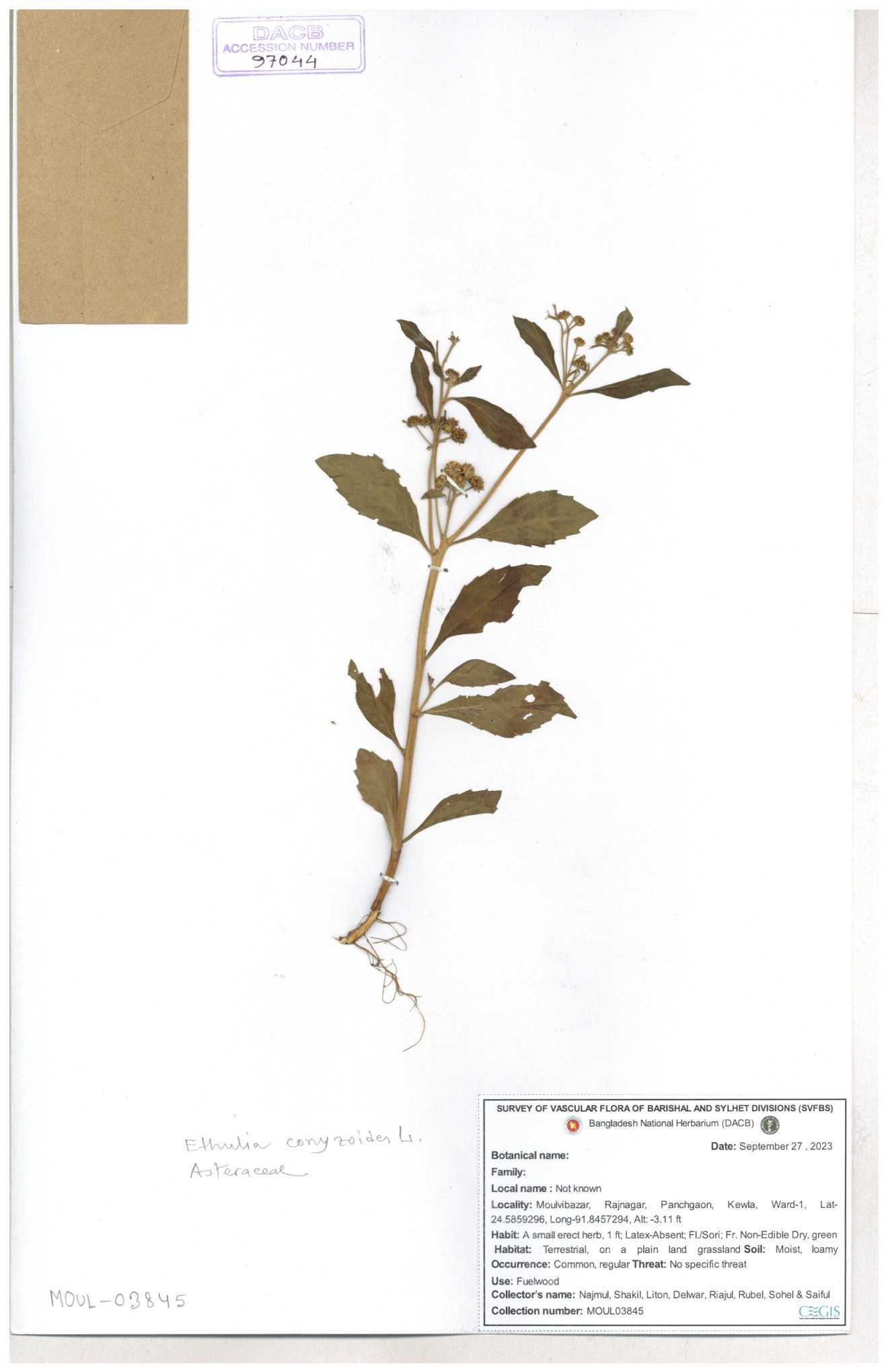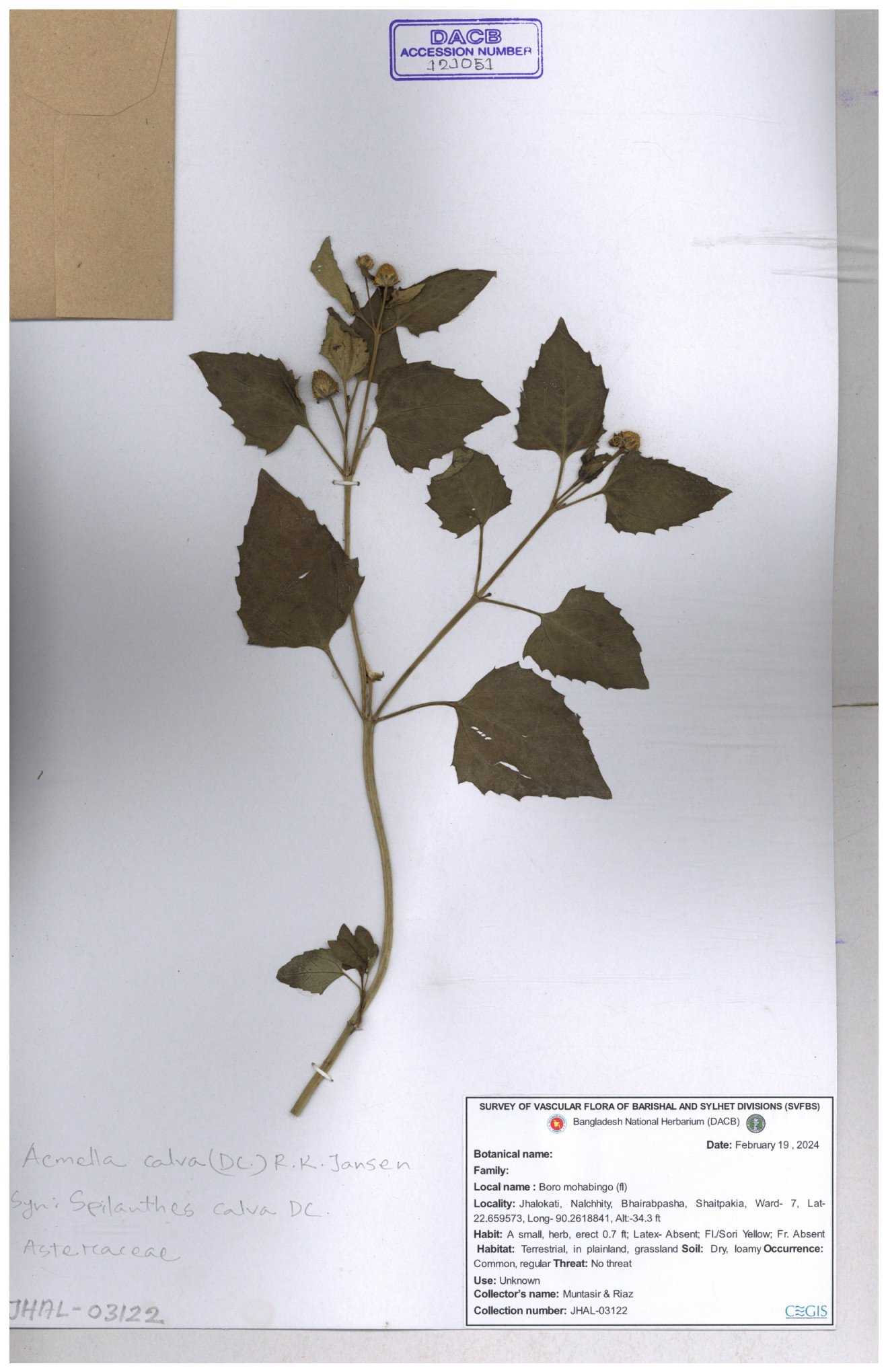 | 66009 | Asteraceae | Acmella Calva (Gaertn.) Burtt | Khandakar Kamrul Islam | KKI-4065 12-03-2020 |