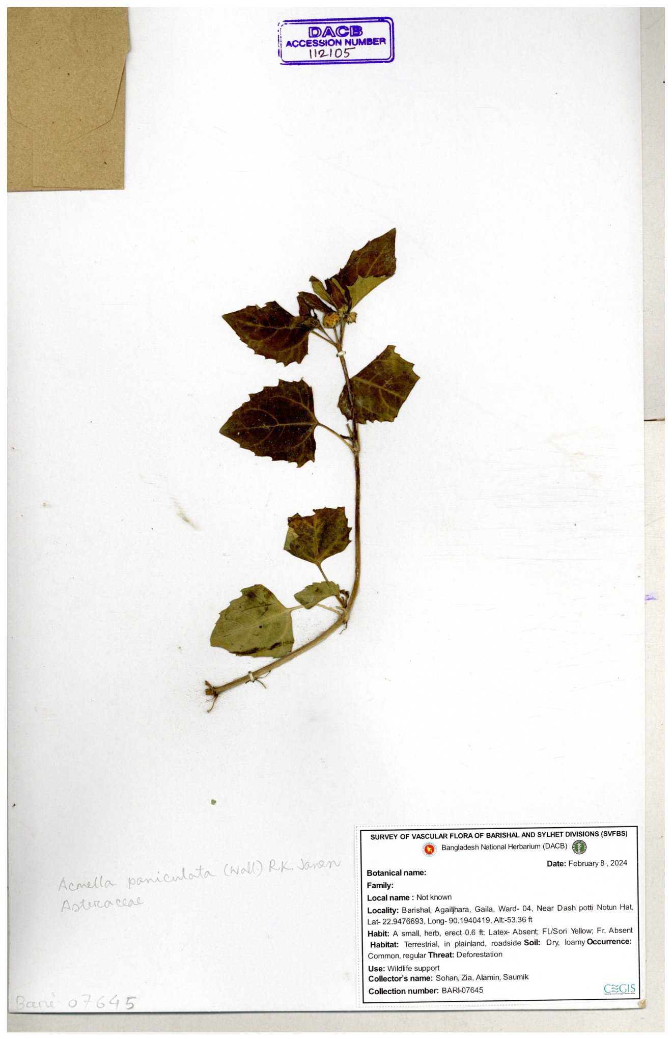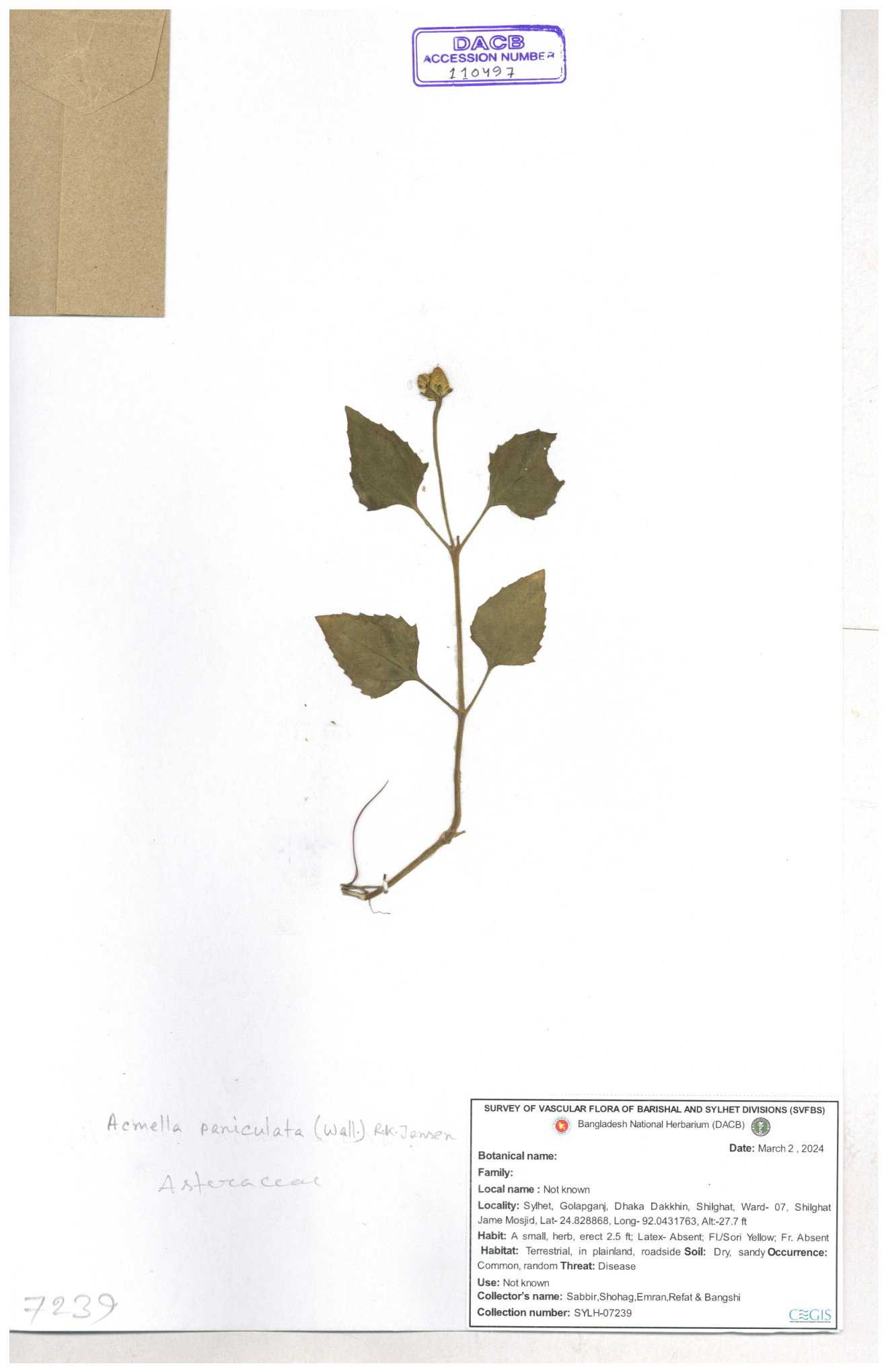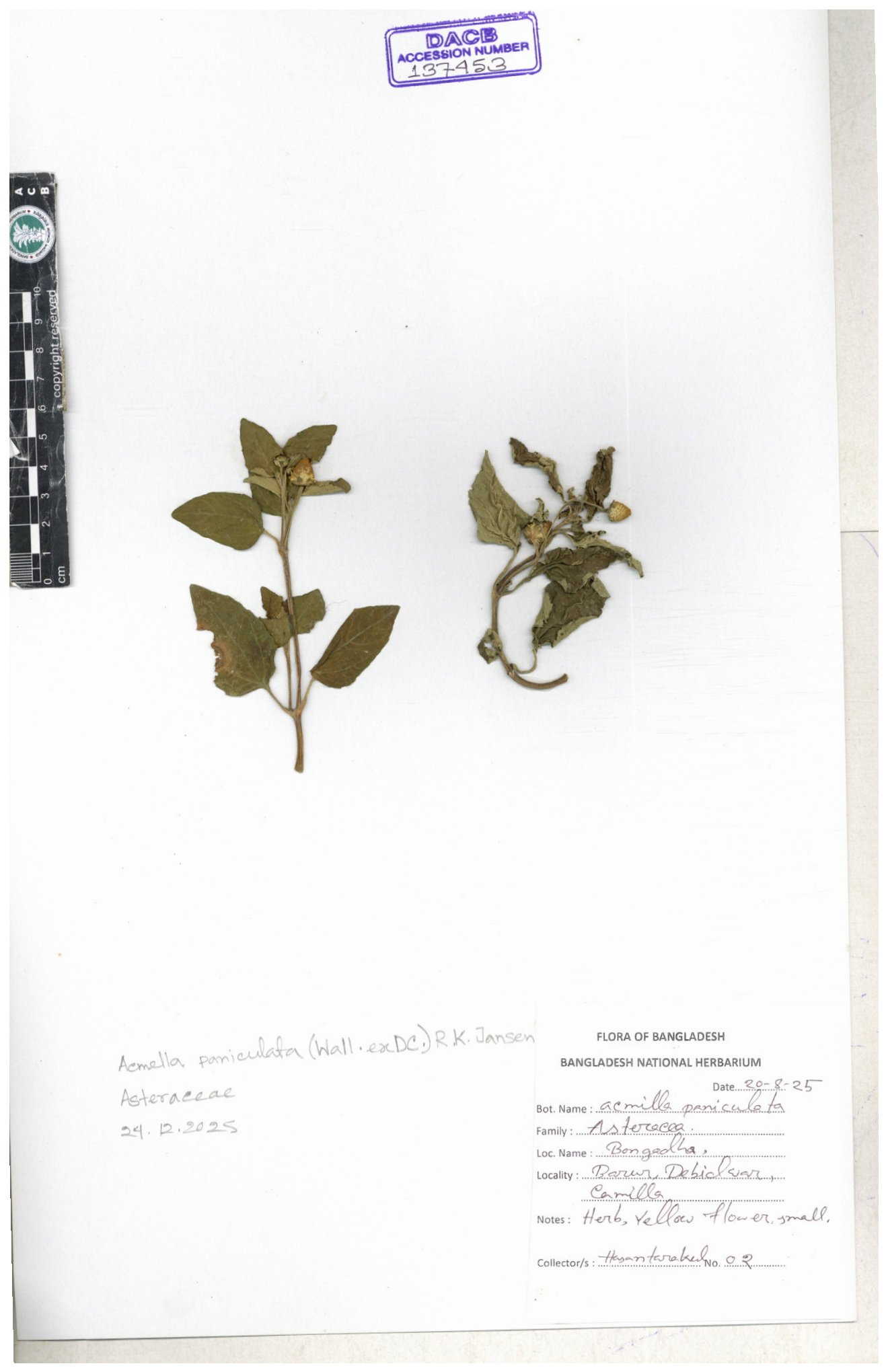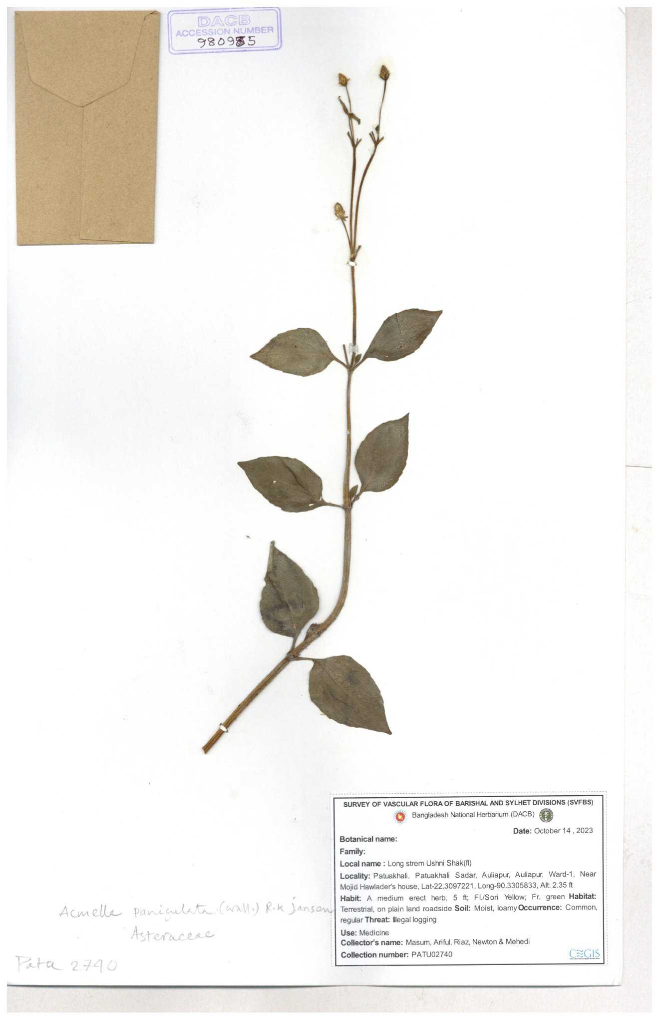 | 61726 | Asteraceae | Acmella paniculata | Nazim Uddin | NU-18 10-04-2017 |