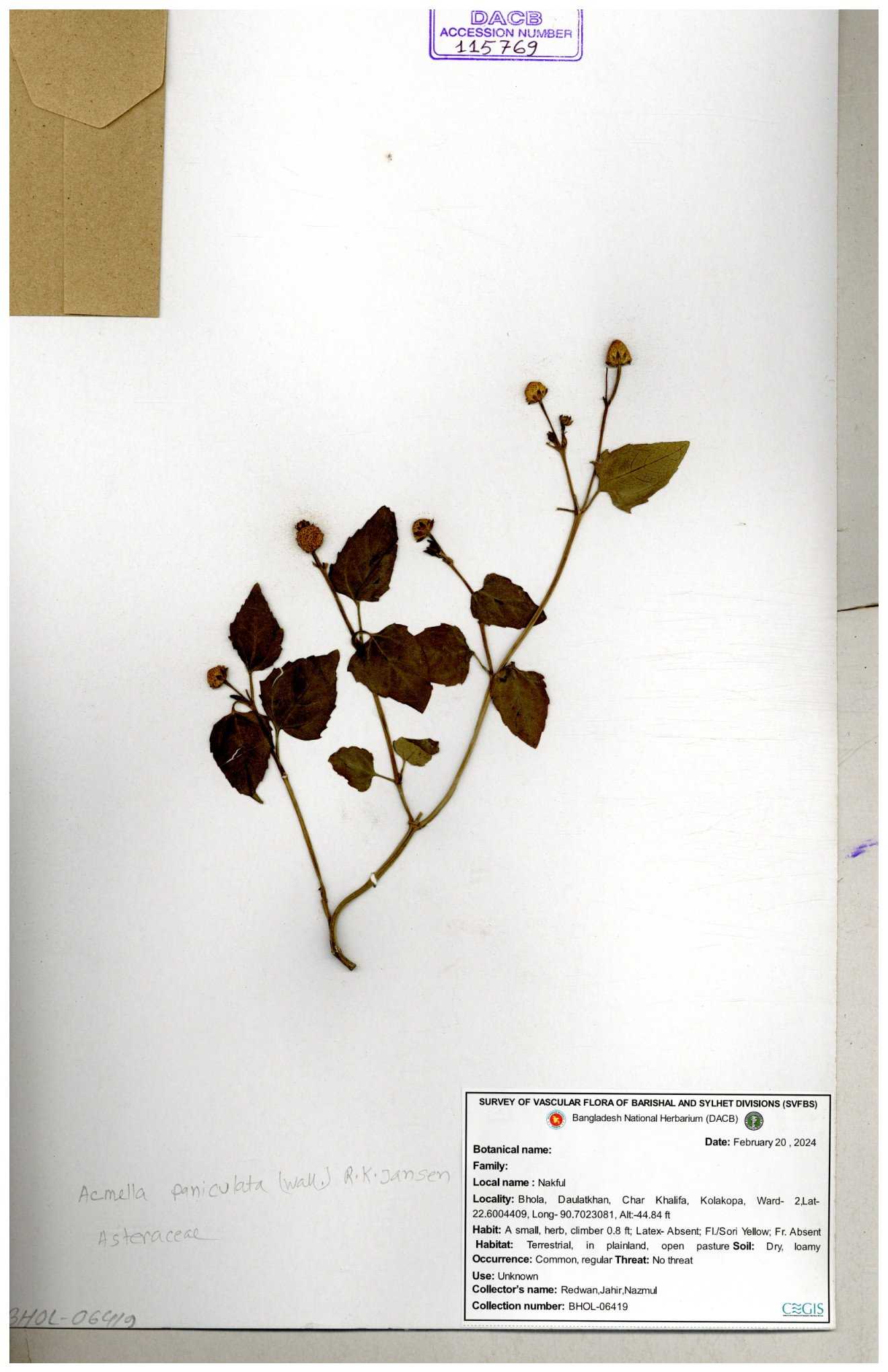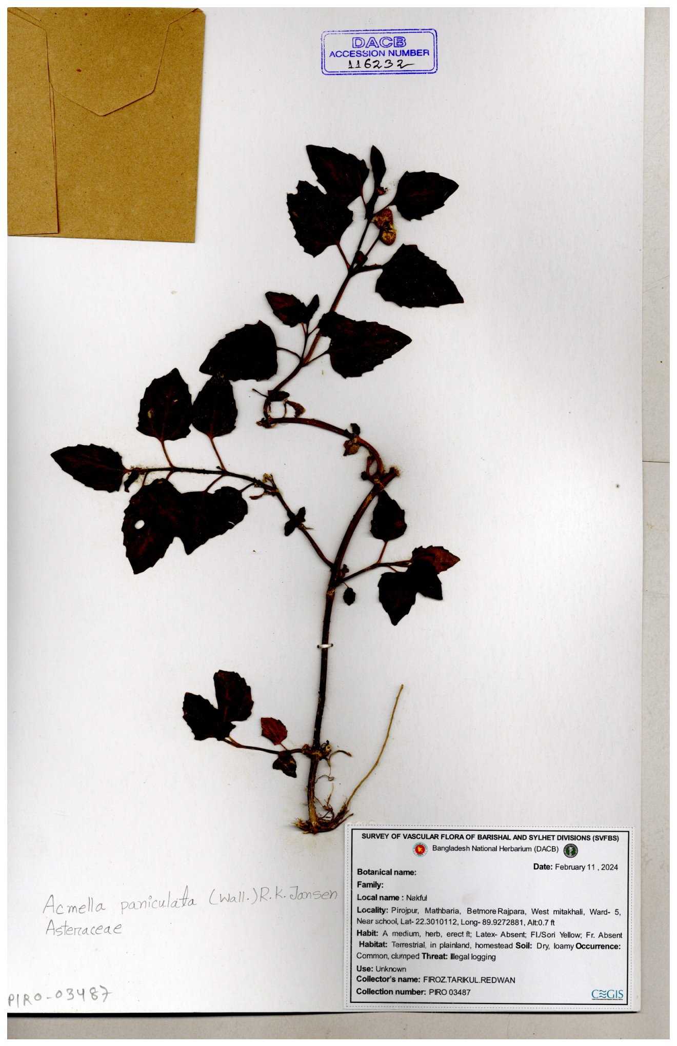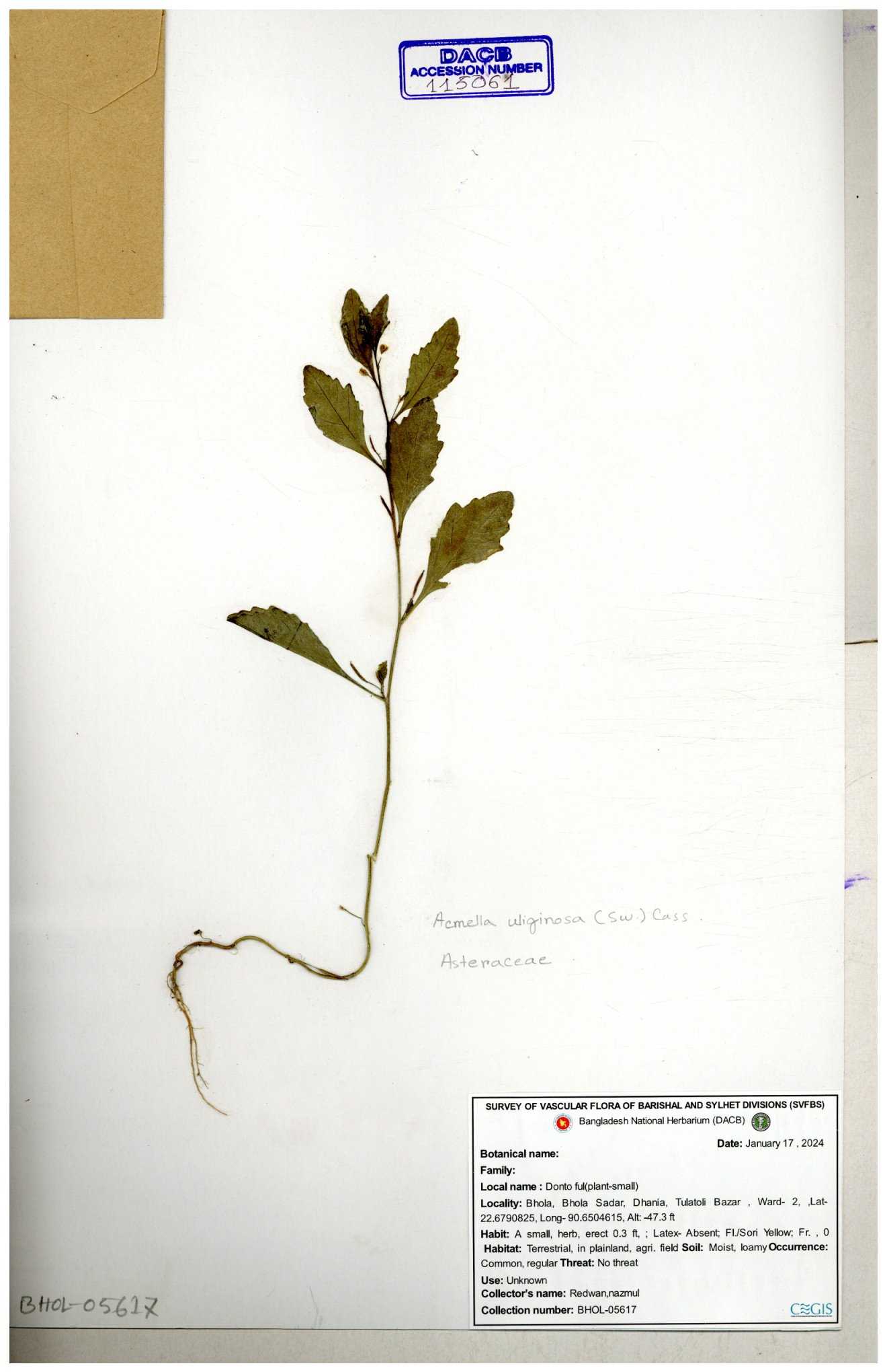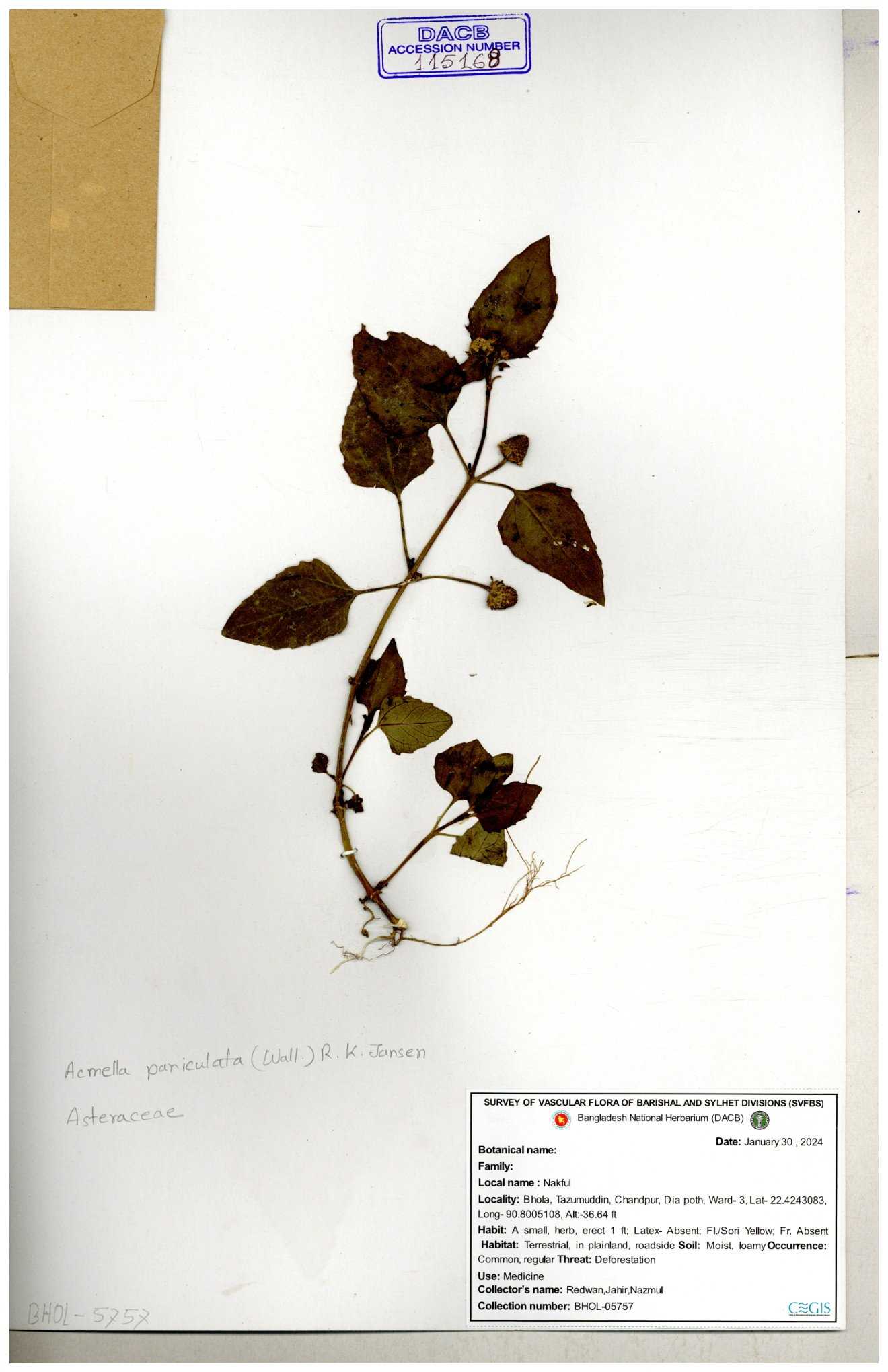 | 61726 | Asteraceae | Acmella paniculata | Nazim Uddin | NU-18 10-04-2017 |