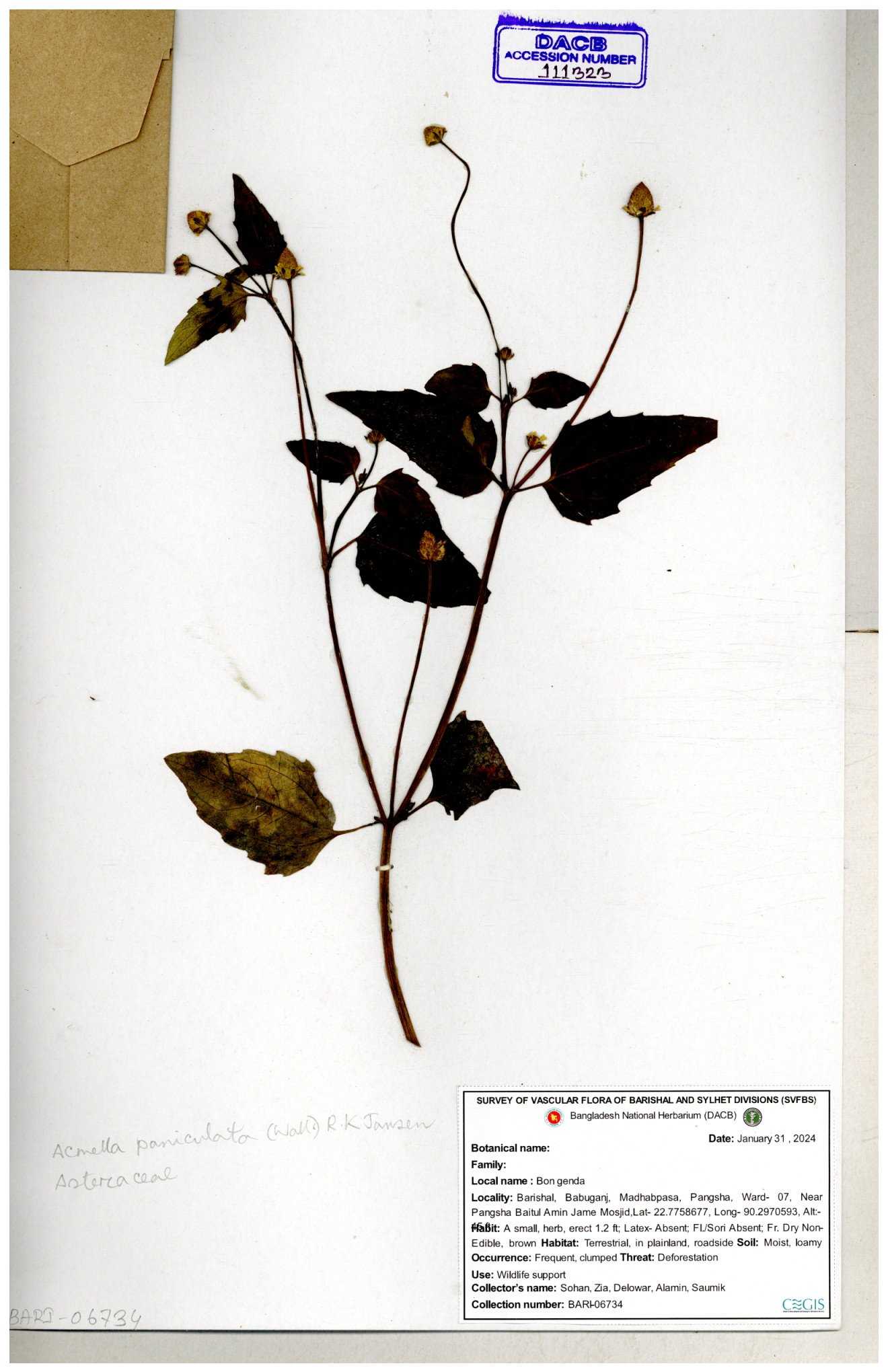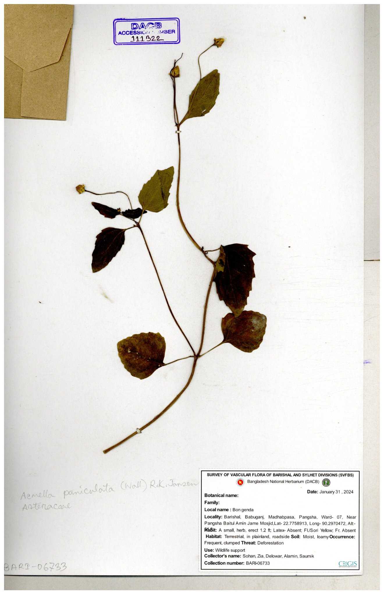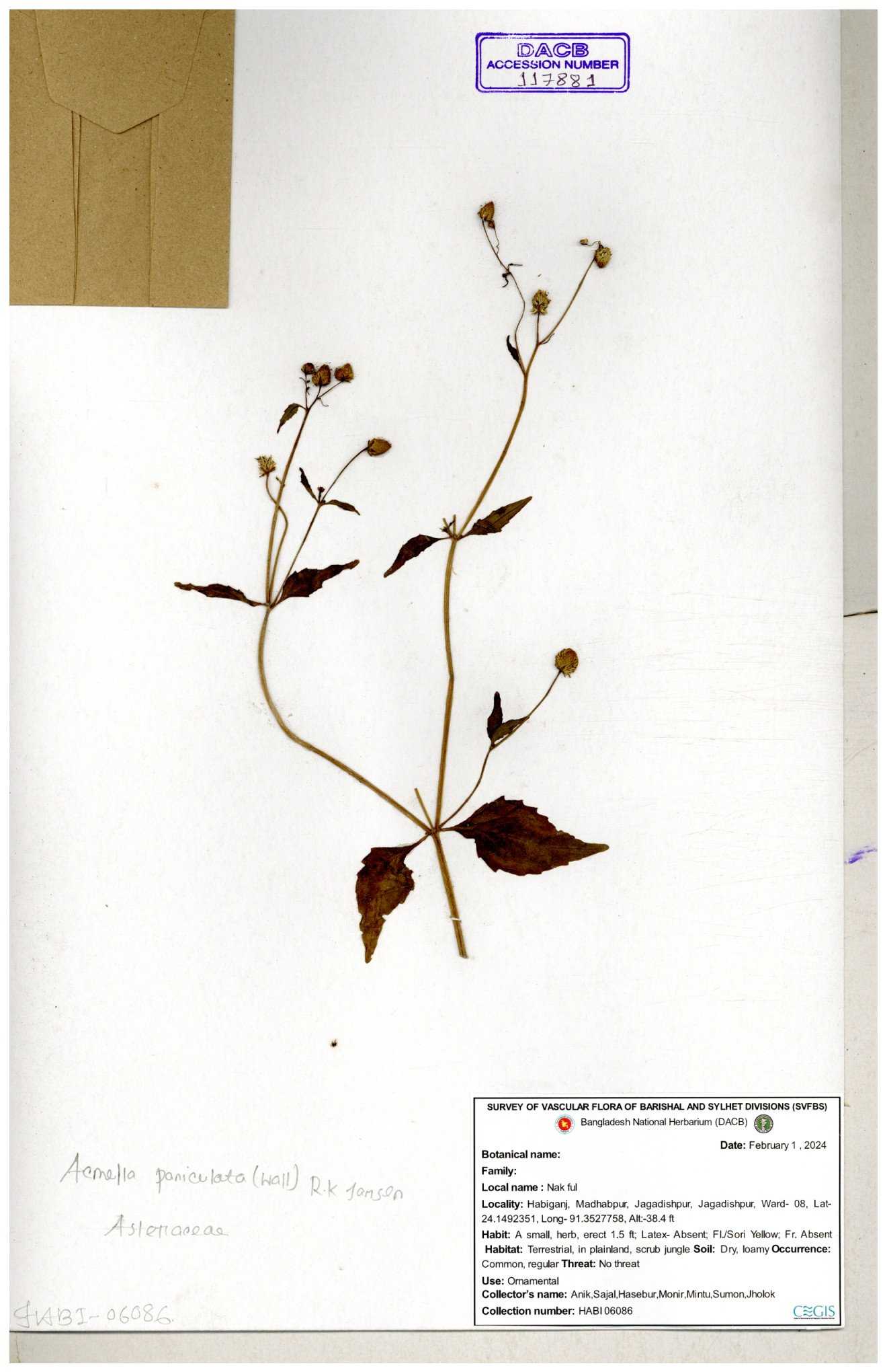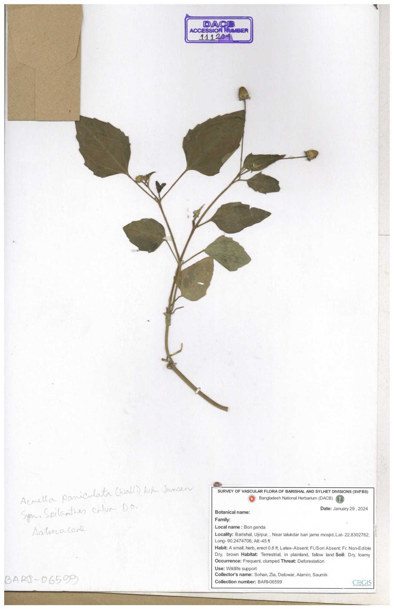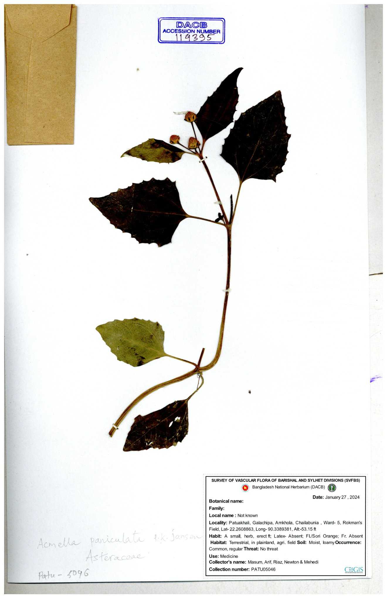 | 61726 | Asteraceae | Acmella paniculata | Nazim Uddin | NU-18 10-04-2017 |