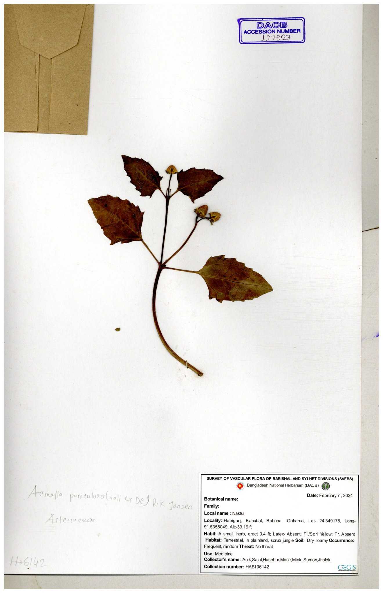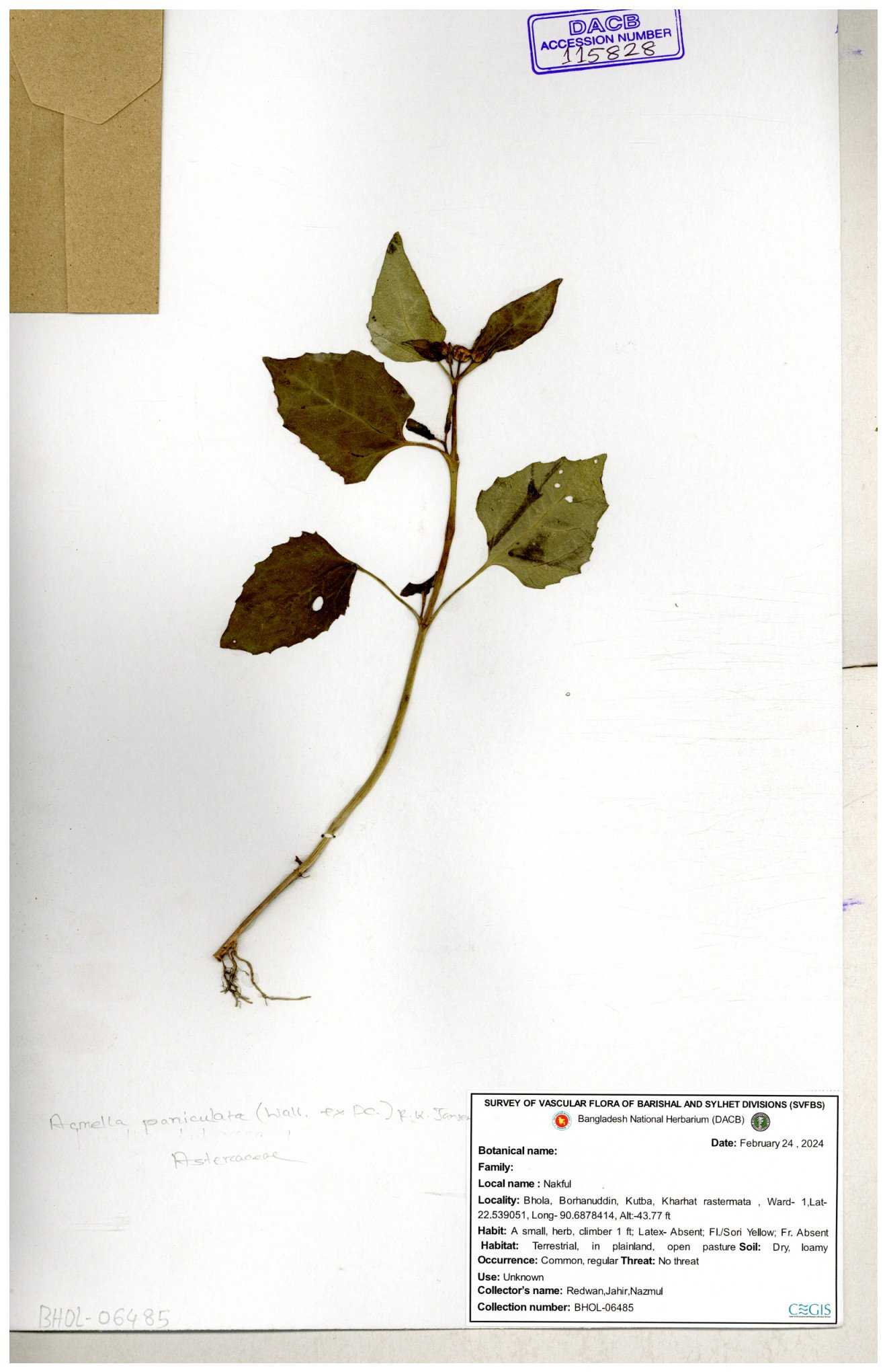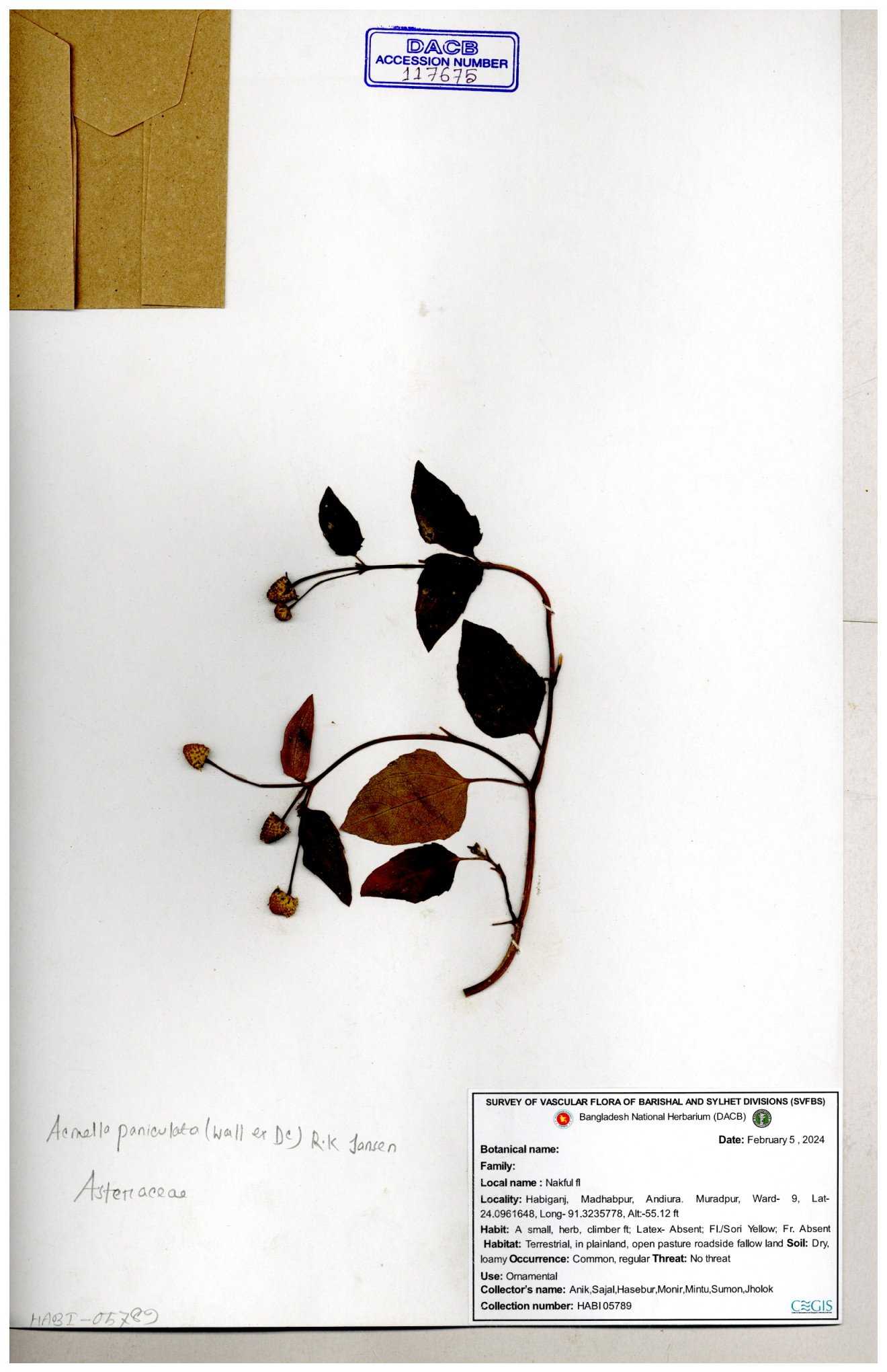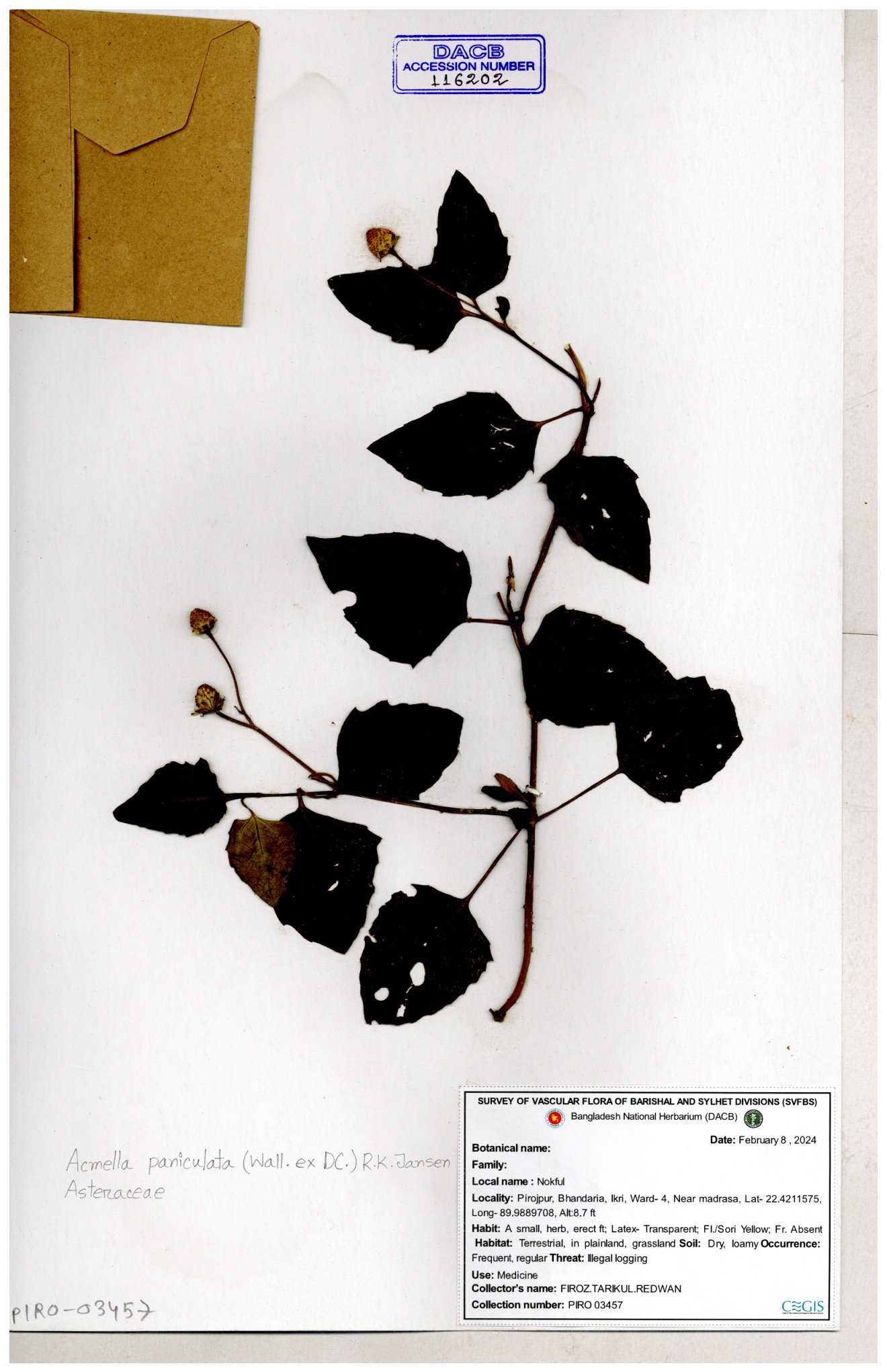 | 61726 | Asteraceae | Acmella paniculata | Nazim Uddin | NU-18 10-04-2017 |