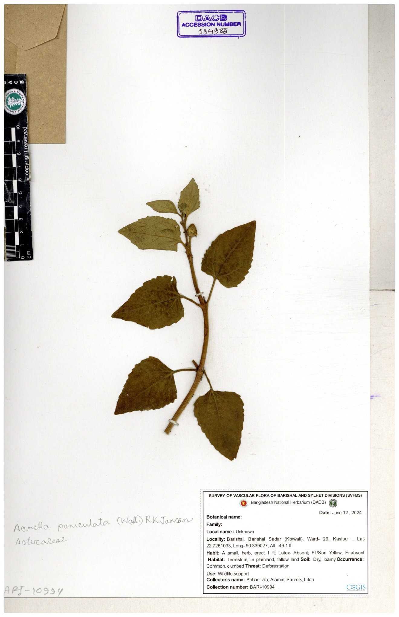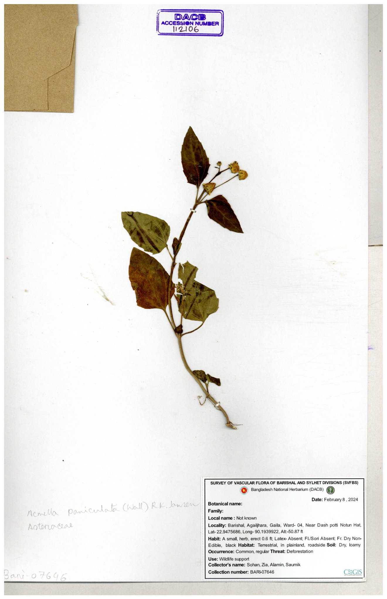 | 103882 | Asteraceae | Acmella paniculata | 30-11--0001 |