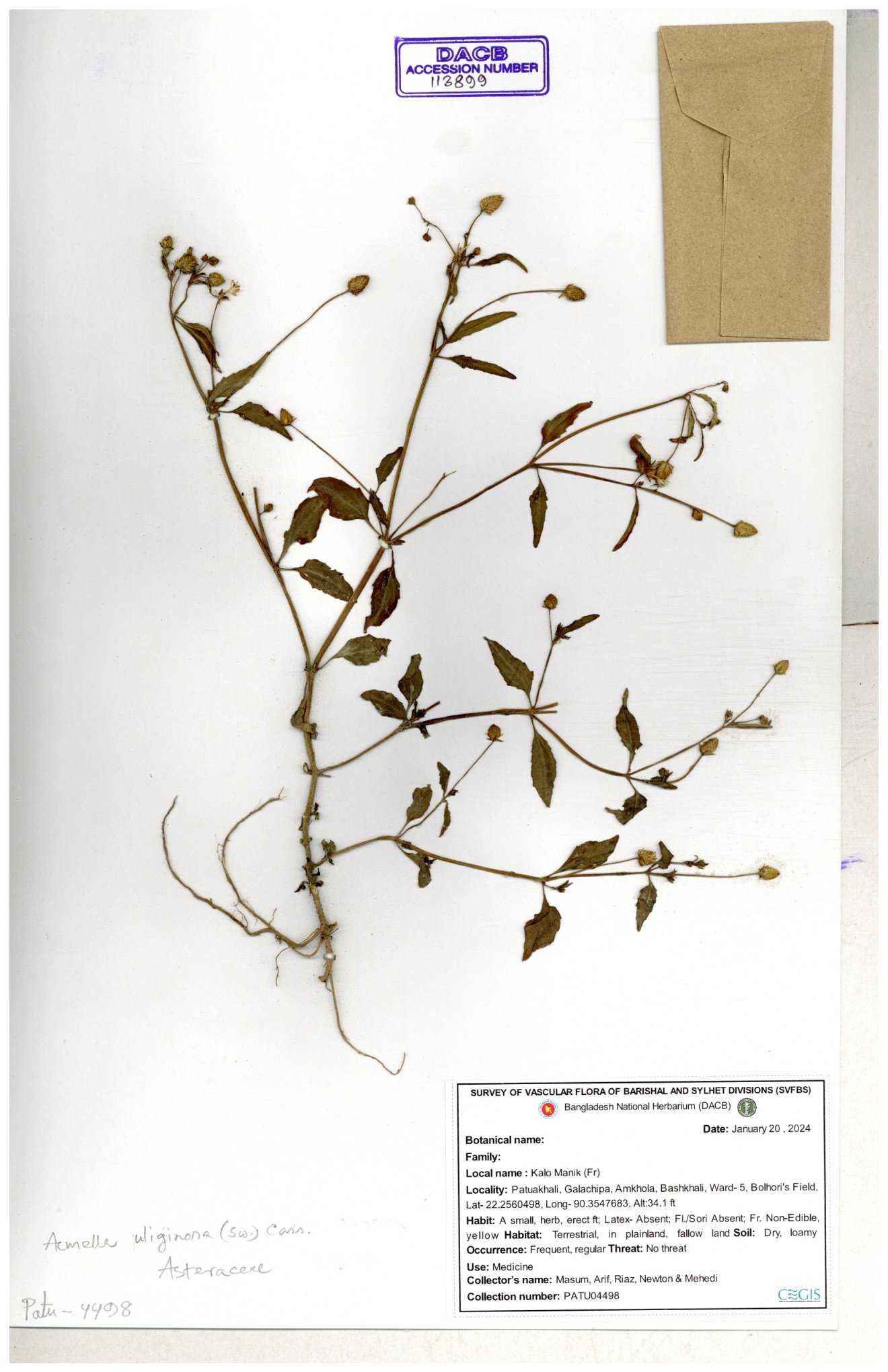 | 113898 | Asteraceae | Acmella uliginosa | 30-11--0001 |