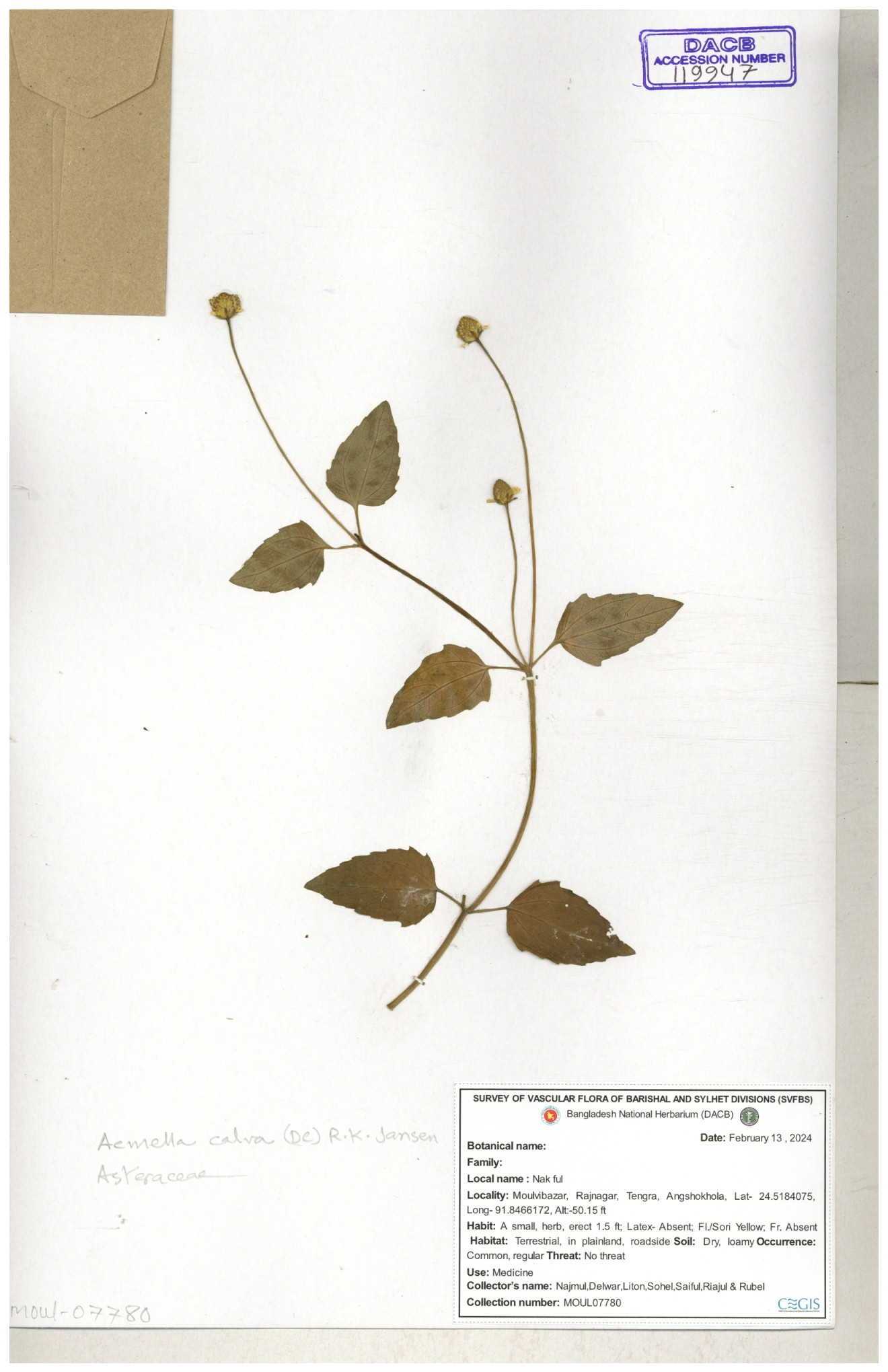 | 119904 | Asteraceae | Acmella calva | 30-11--0001 |