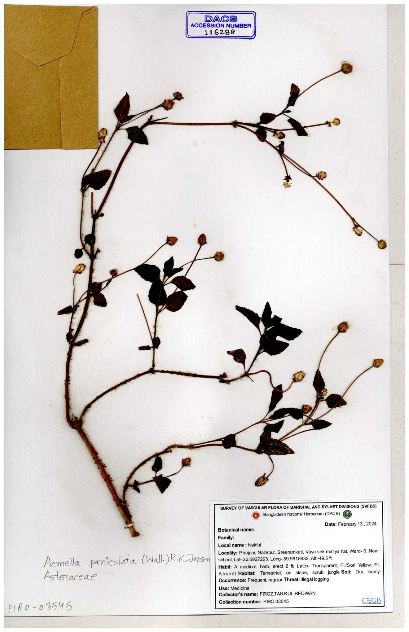 | 116288 | Asteraceae | Acmella paniculata | 30-11--0001 |