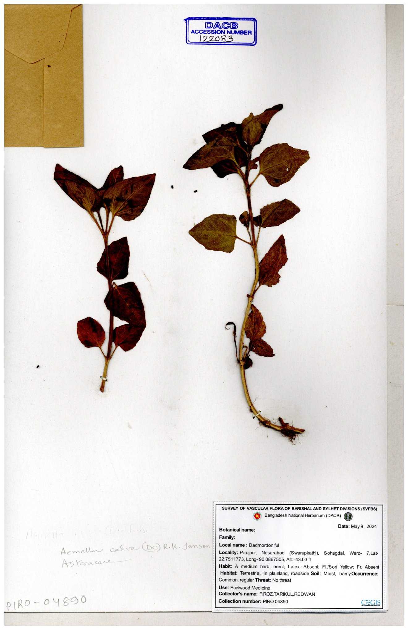 | 89796 | Asteraceae | Acmella calva | 30-11--0001 |