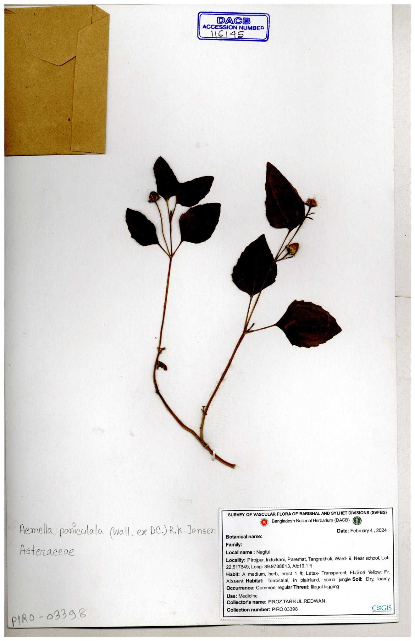 | 105392 | Asteraceae | Acmella peniculata | 30-11--0001 |