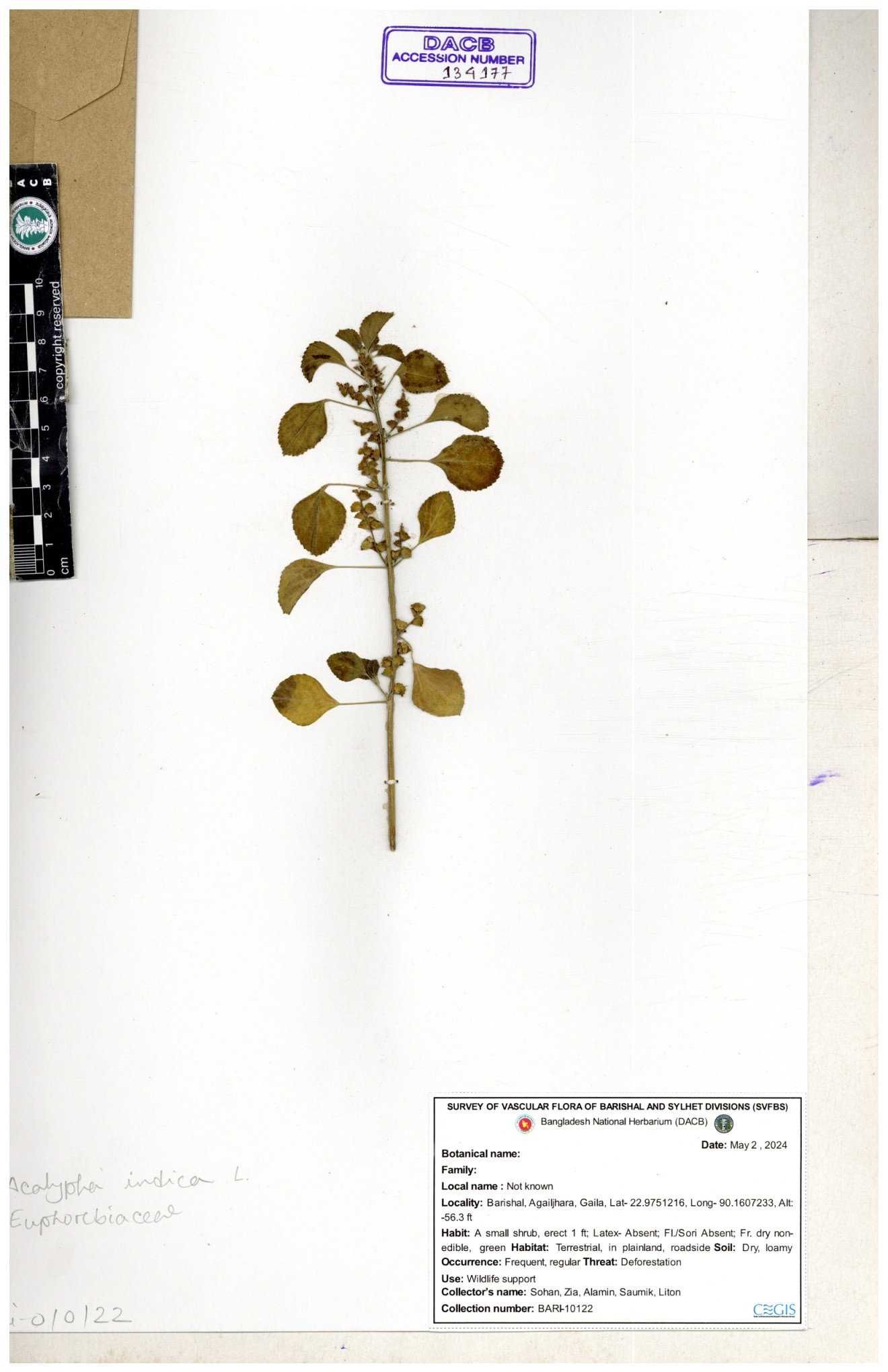 | 134398 | Euphorbiaceae | Acalypha indica | Sohan, Zia, Alamin, Saumik, Liton | 30-11--0001 |
