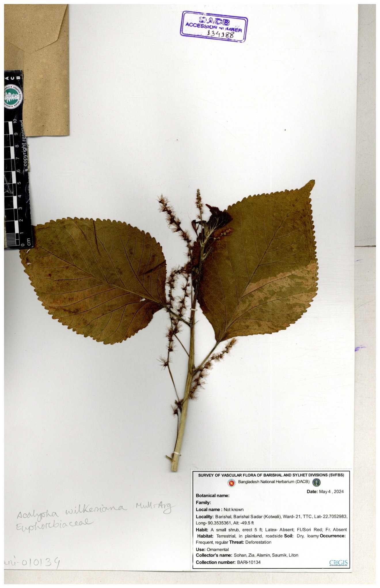 | 134294 | Euphorbiaceae | Acalypha wilkesiana | Sohan, Zia, Alamin, Saumik, Liton | 30-11--0001 |