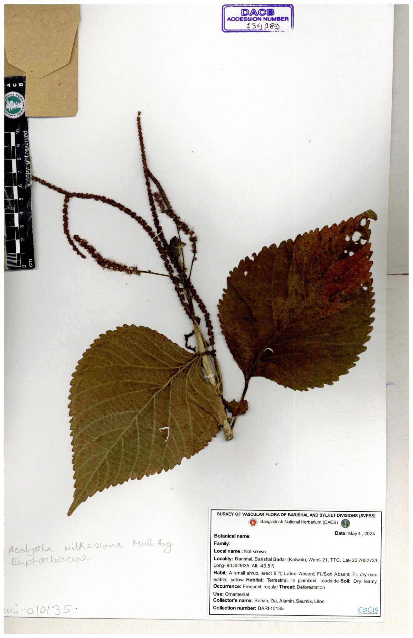 | 134293 | Euphorbiaceae | Acalypha wilkesiana | Sohan, Zia, Alamin, Saumik, Liton | 30-11--0001 |