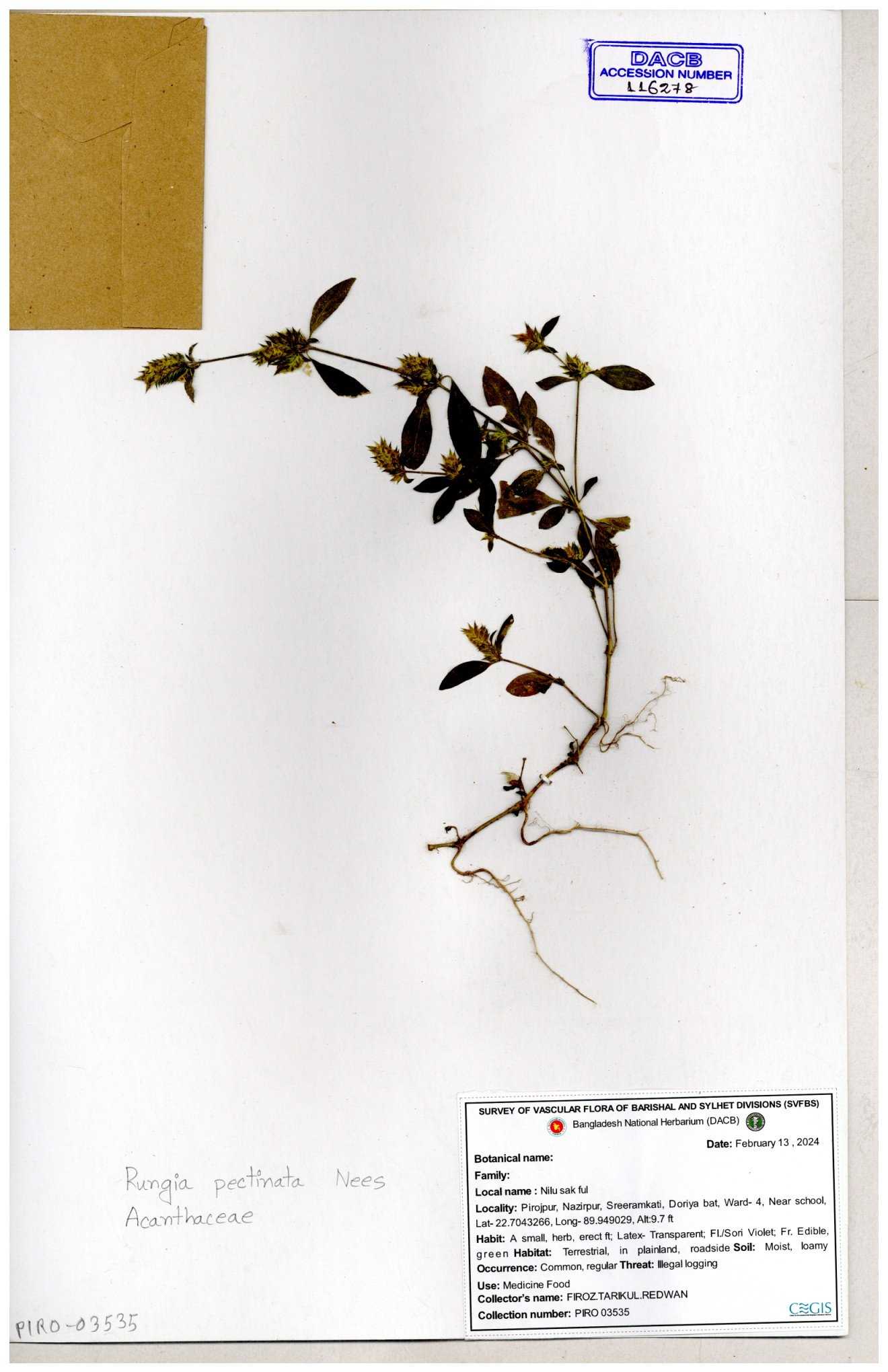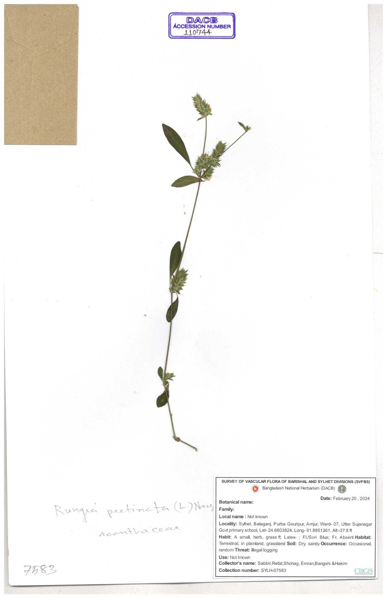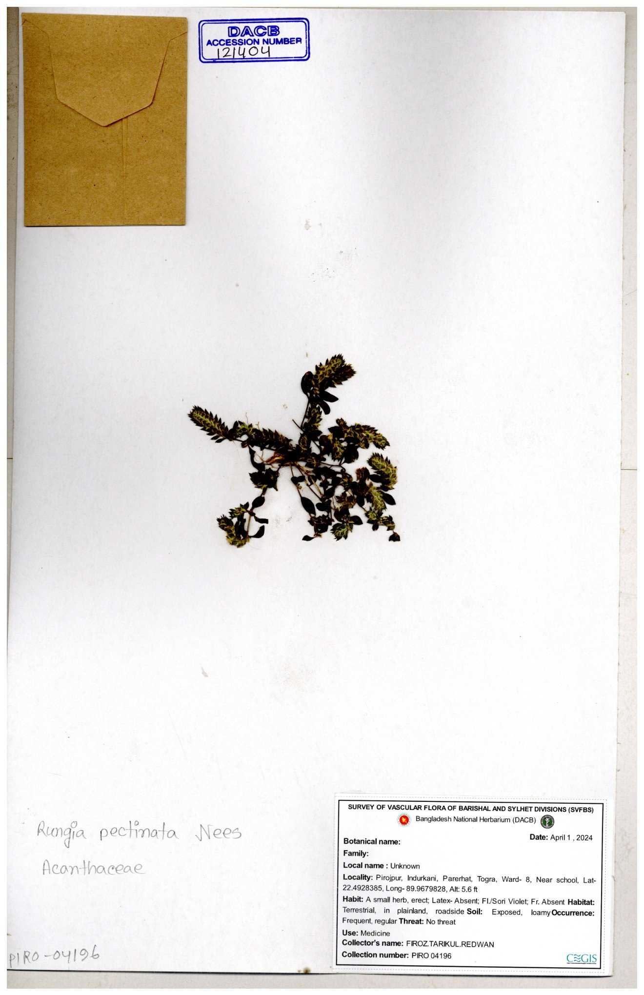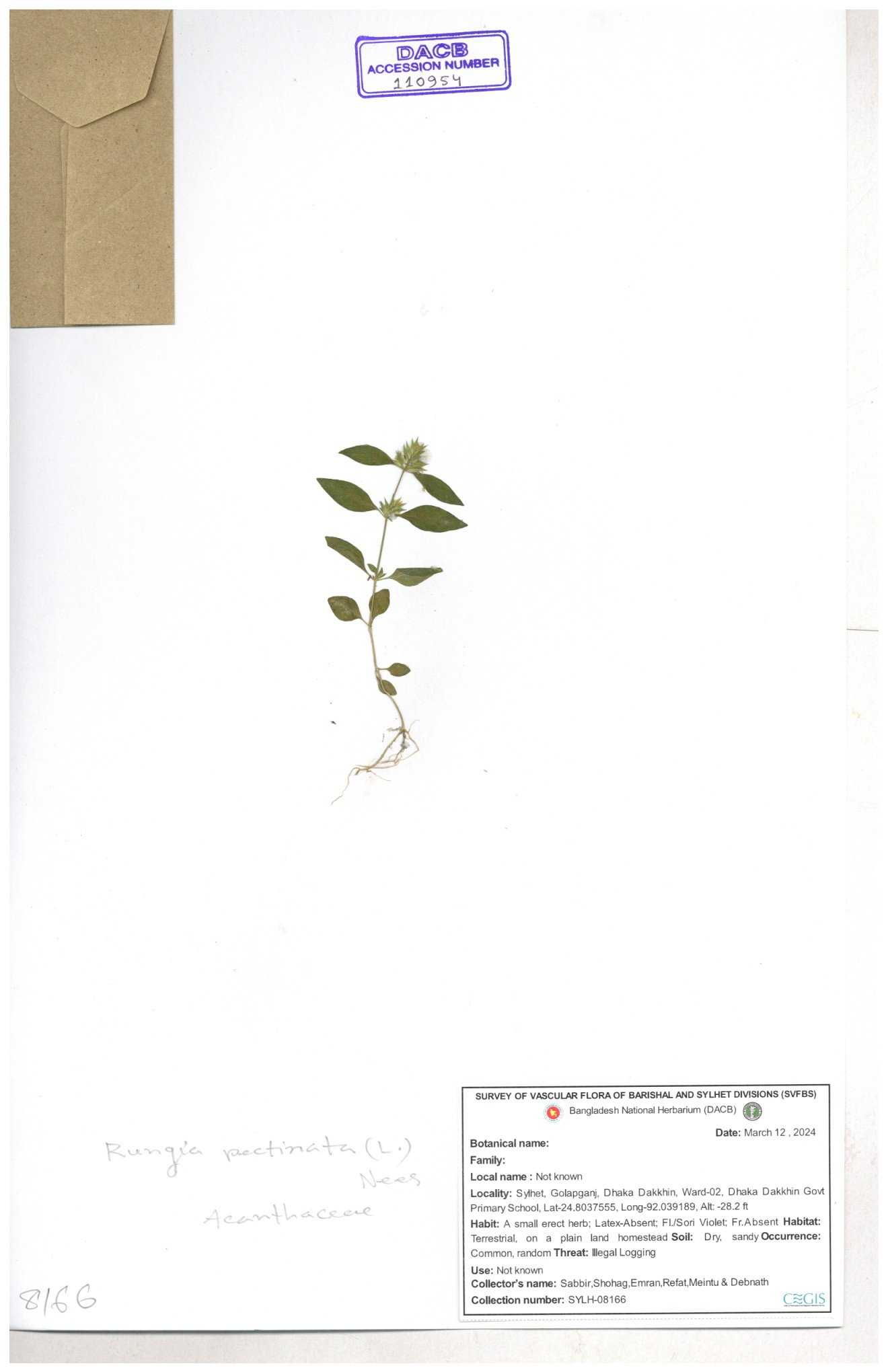 | 111110 | Acanthaceae | Rungia pectinata | 30-11--0001 |