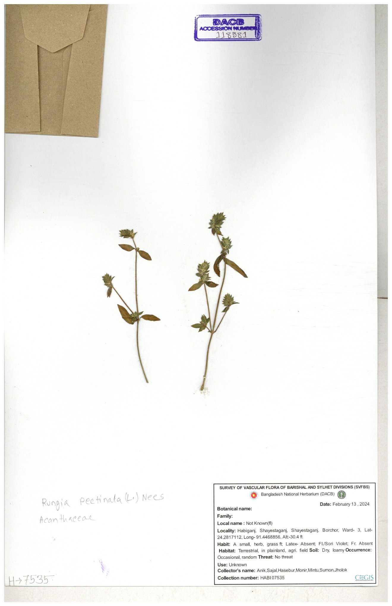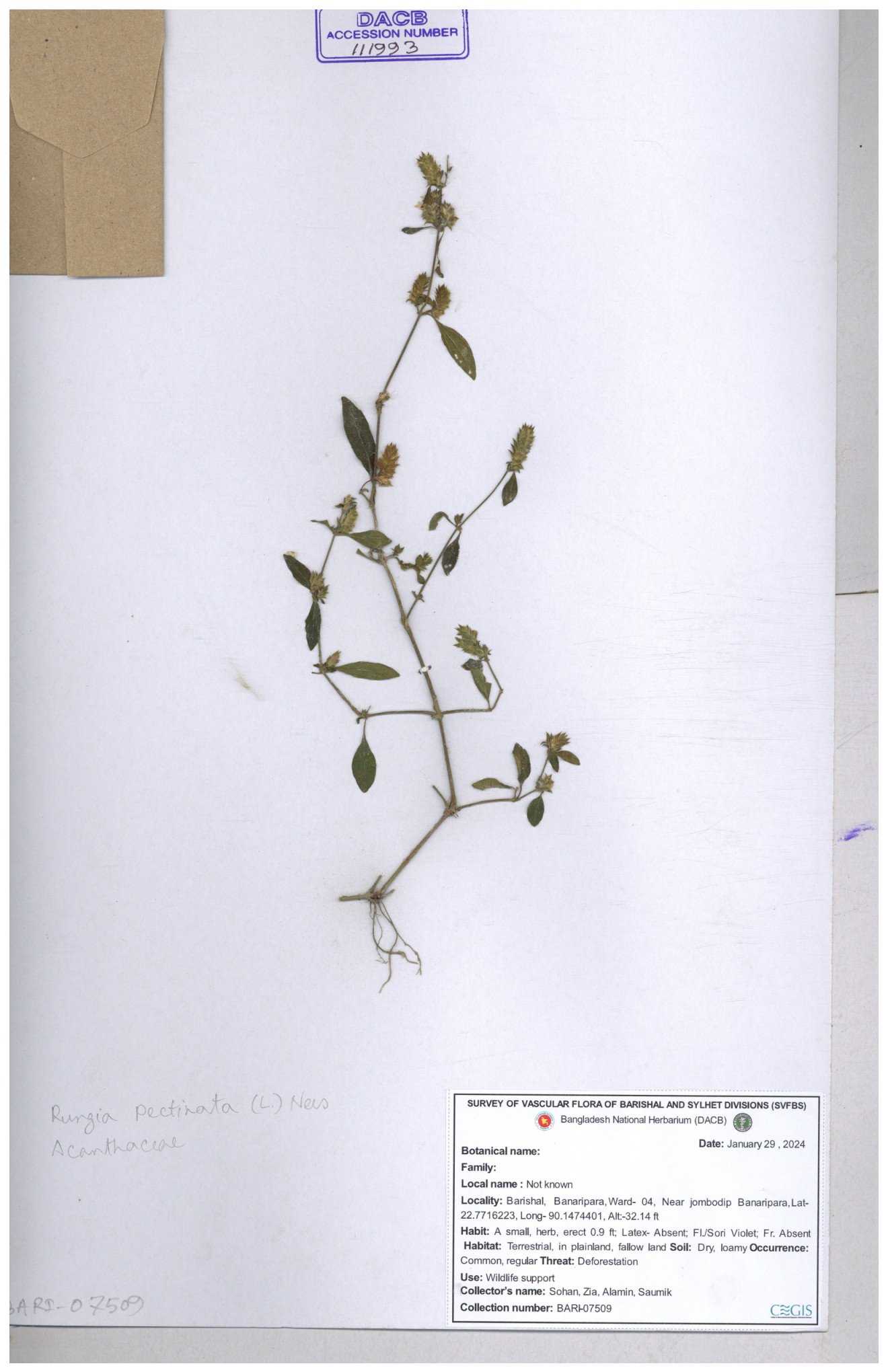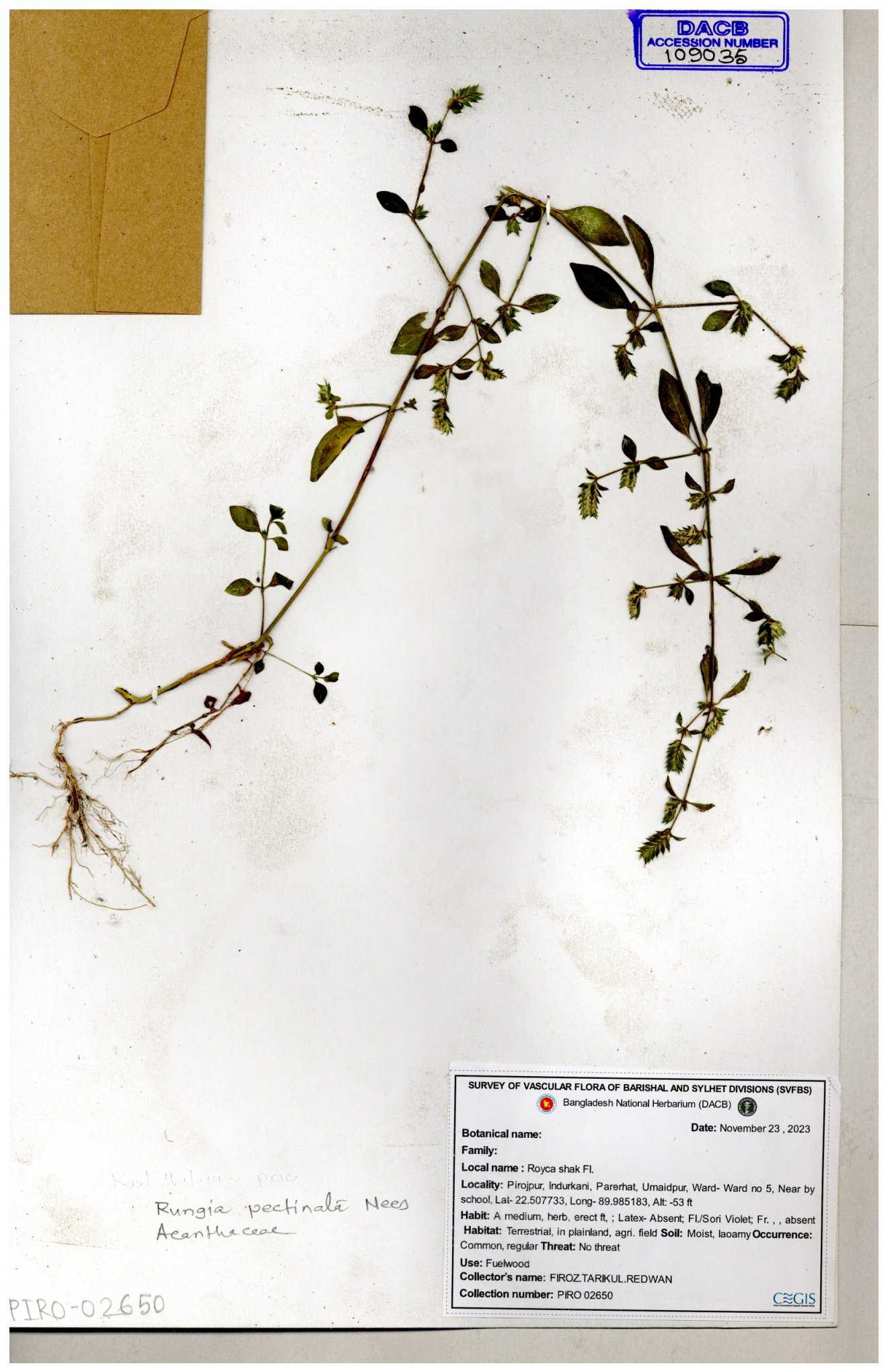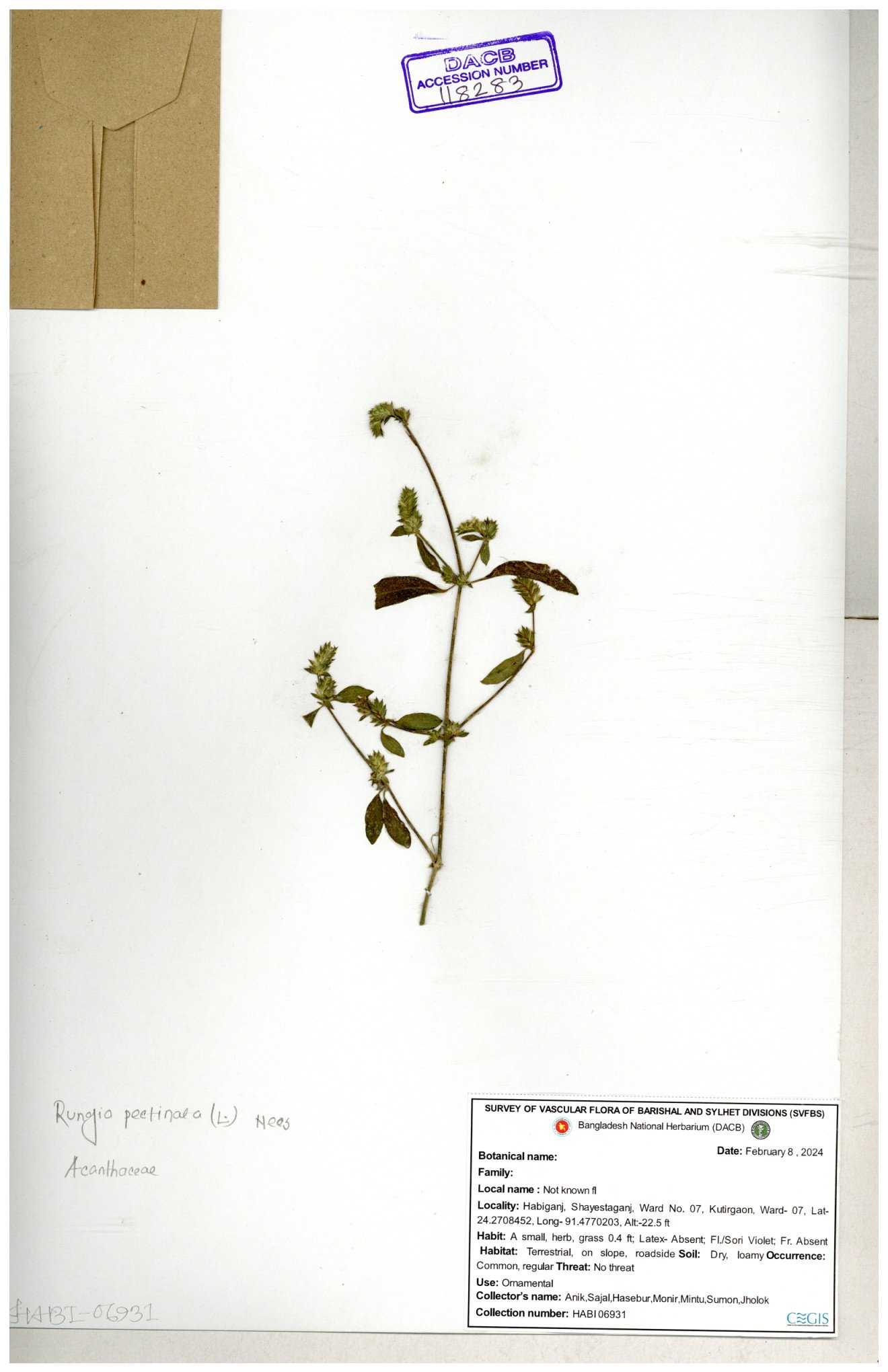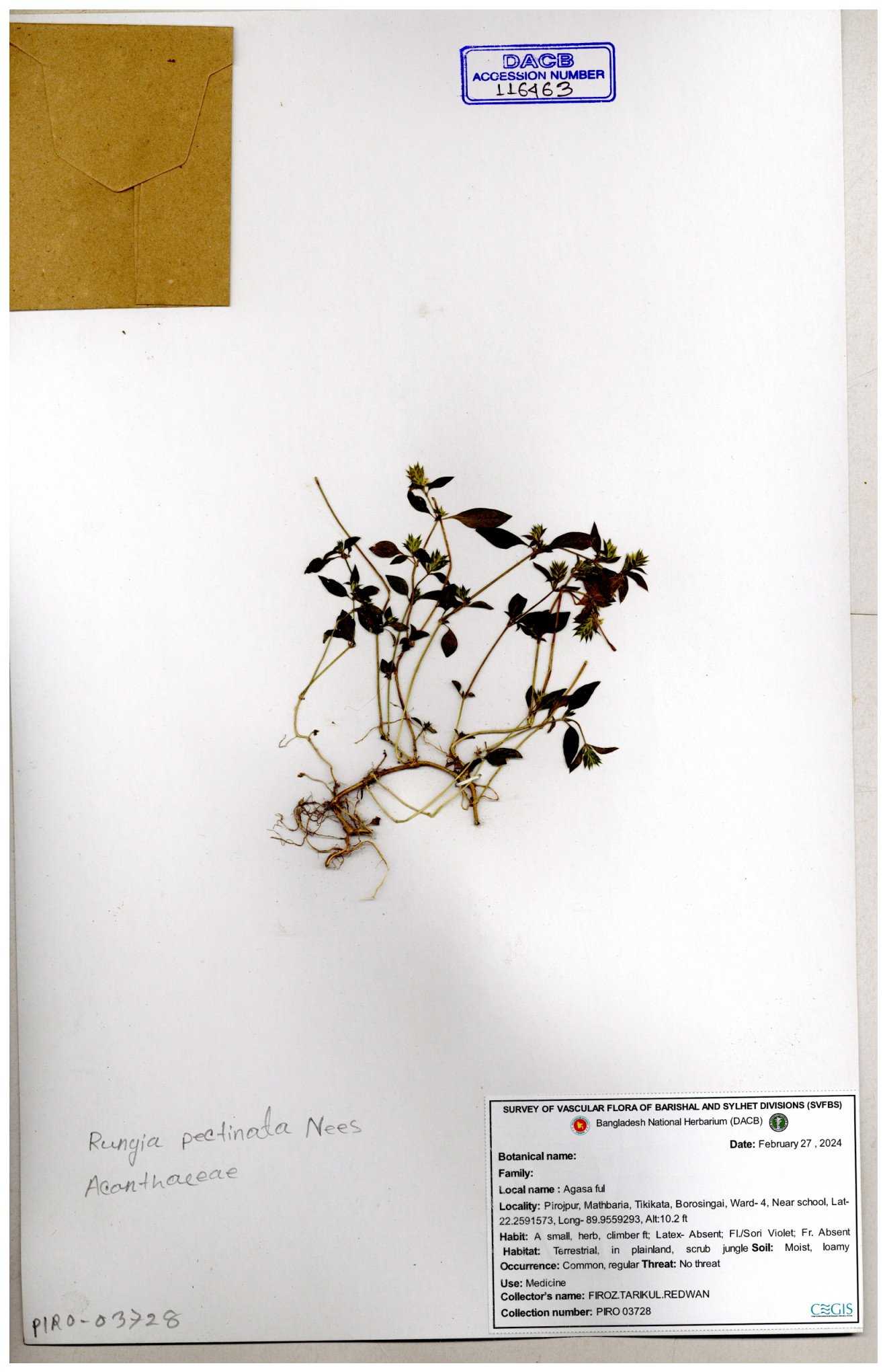 | 111110 | Acanthaceae | Rungia pectinata | 30-11--0001 |