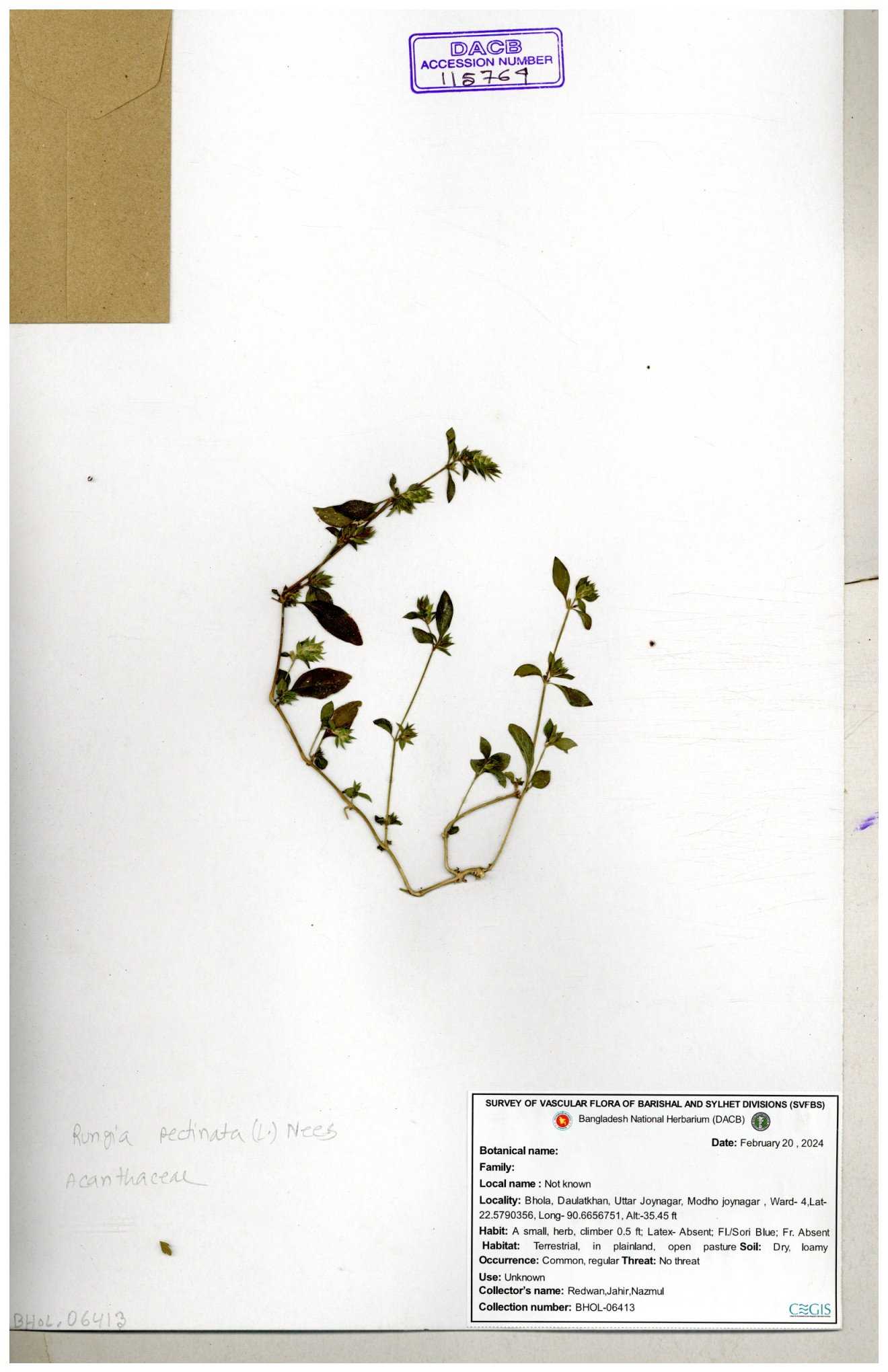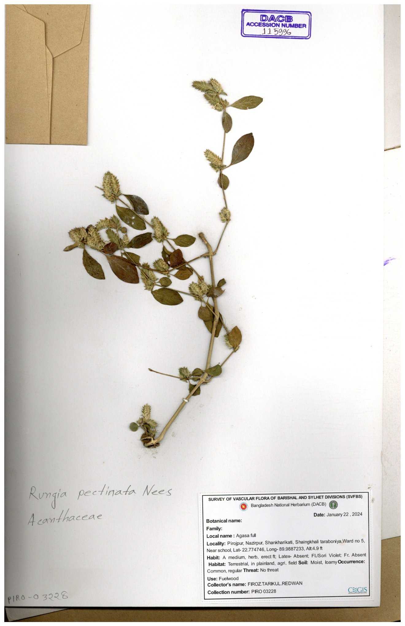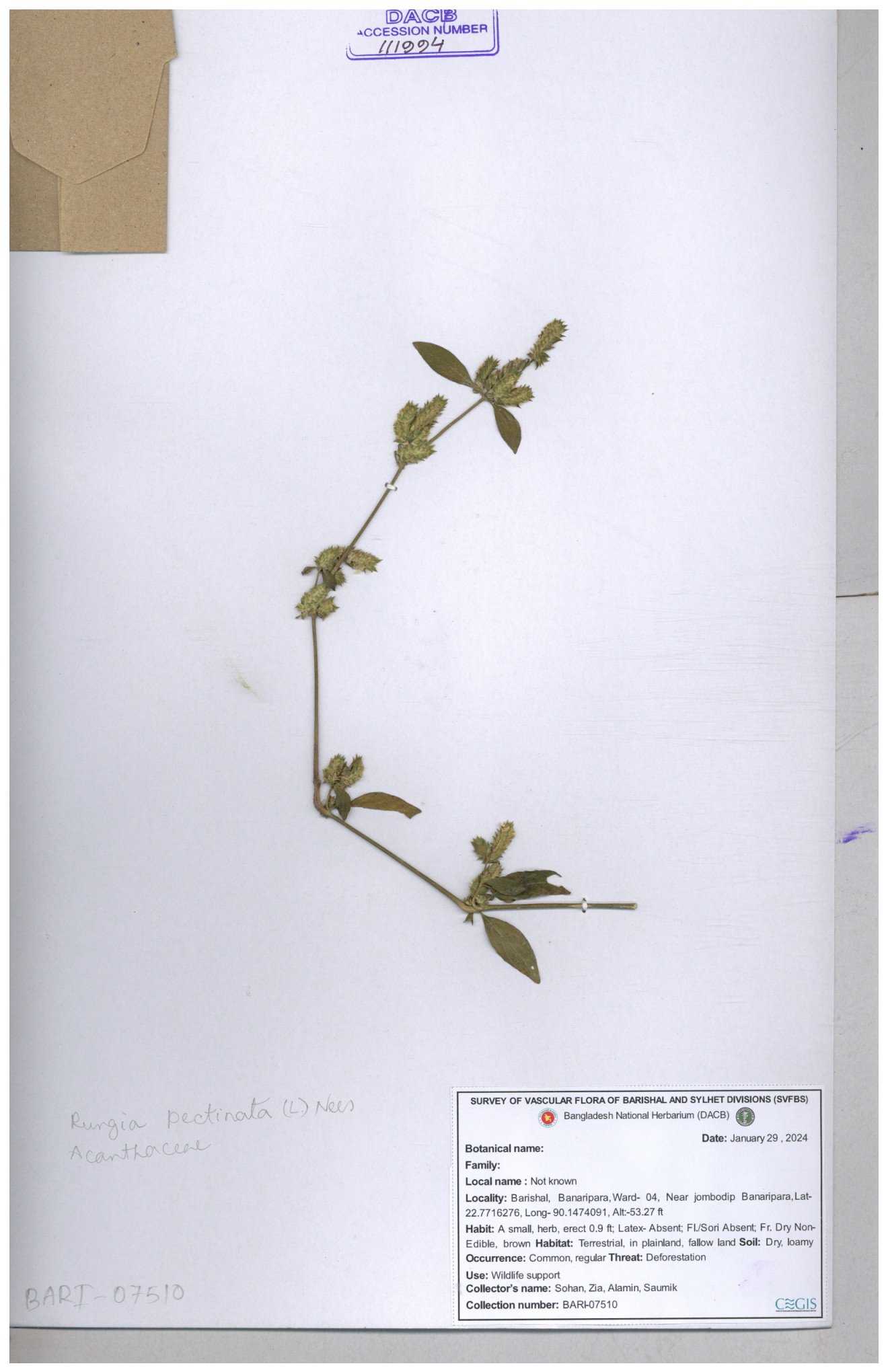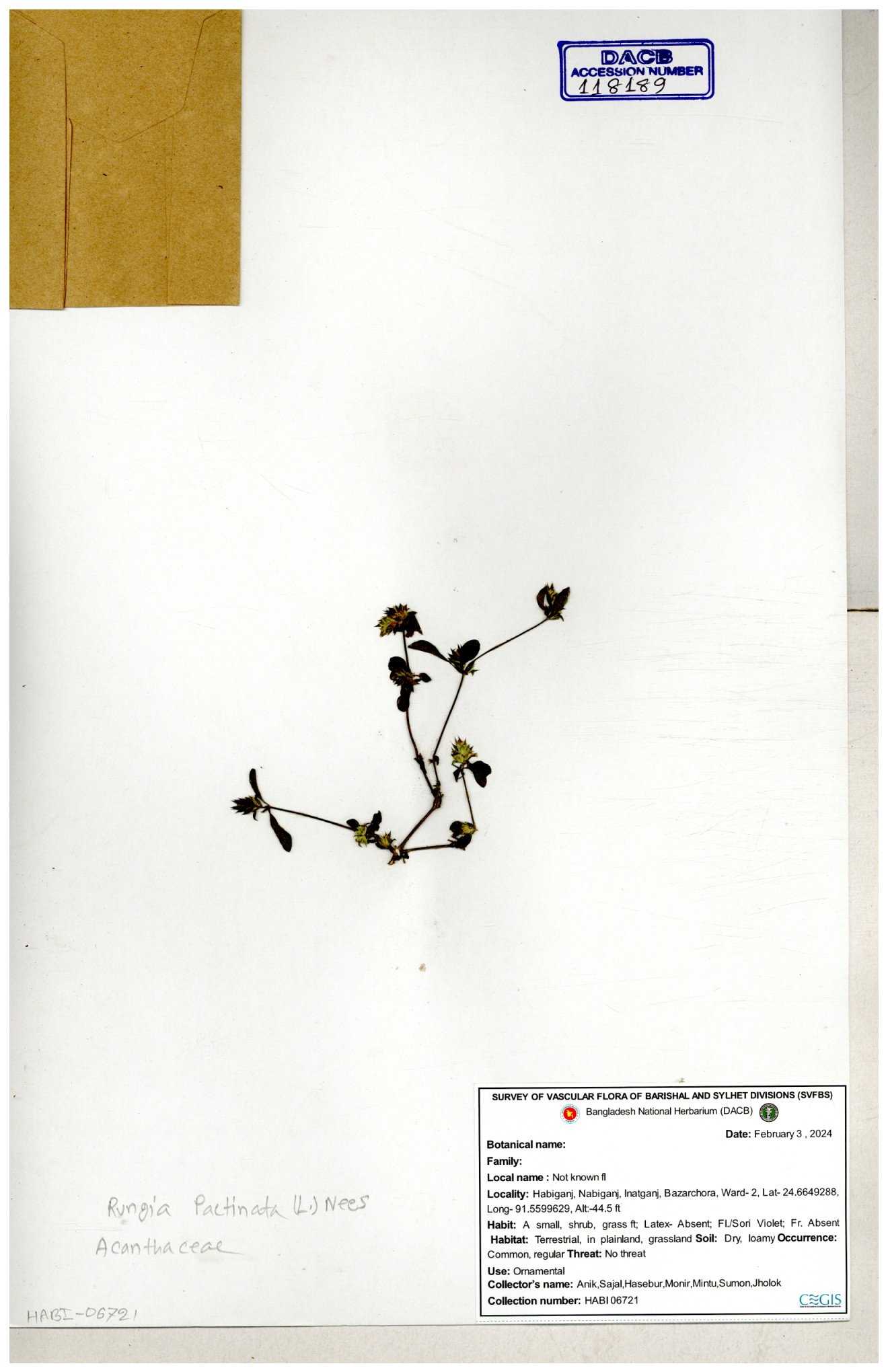 | 111110 | Acanthaceae | Rungia pectinata | 30-11--0001 |