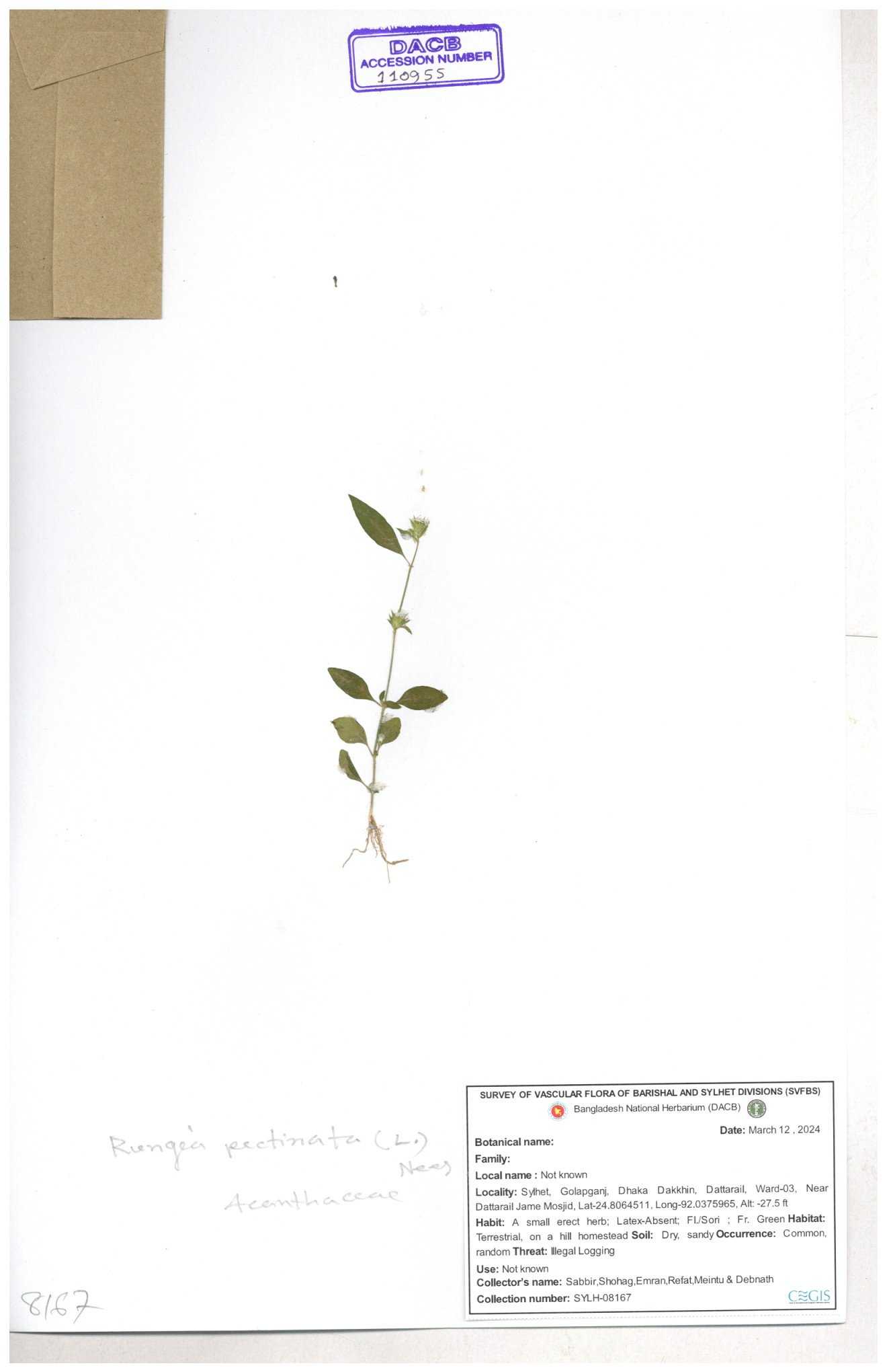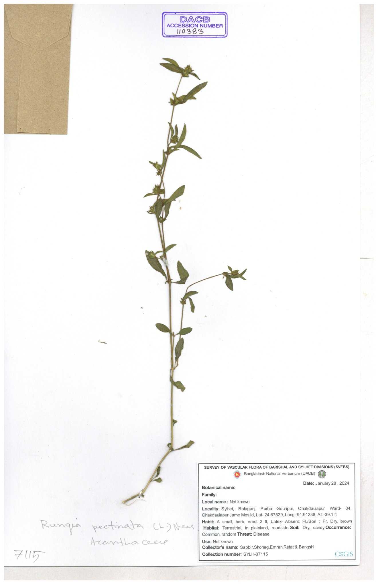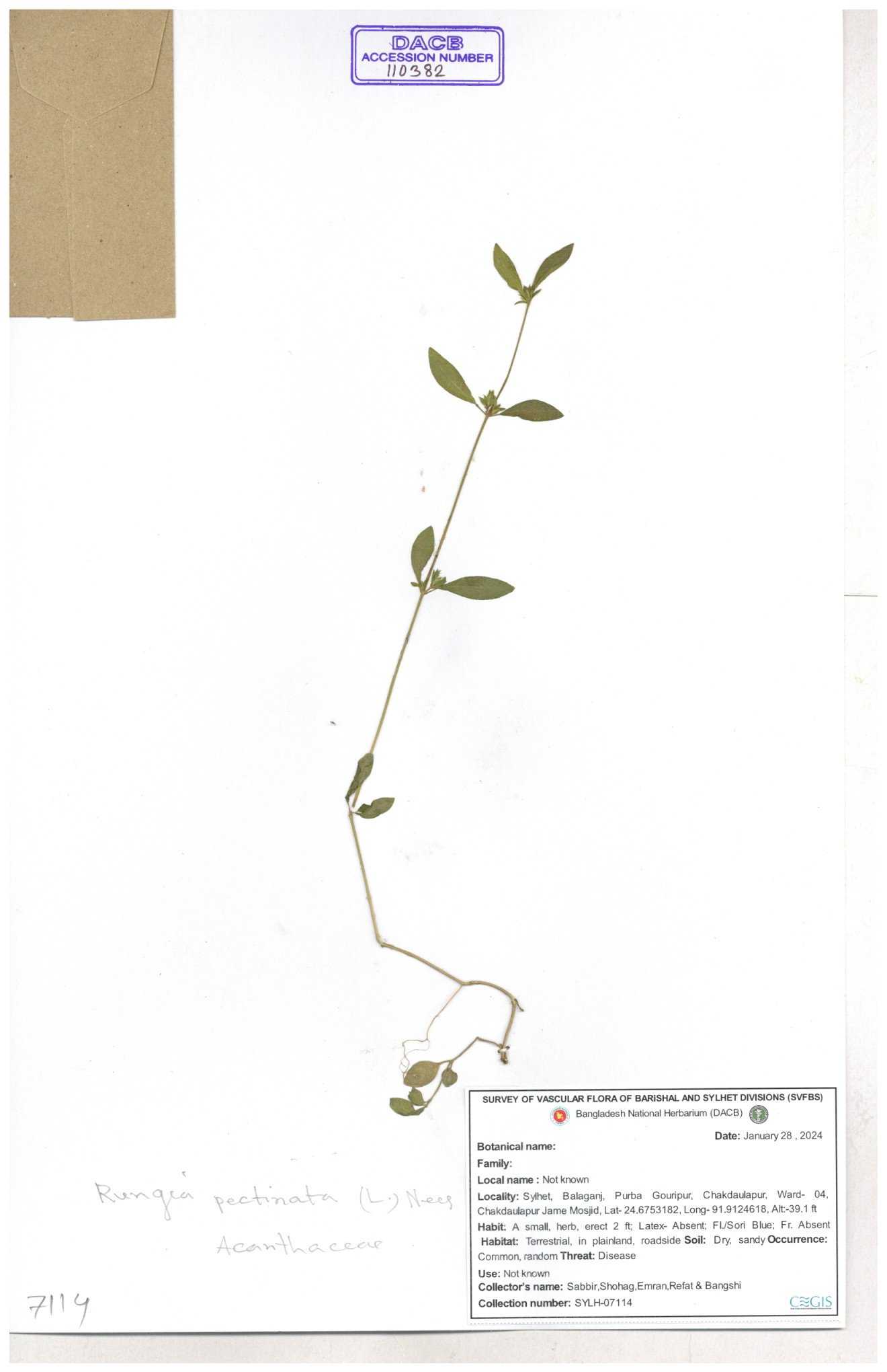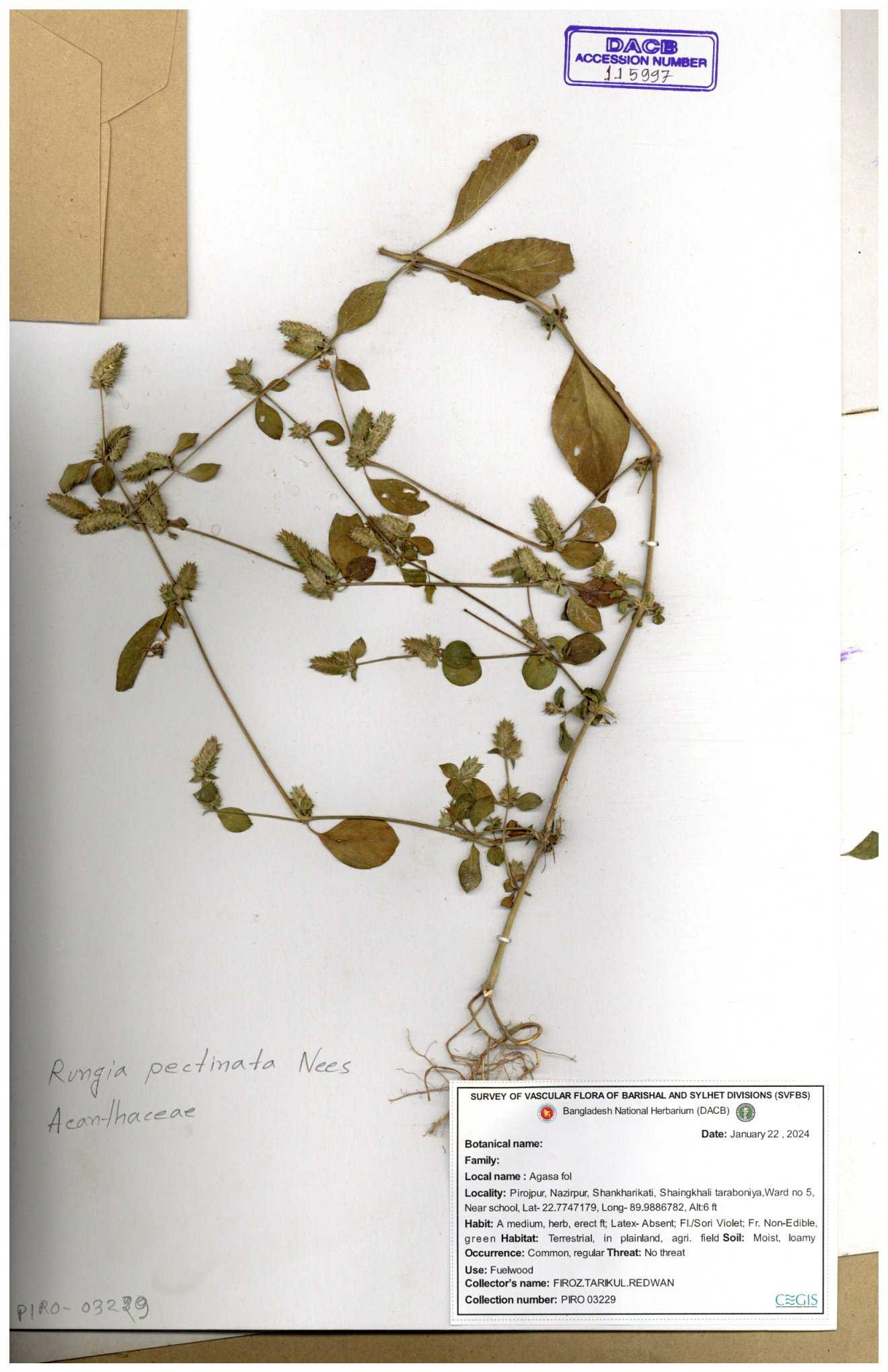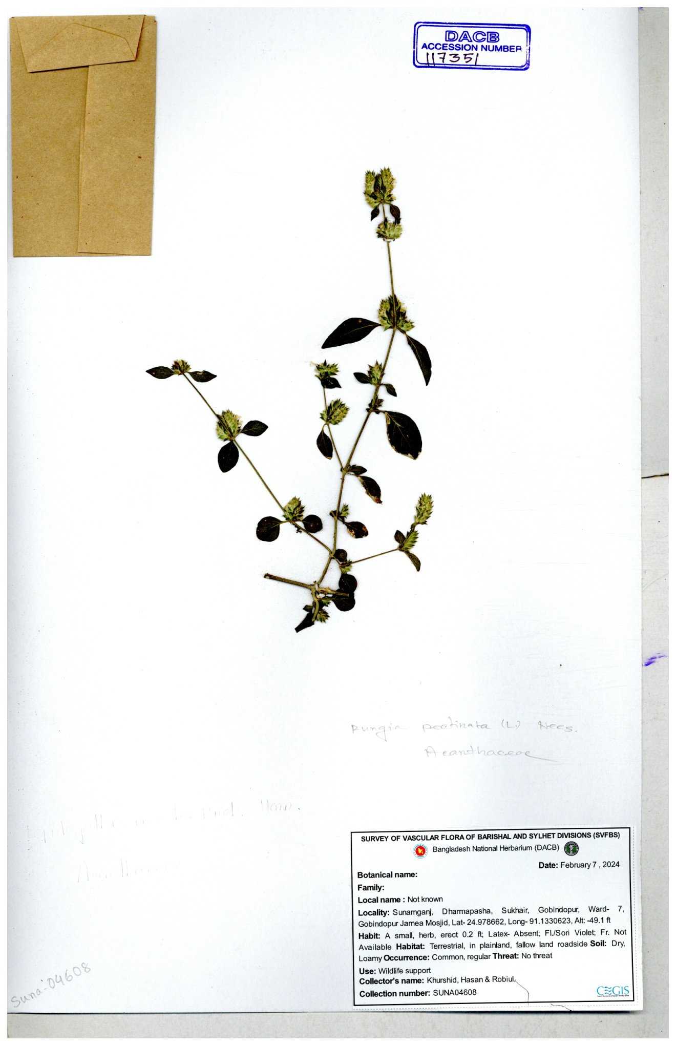 | 111110 | Acanthaceae | Rungia pectinata | 30-11--0001 |