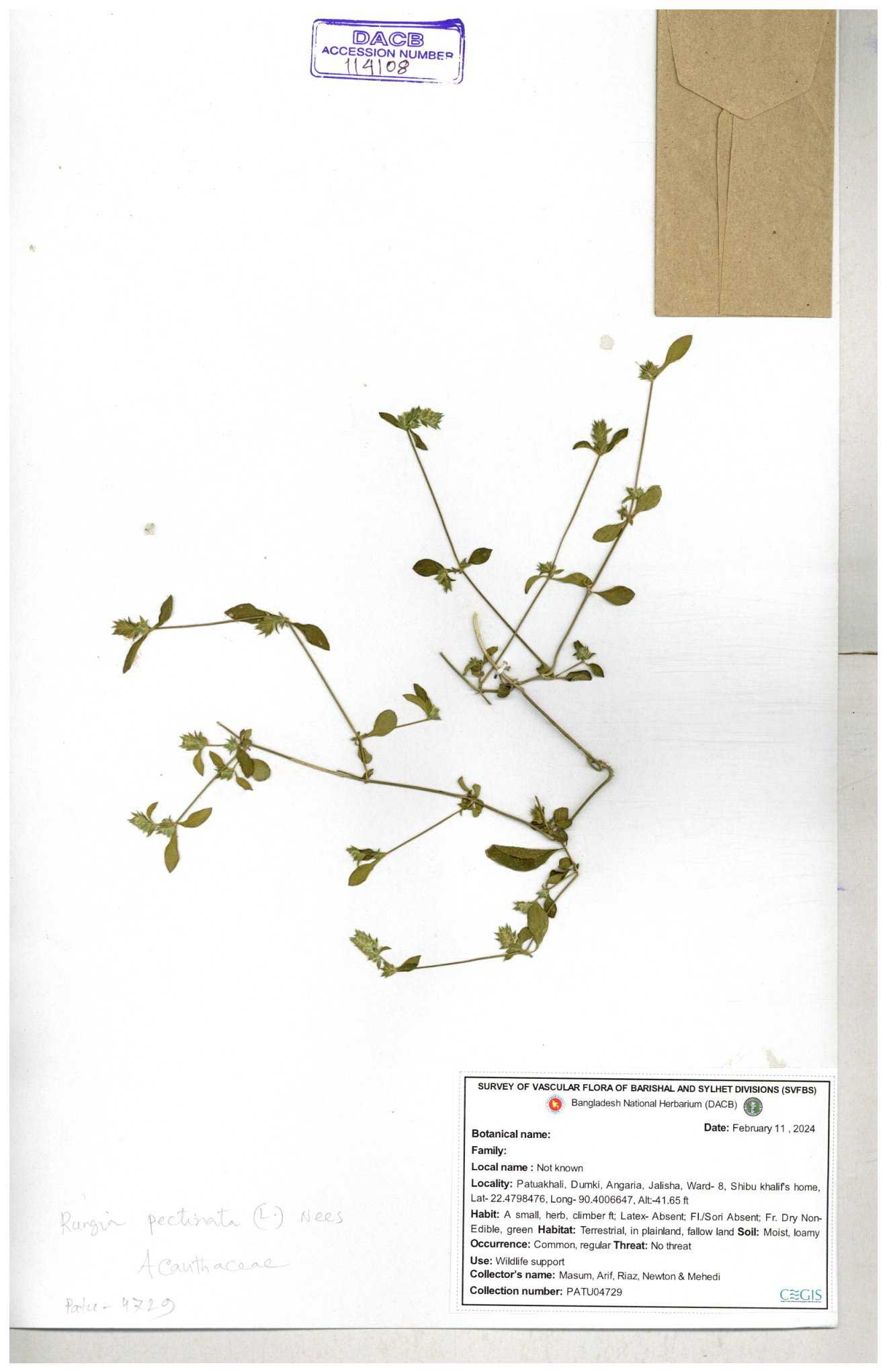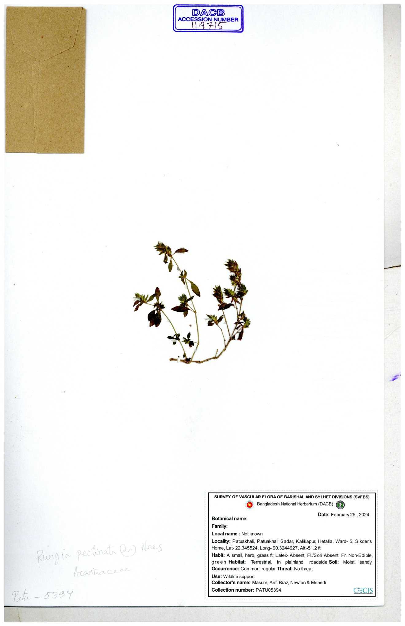| 114715 | Acanthaceae | Rungia pectinata | 30-11--0001 |