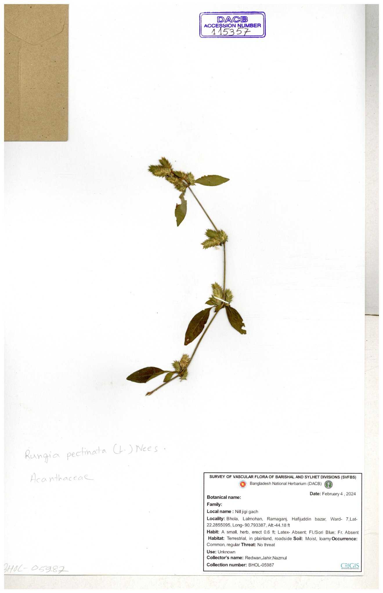 | 115357 | Acanthaceae | Rungia pectinata | 30-11--0001 |