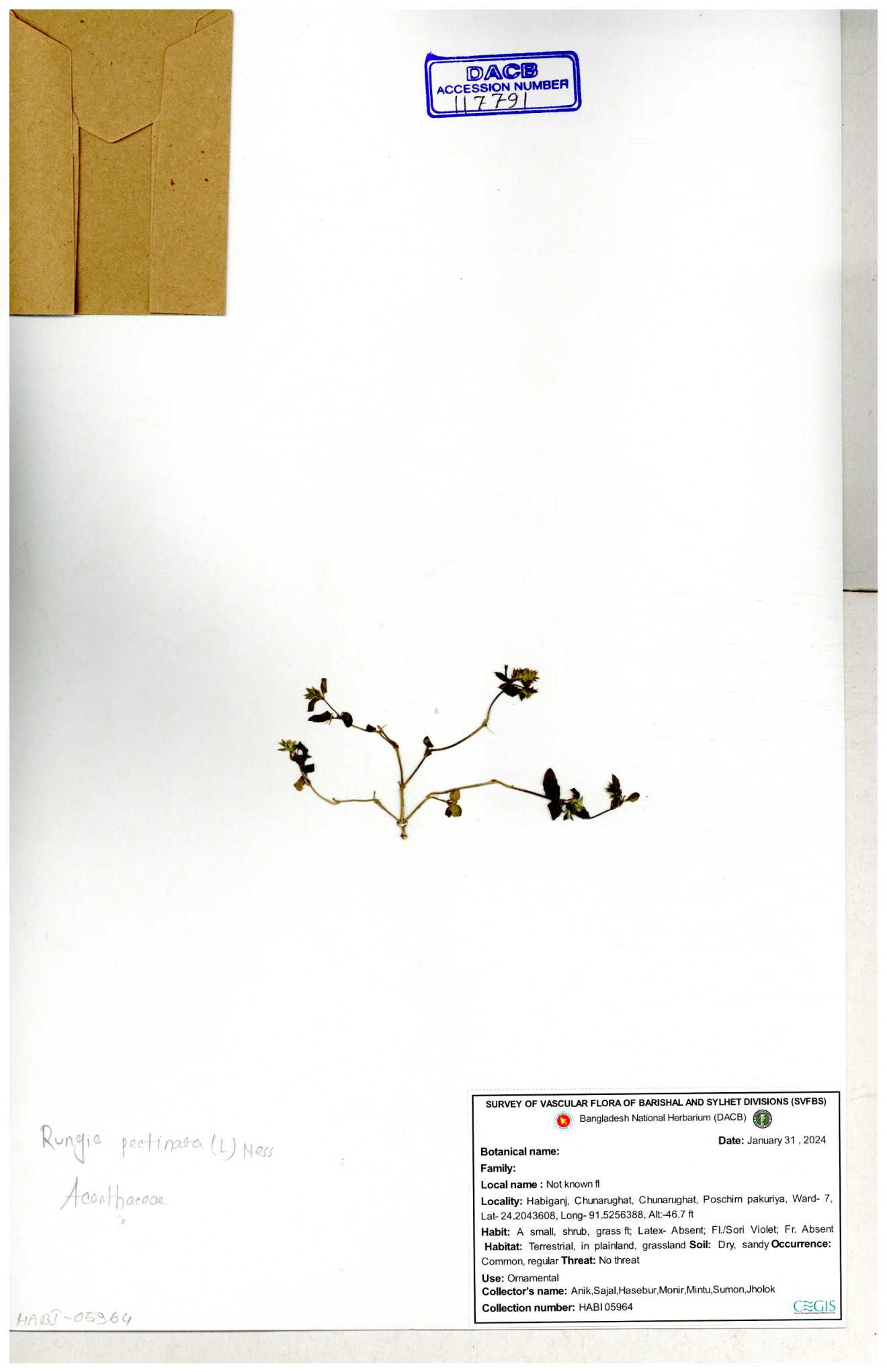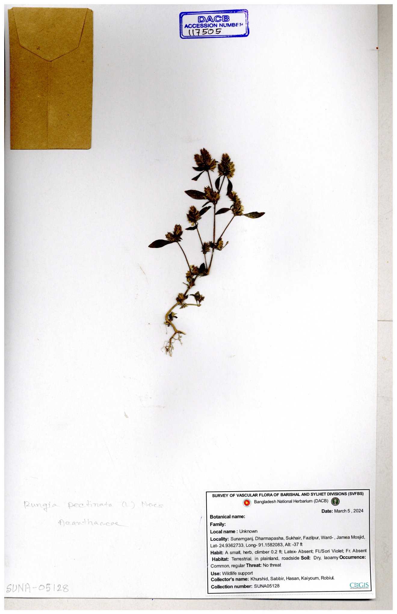 | 117505 | Acanthaceae | Rungia pectinata | 30-11--0001 |