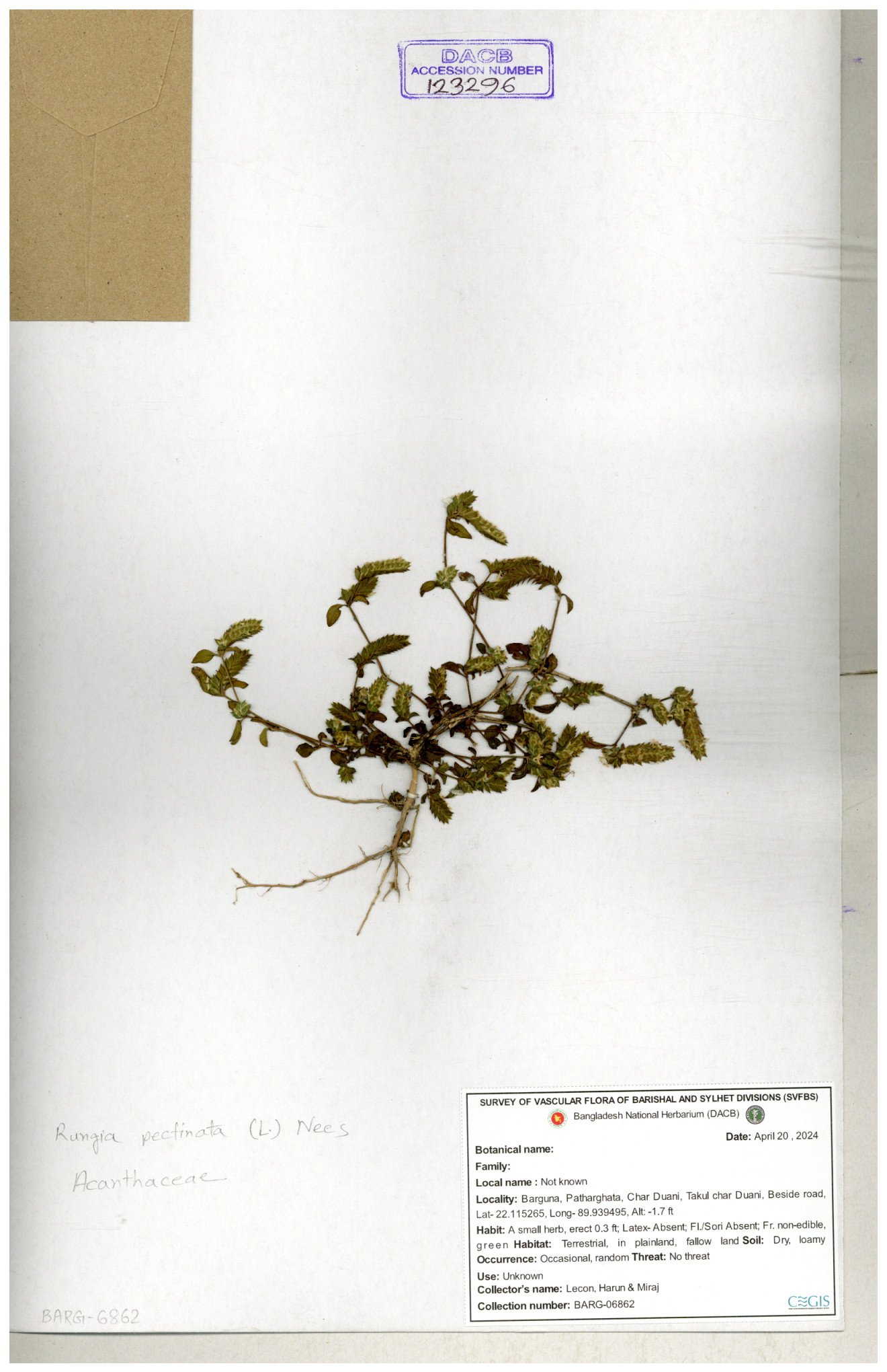 | 123296 | Acanthaceae | Rungia pectinata | 30-11--0001 |