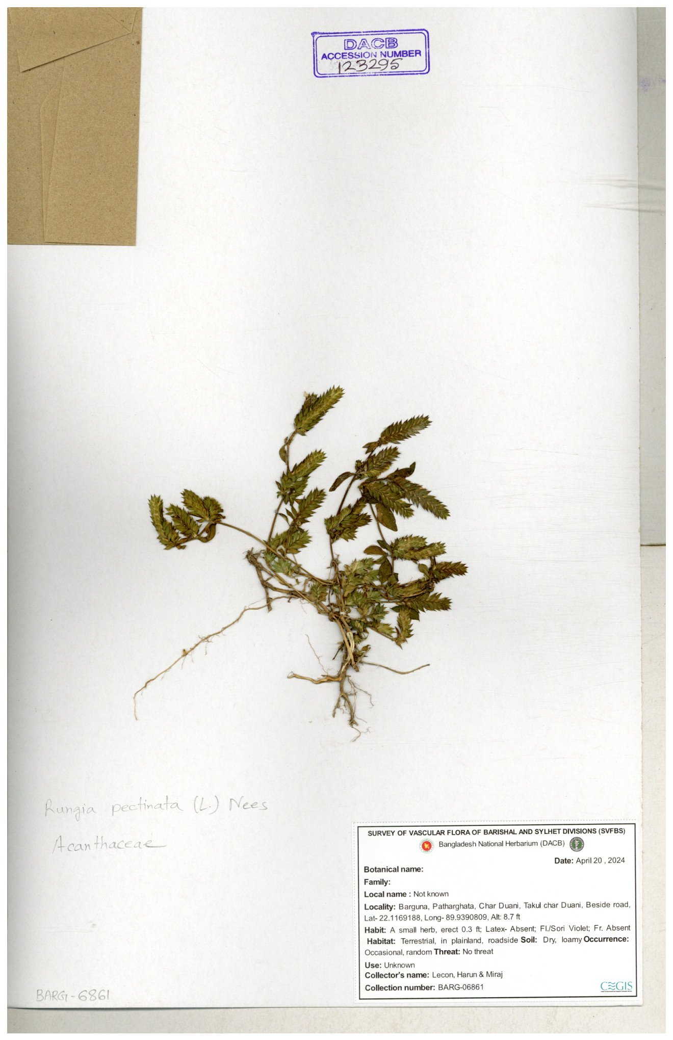 | 6127 | Acanthaceae | Rungia pectinata | 30-11--0001 |
