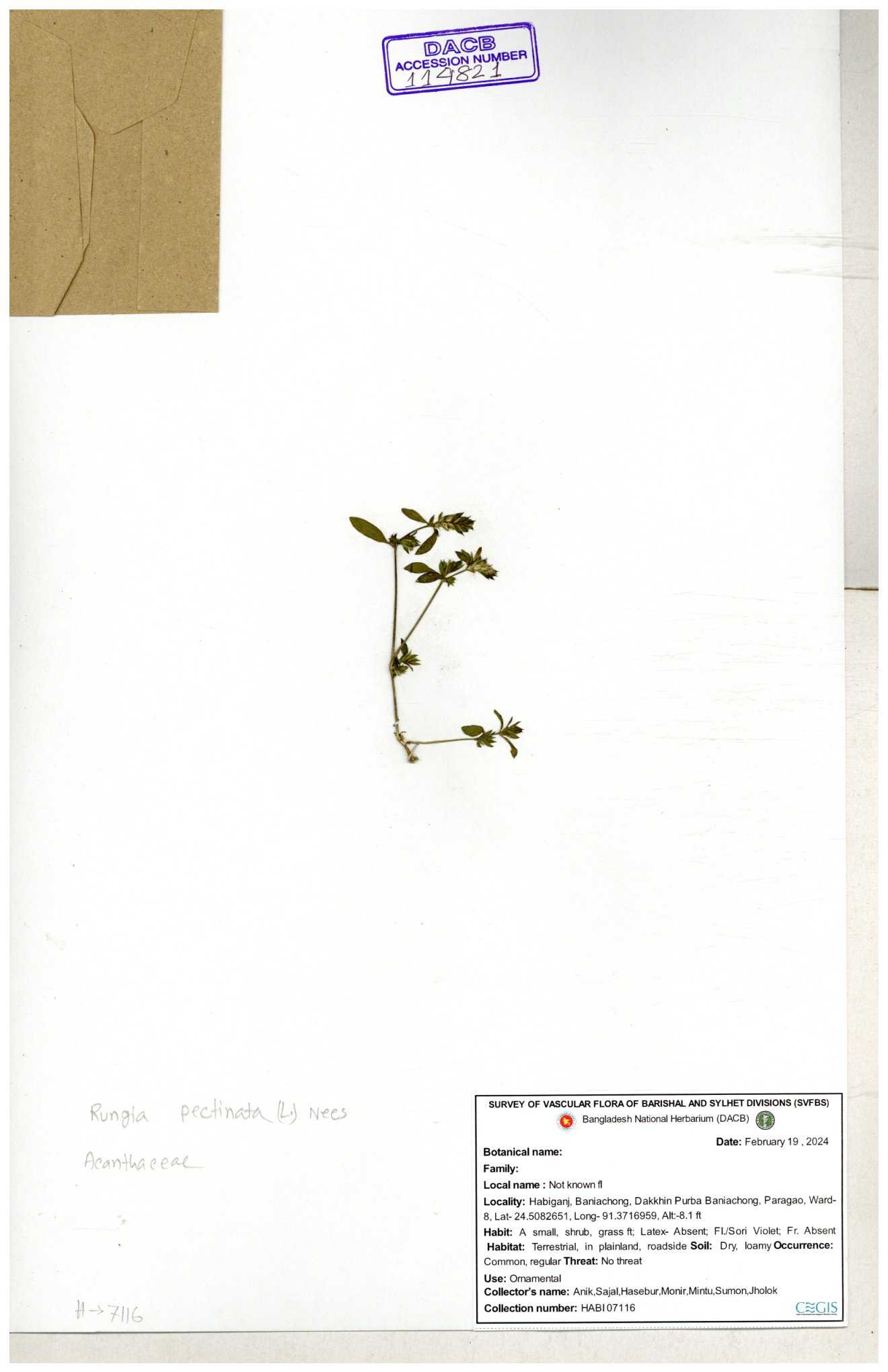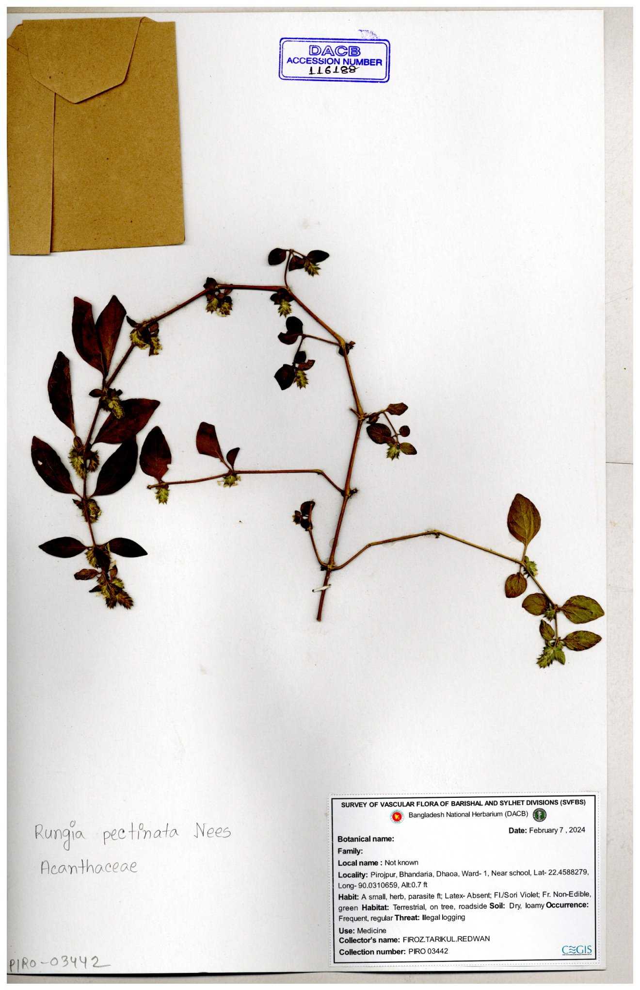 | 116188 | Acanthaceae | Rungia pectinata | 30-11--0001 |