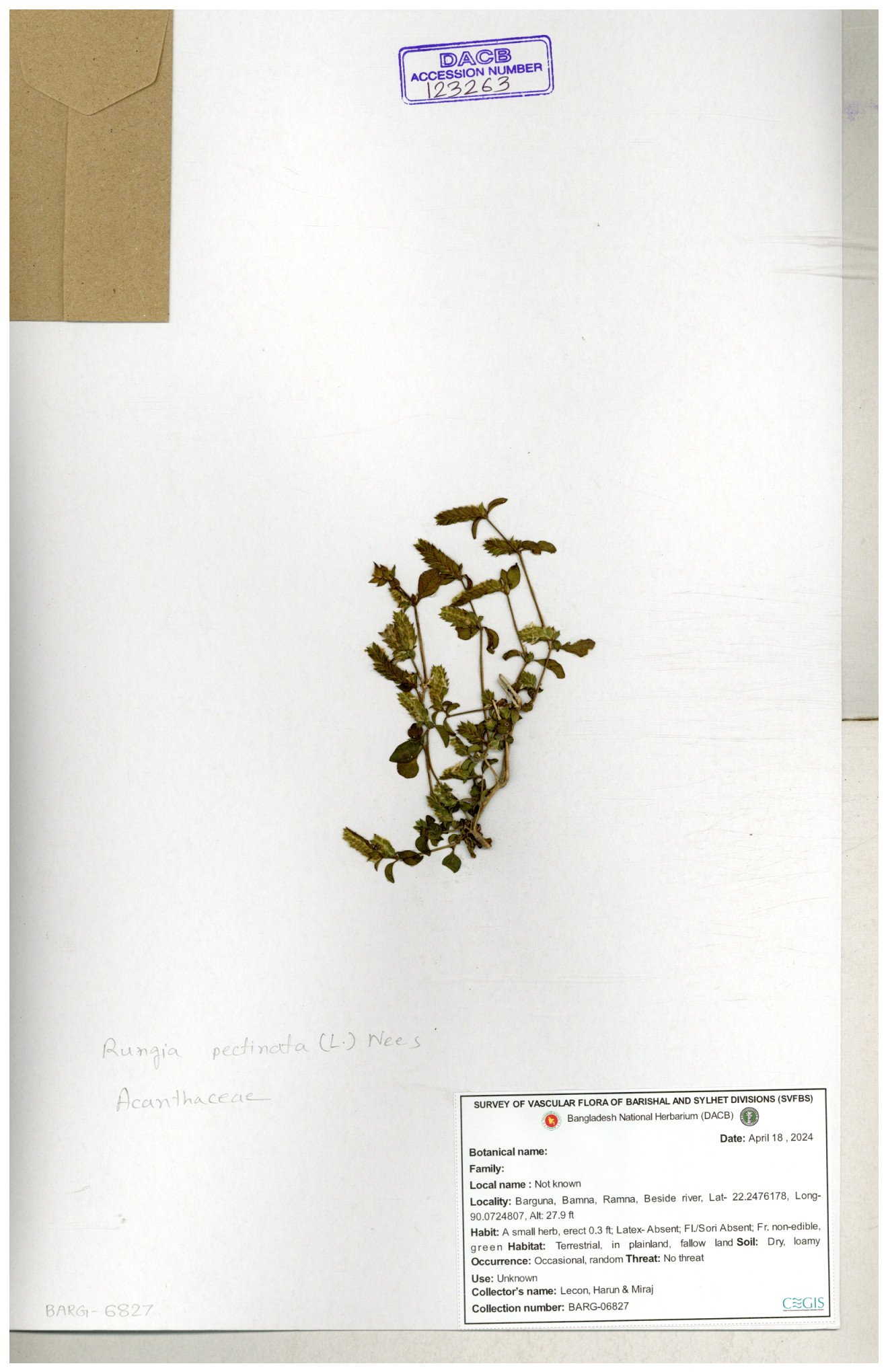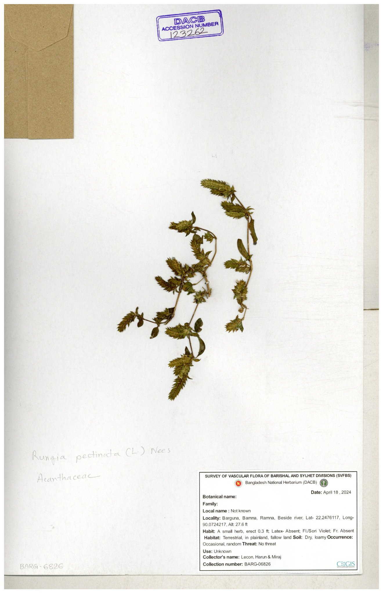 | 123263 | Acanthaceae | Rungia pectinata | 30-11--0001 |