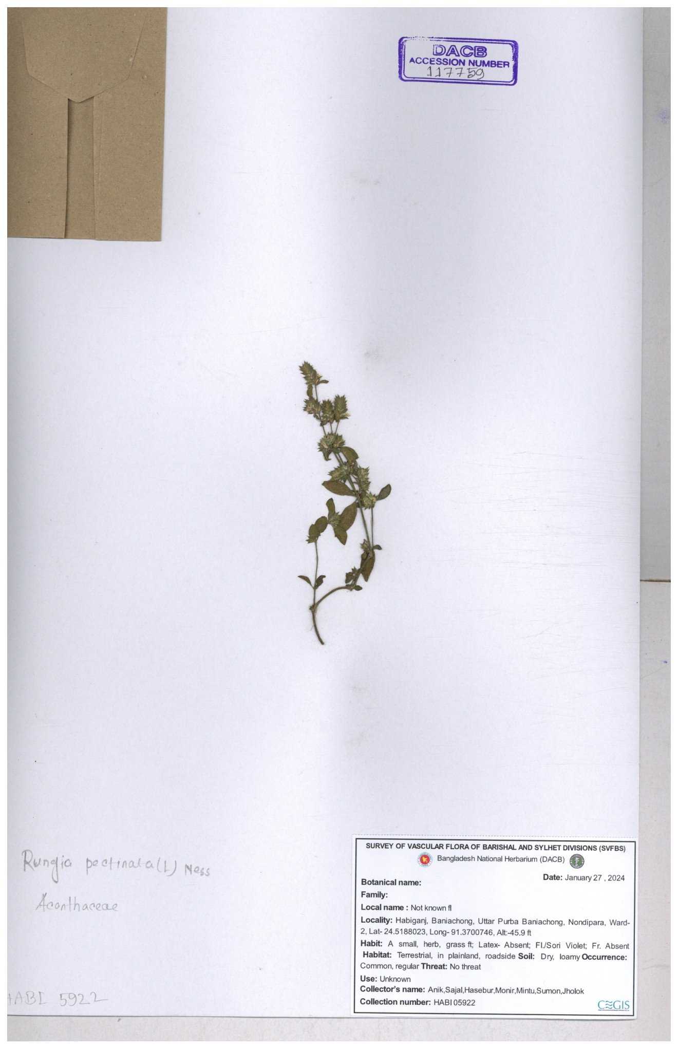 | 117759 | Acanthaceae | Rungia pectinata | 30-11--0001 |