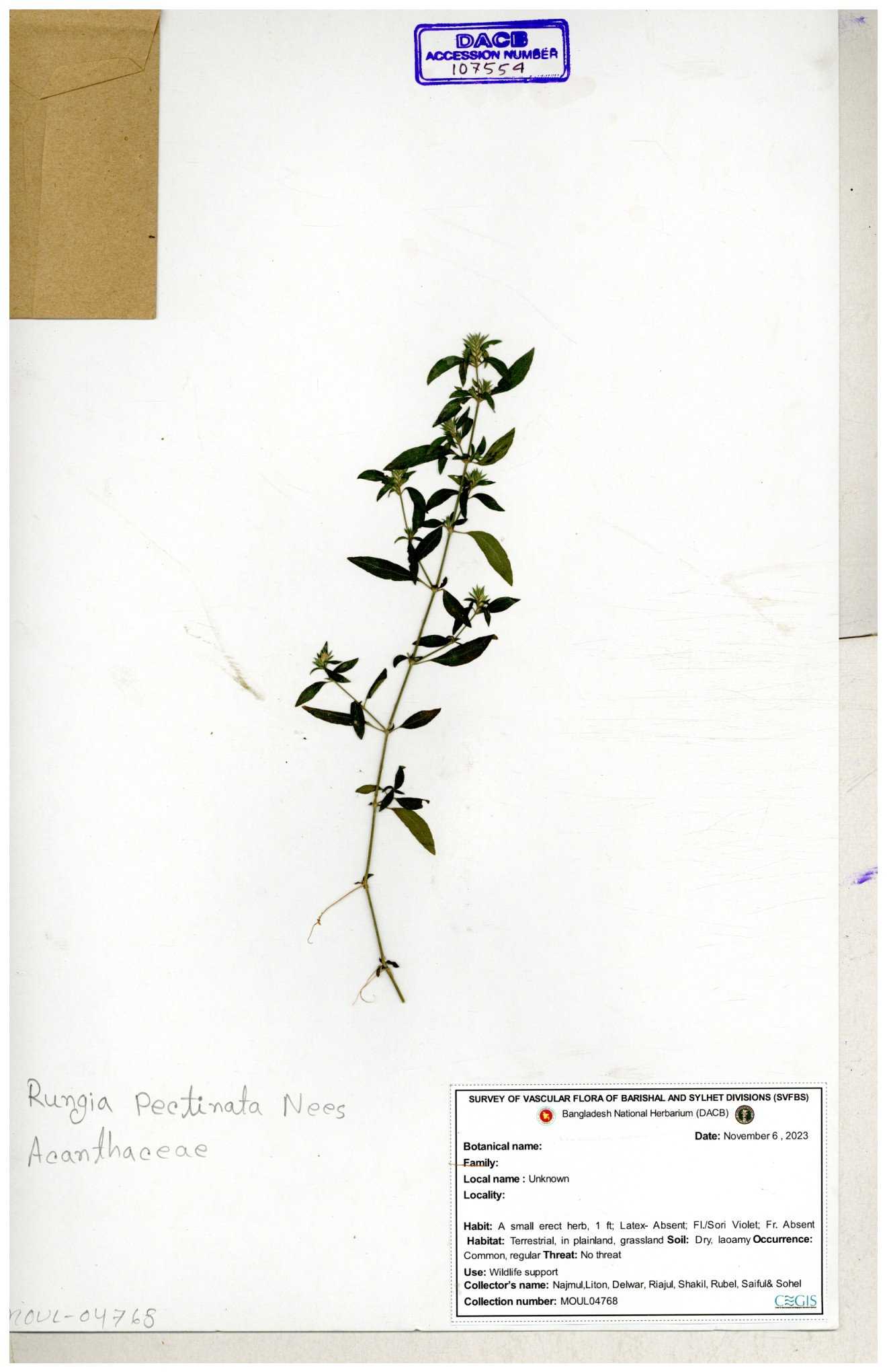 | 107554 | Acanthaceae | Rungia pectinata | 30-11--0001 |