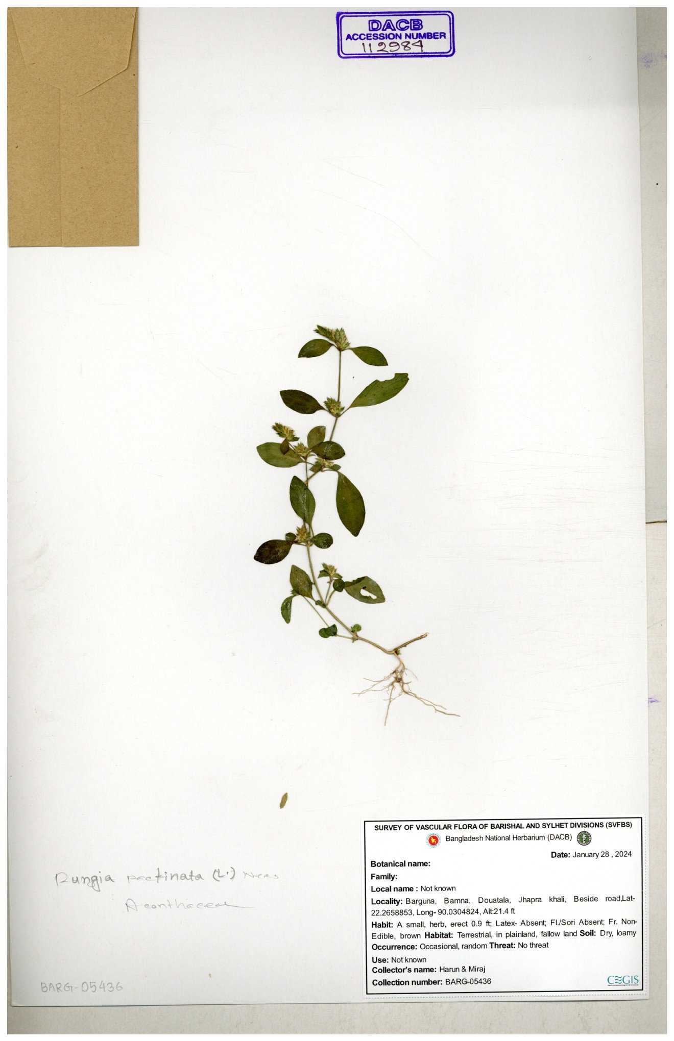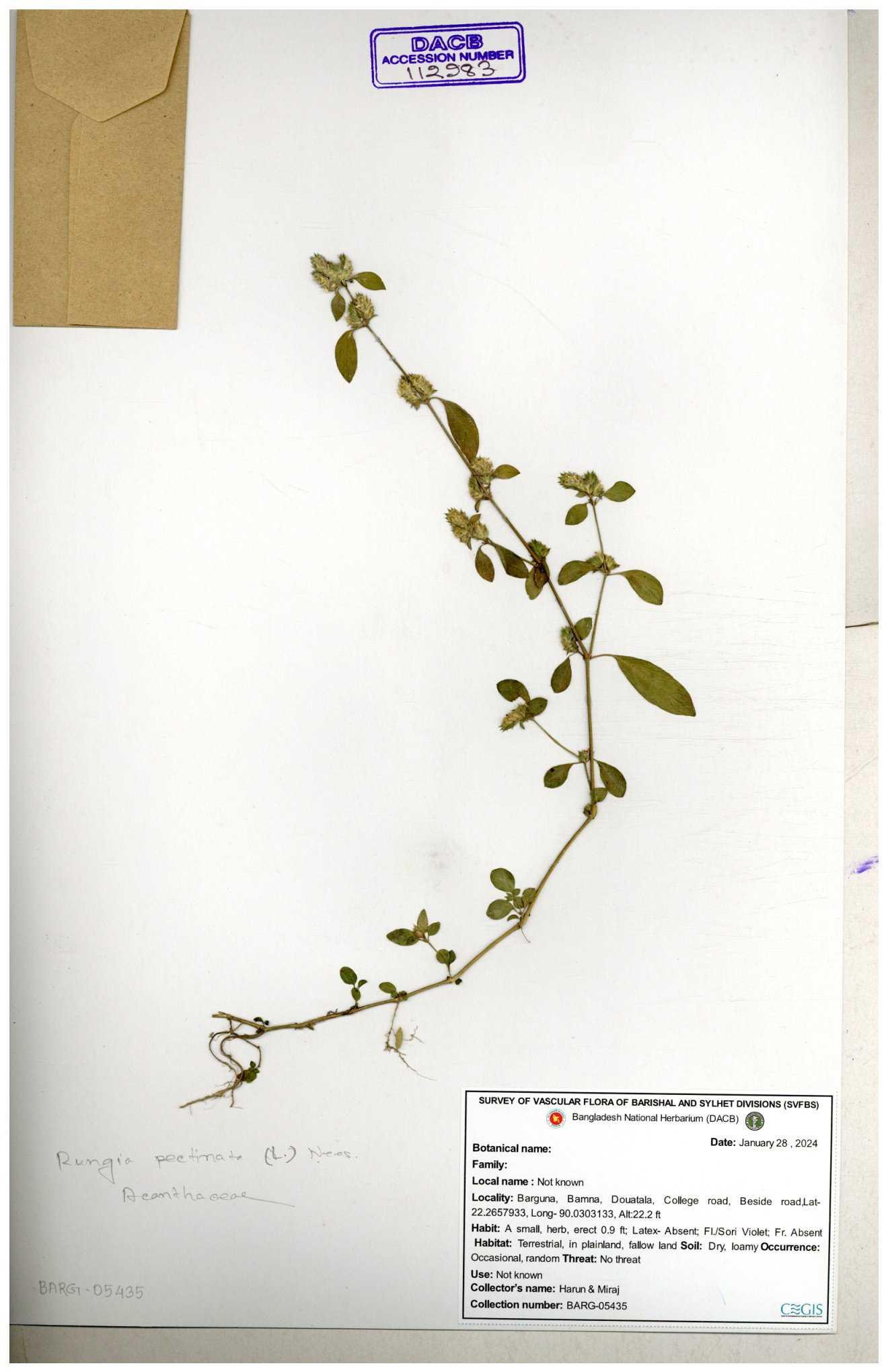 | 112983 | Acanthaceae | Rungia pectinata | 30-11--0001 |