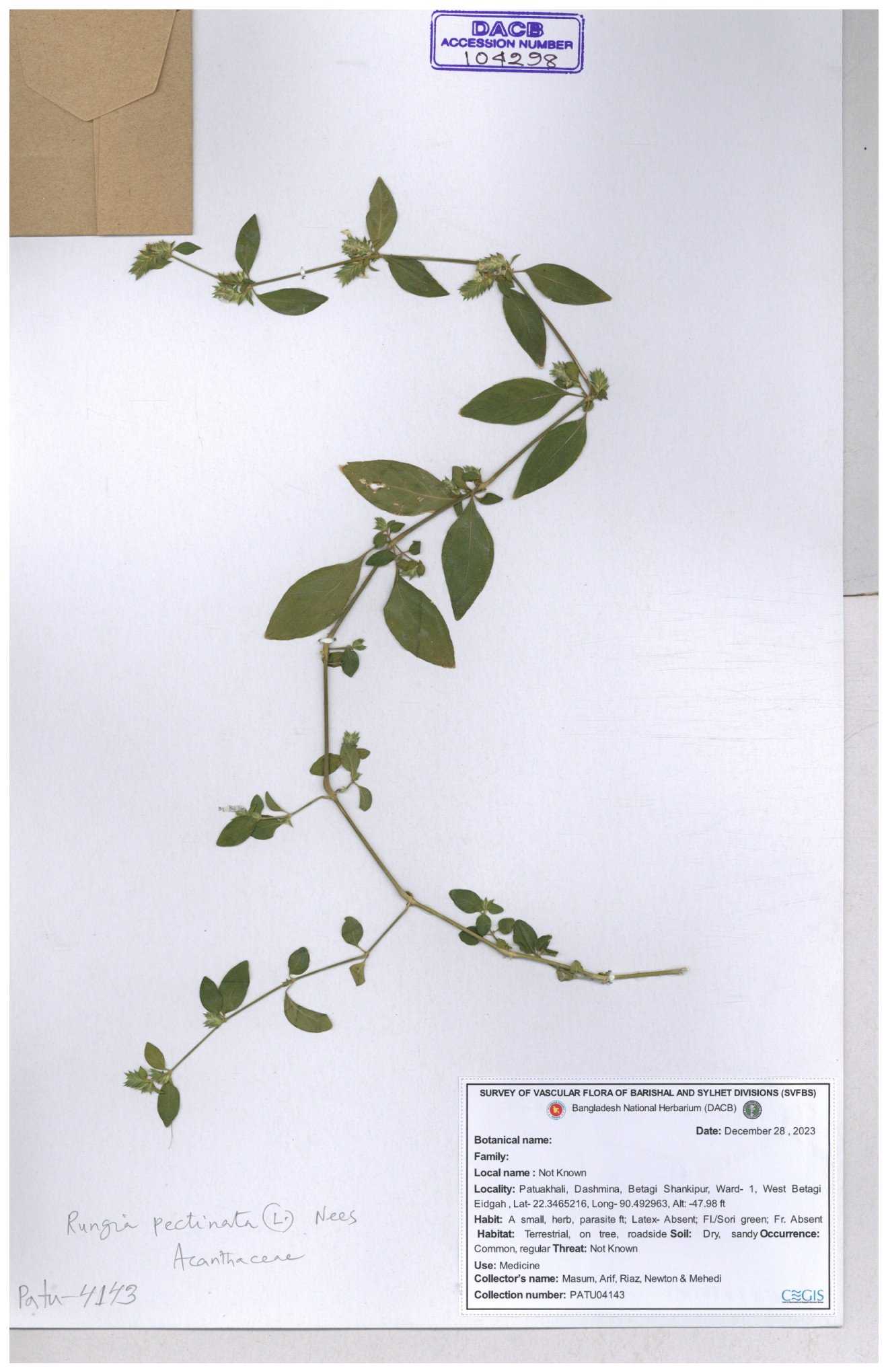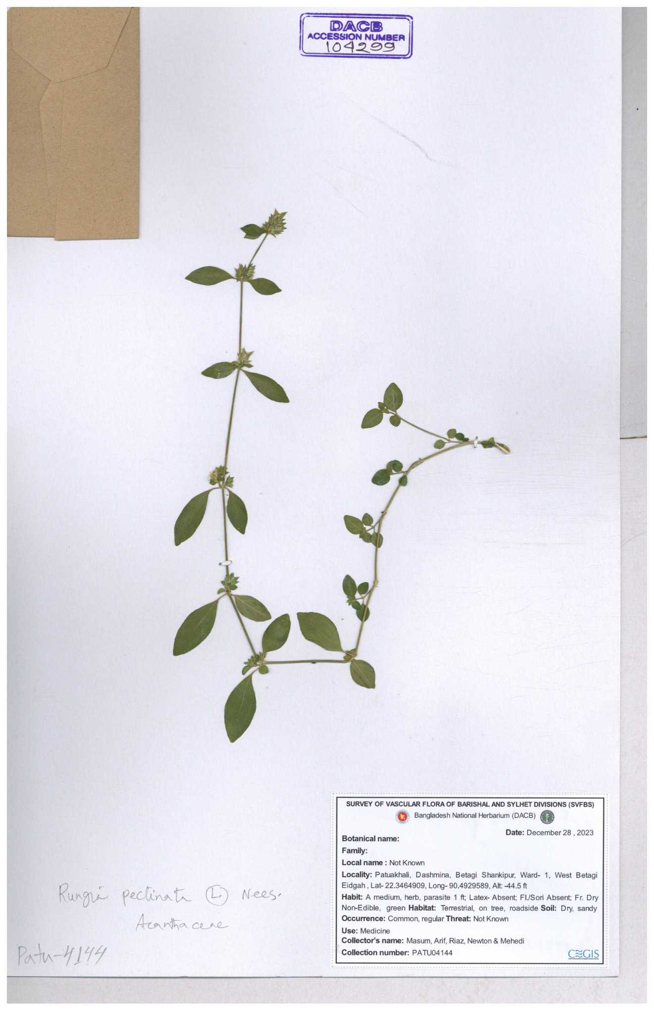 | 104426 | Acanthaceae | Rungia pectinata | 30-11--0001 |
