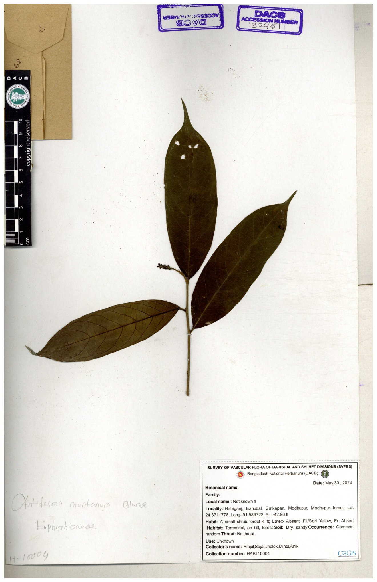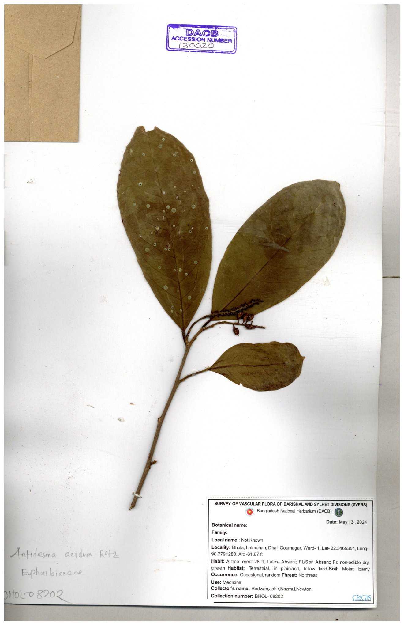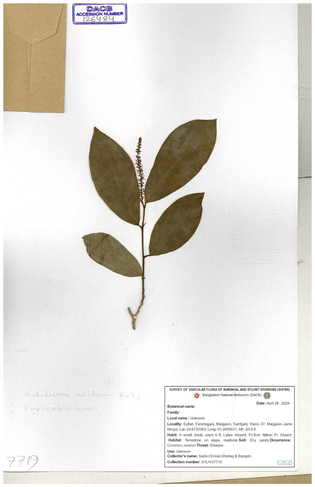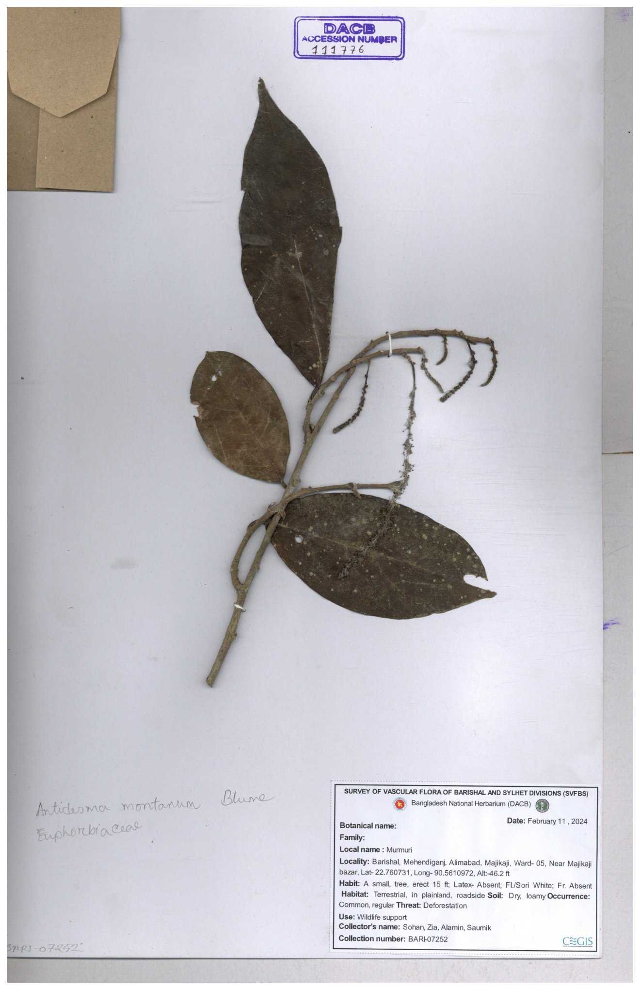 | 725936 | Euphorbiaceae | Antidesma acidum Retz | Md. Shahidul Islam & Md. Rashed Miah | MSI-6196 30-11--0001 |