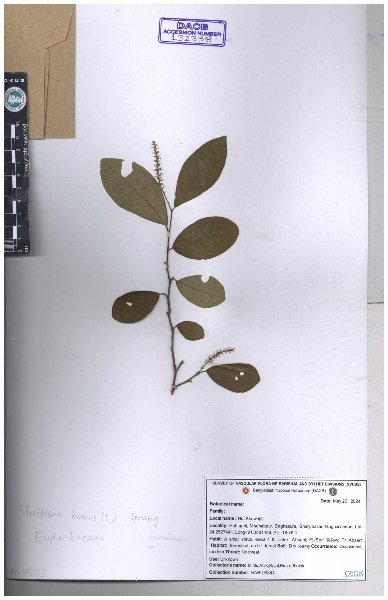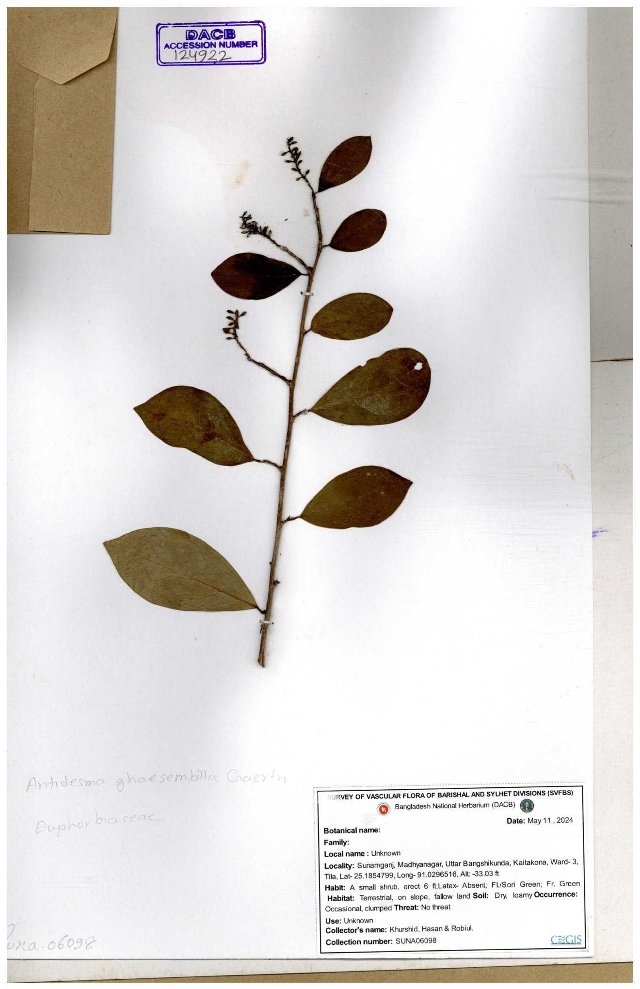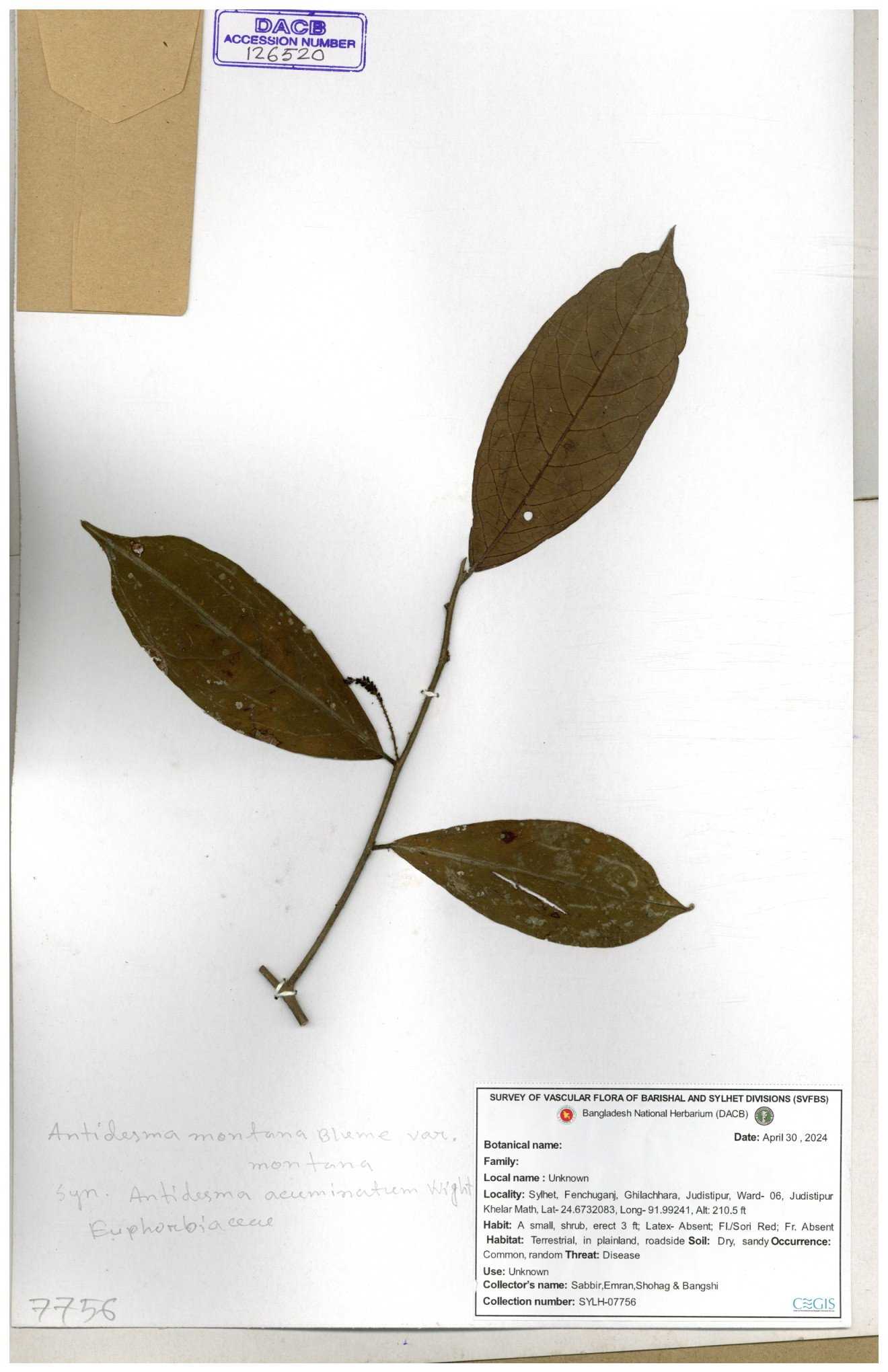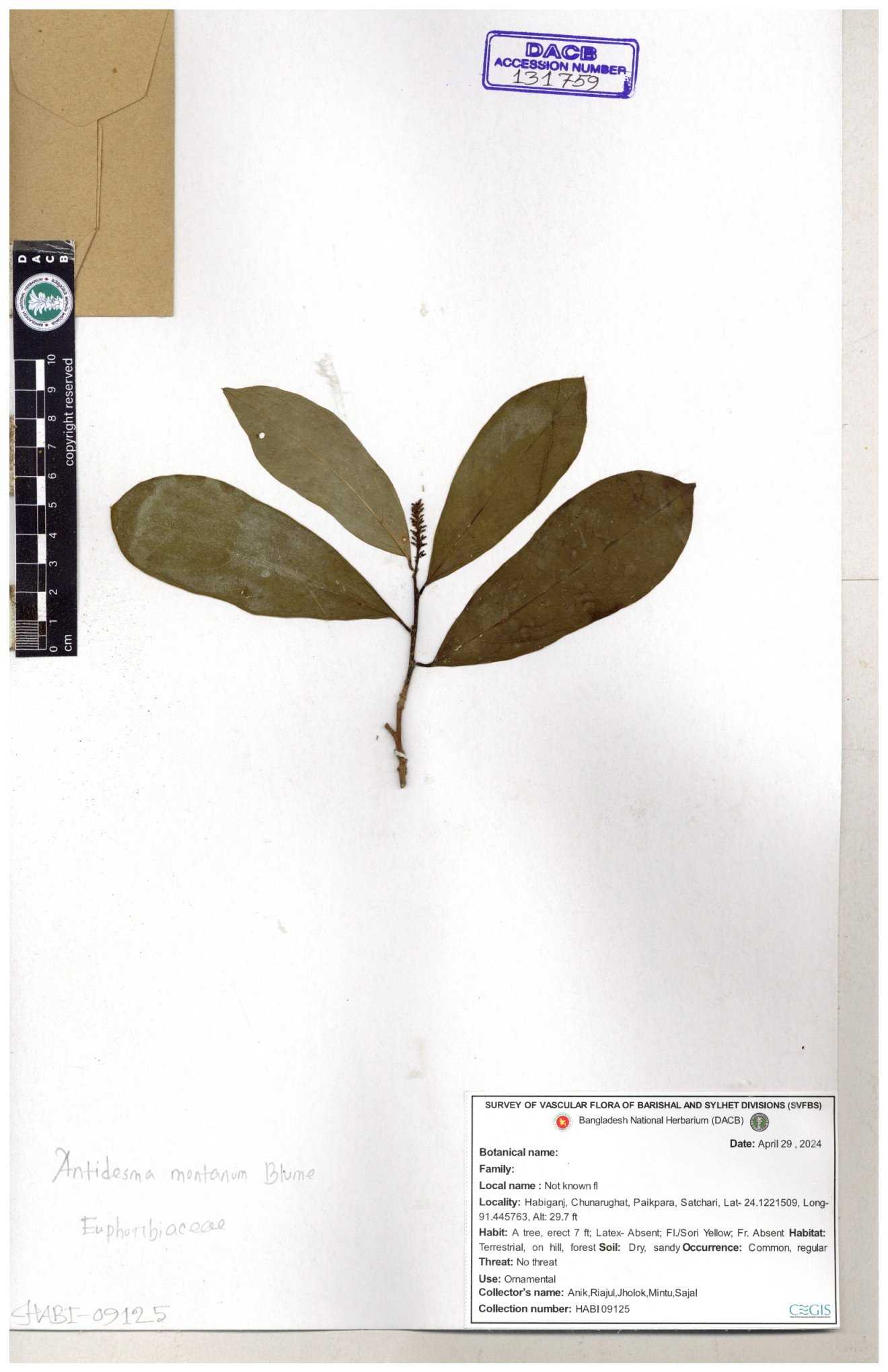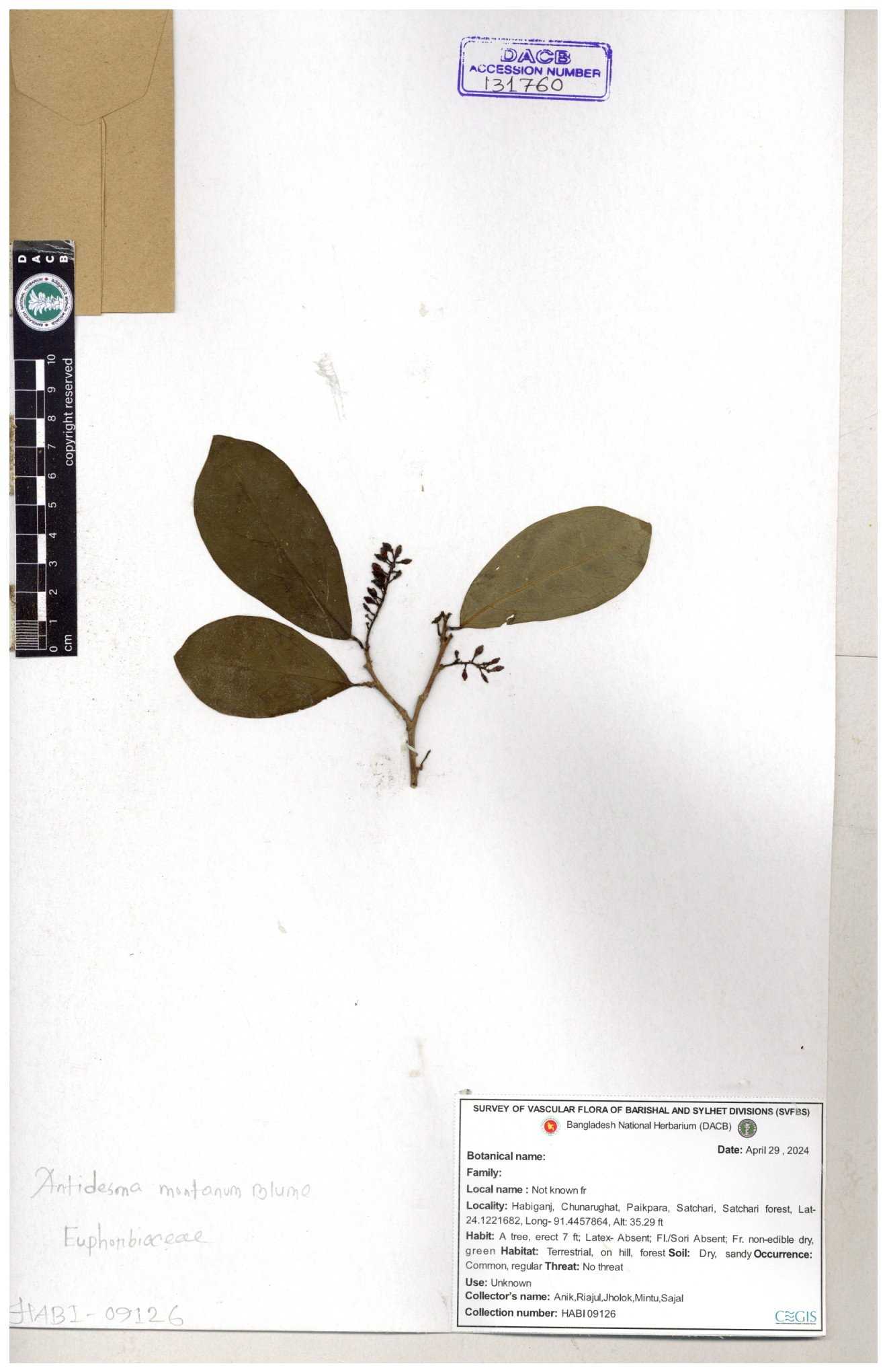 | 725936 | Euphorbiaceae | Antidesma acidum Retz | Md. Shahidul Islam & Md. Rashed Miah | MSI-6196 30-11--0001 |