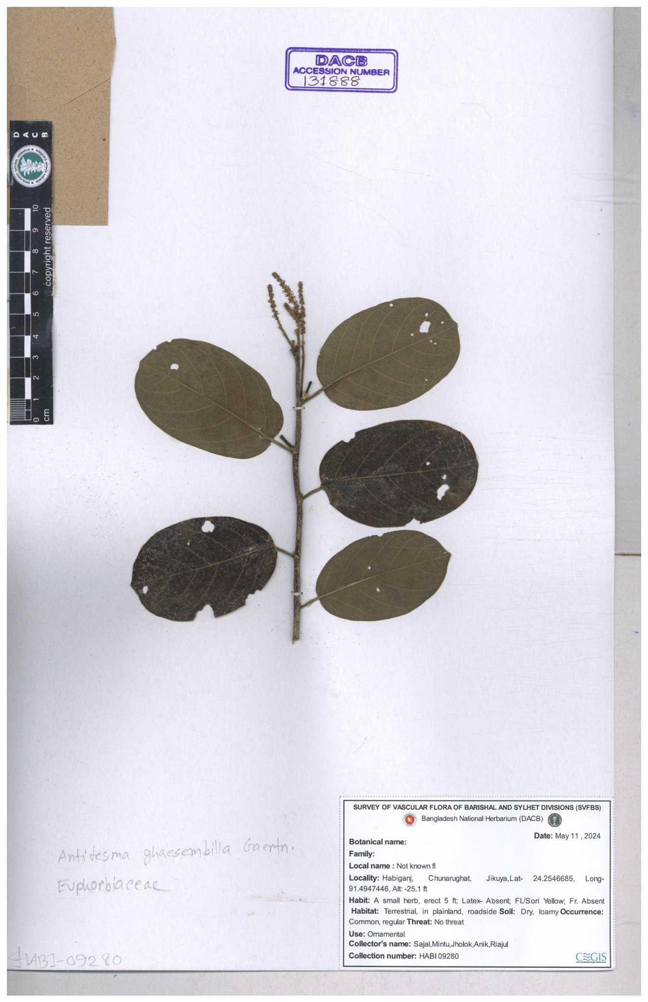 | 50363 | Euphorbiaceae | Antidesma acidum Retz | Tajul, Al-Amin & Kawsar | TAK-4554 30-11--0001 |