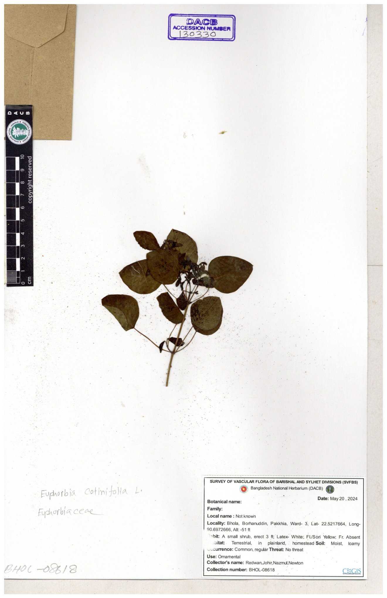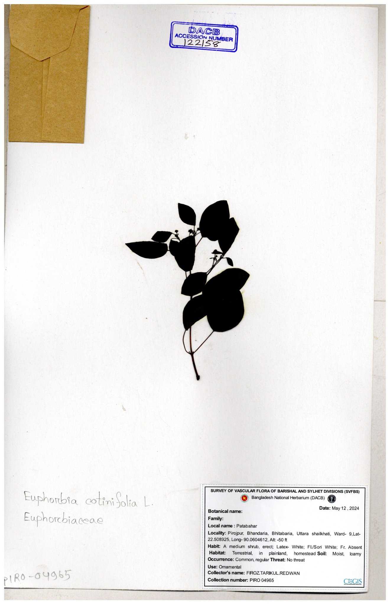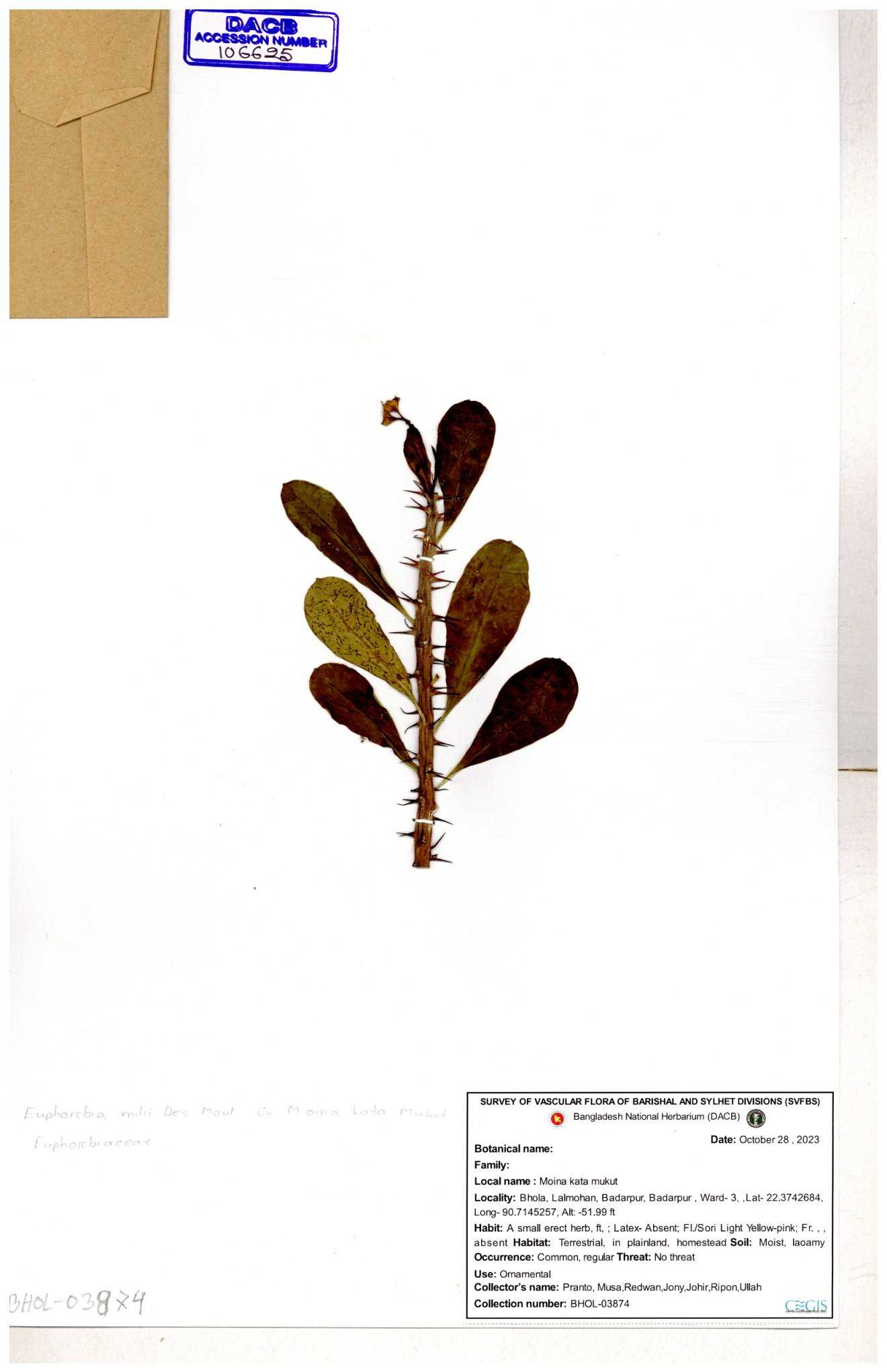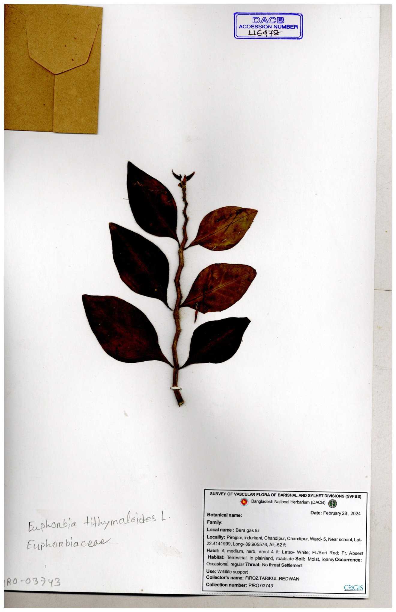 | 50334 | Euphorbiaceae | Euphorbia tithymolaides ( | Ornamental | Tajul, Owahid & Kawsar | TOK-0057 30-11--0001 |