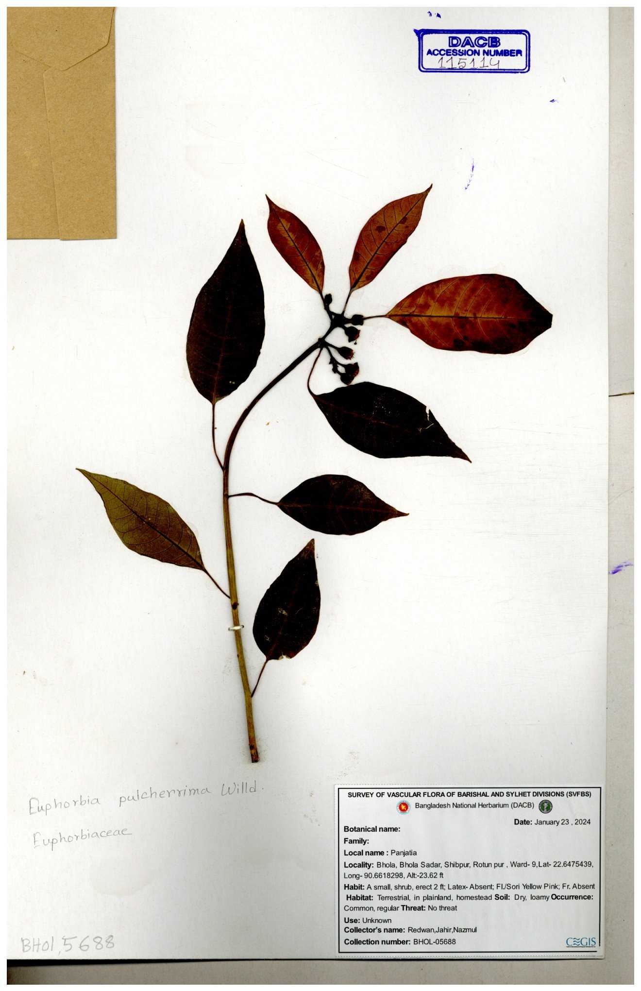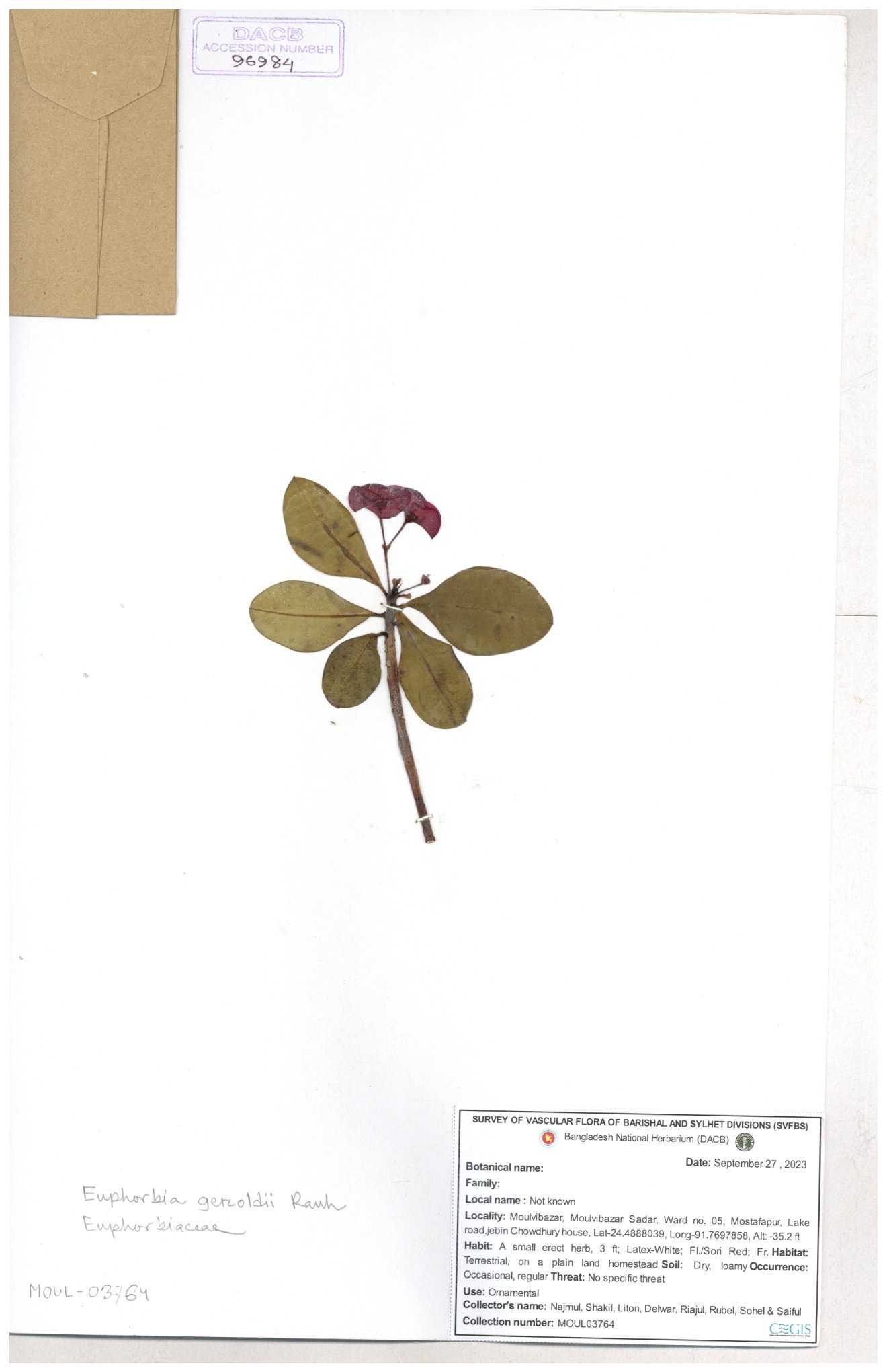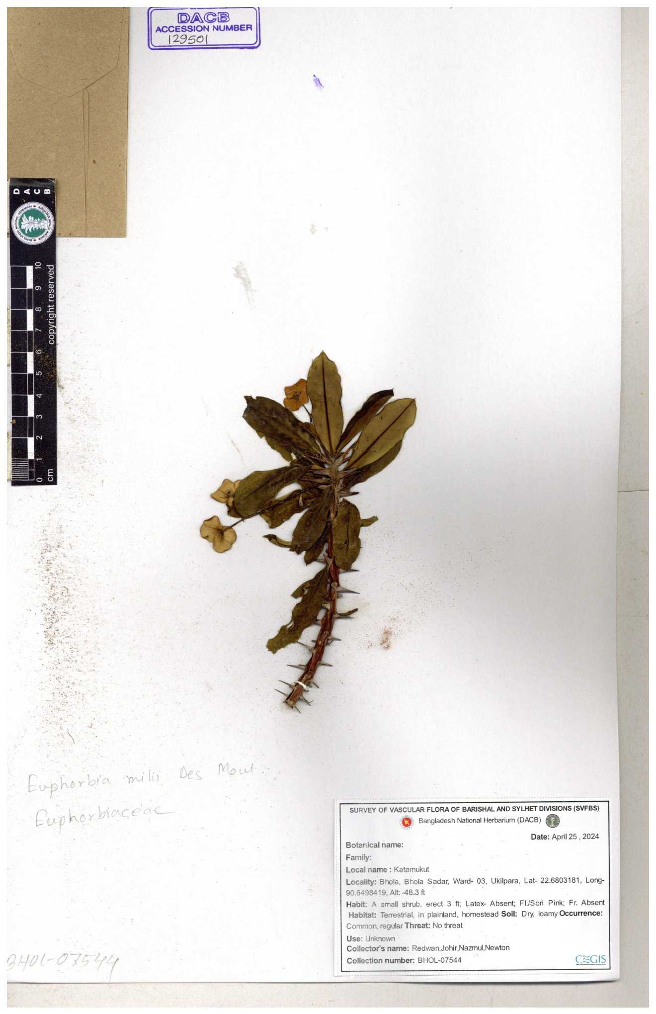 | 11554 | Euphorbiaceae | Euphorbia H.B.K | A.M.Huq | H-5674 30-11--0001 |