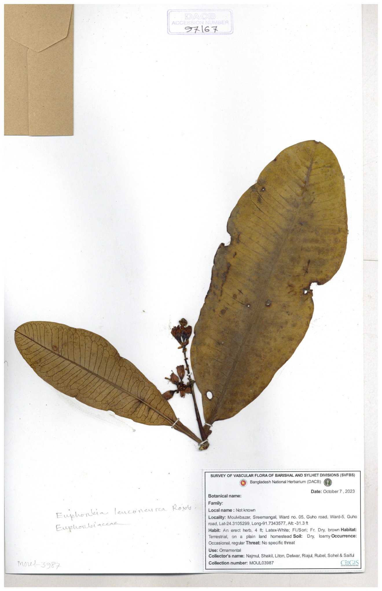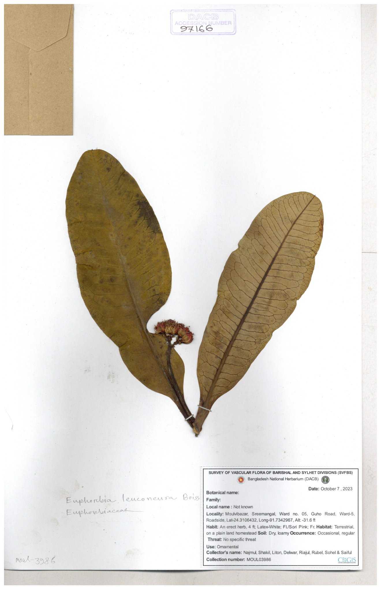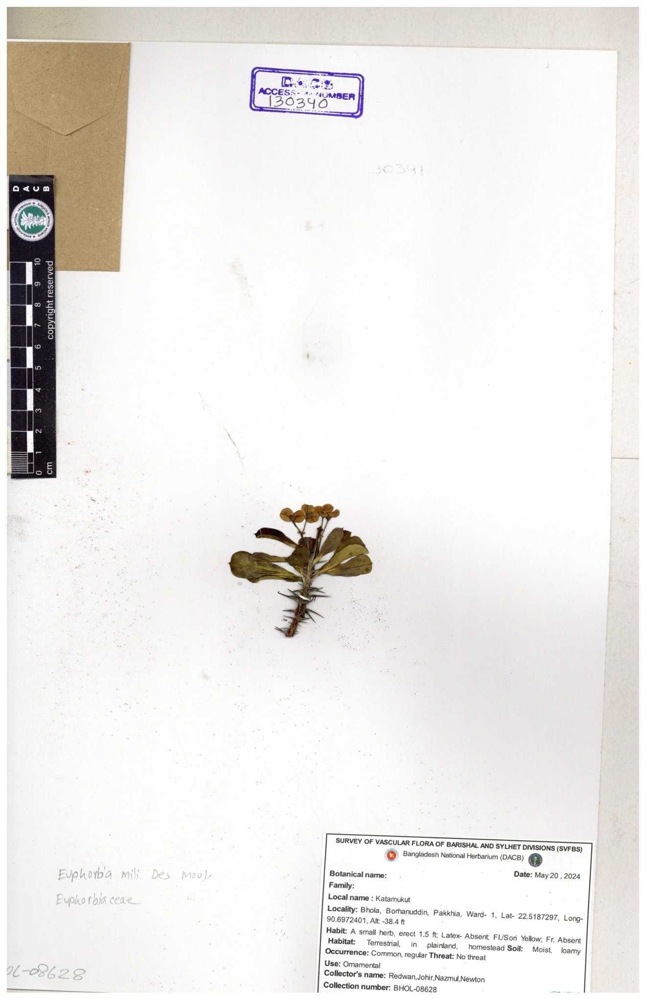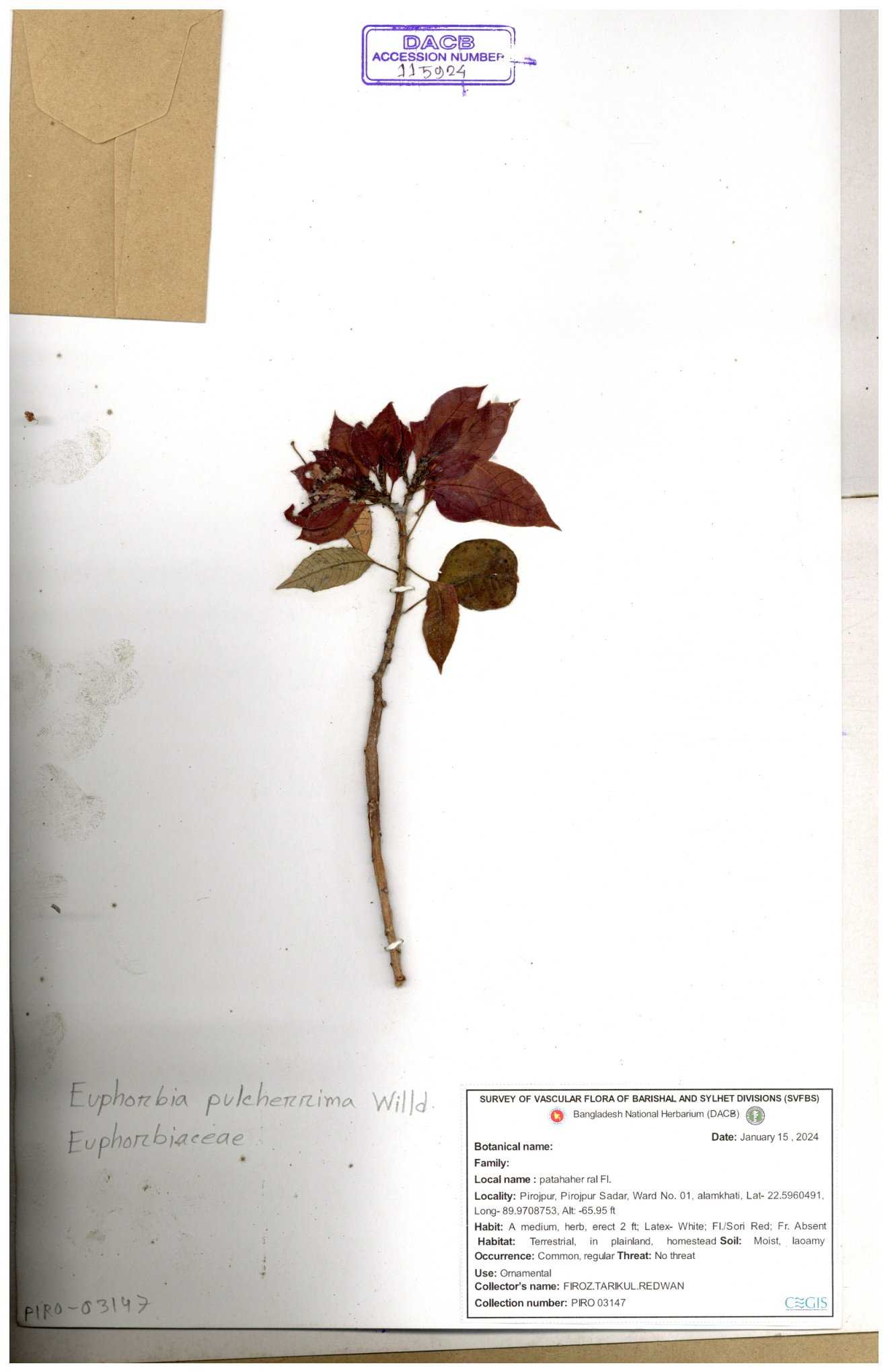 | 11554 | Euphorbiaceae | Euphorbia H.B.K | A.M.Huq | H-5674 30-11--0001 |