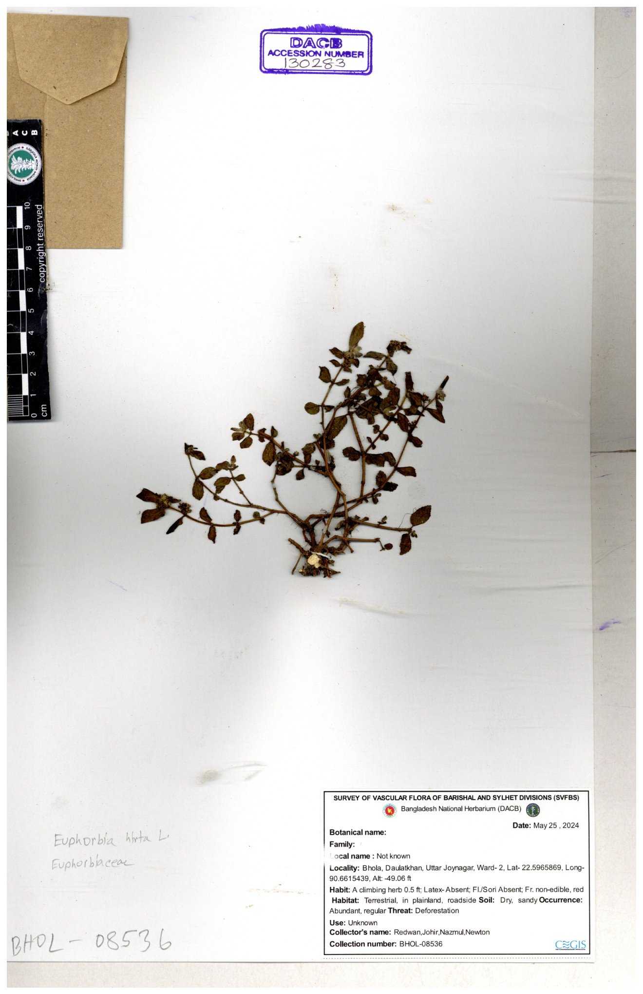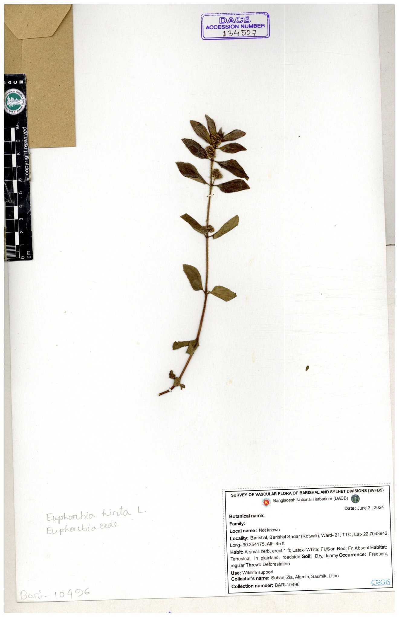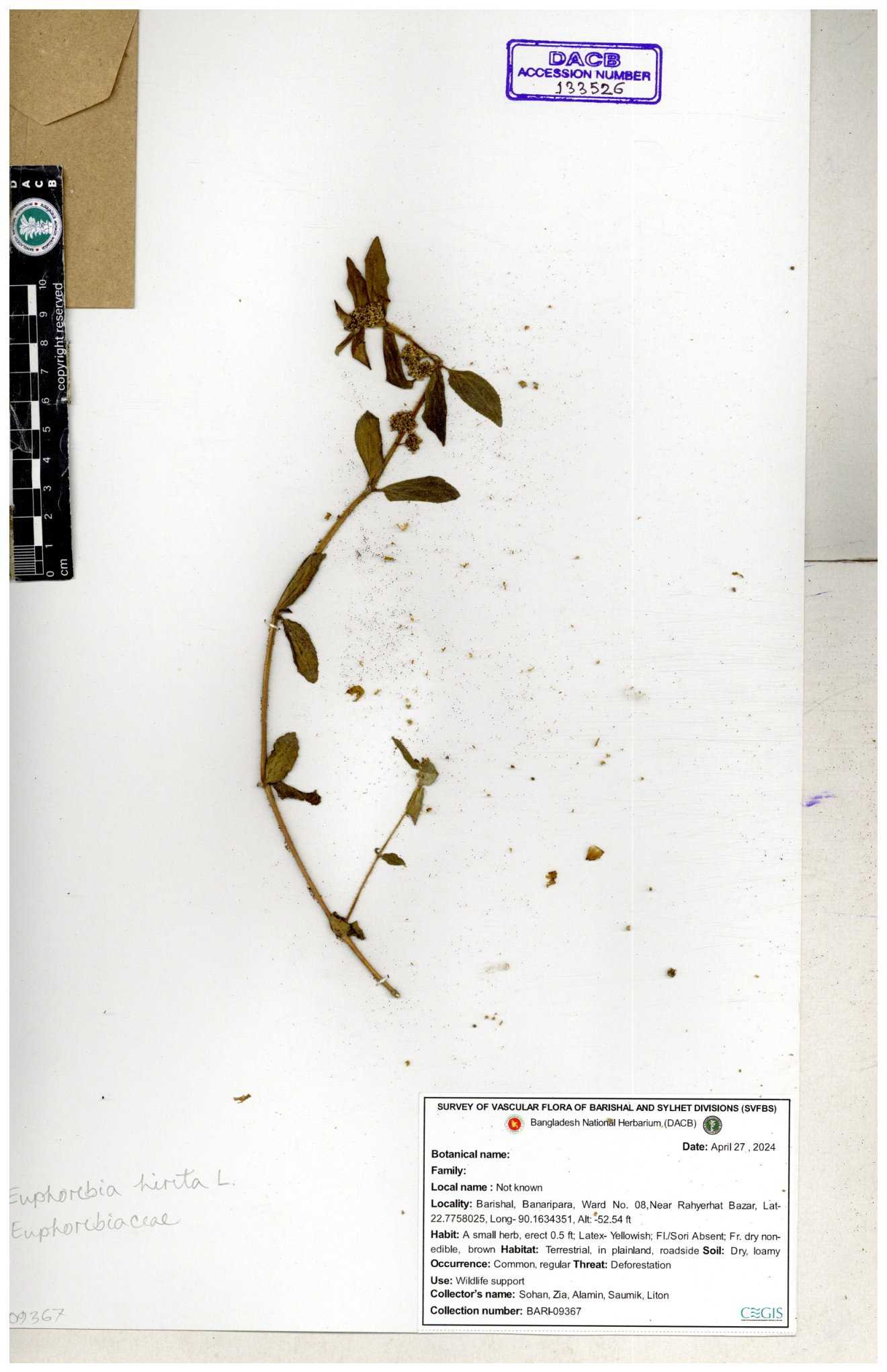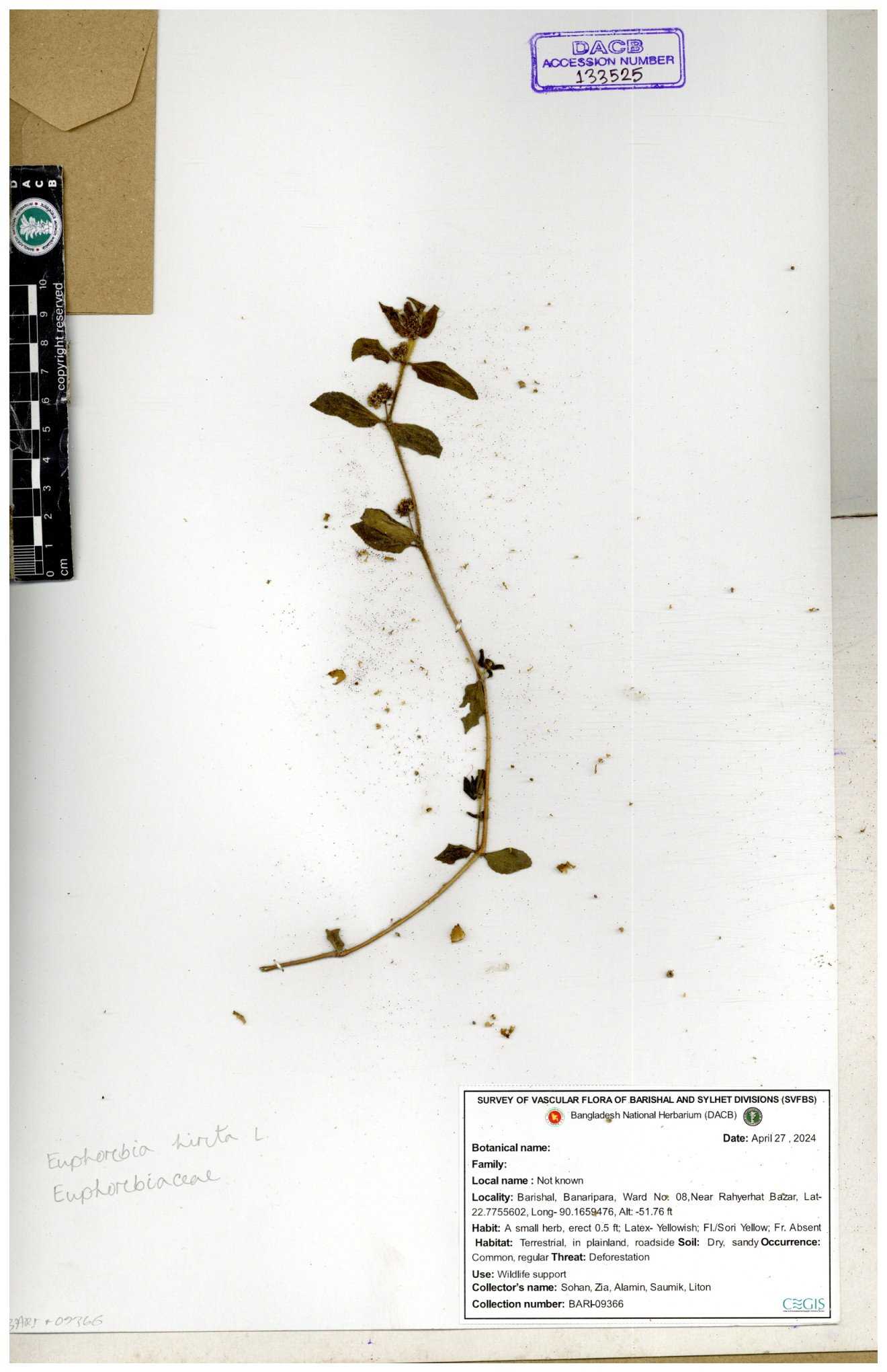 | 134287 | Euphorbiaceae | Euphorbia heterophylla | Sohan, Zia, Alamin, Saumik, Liton | 30-11--0001 |