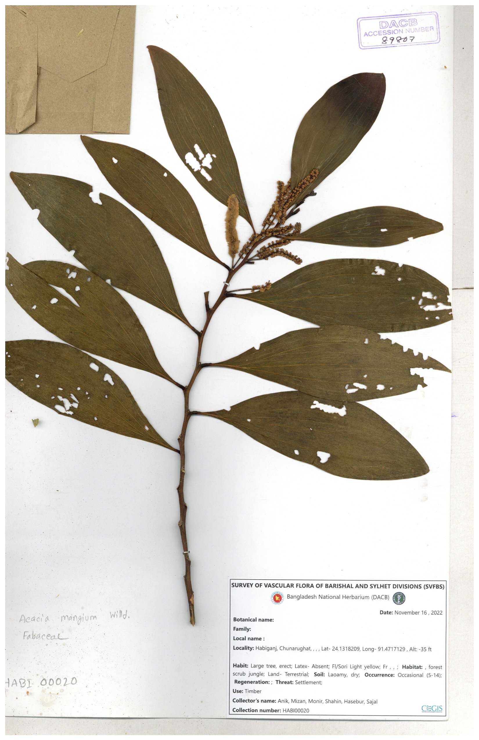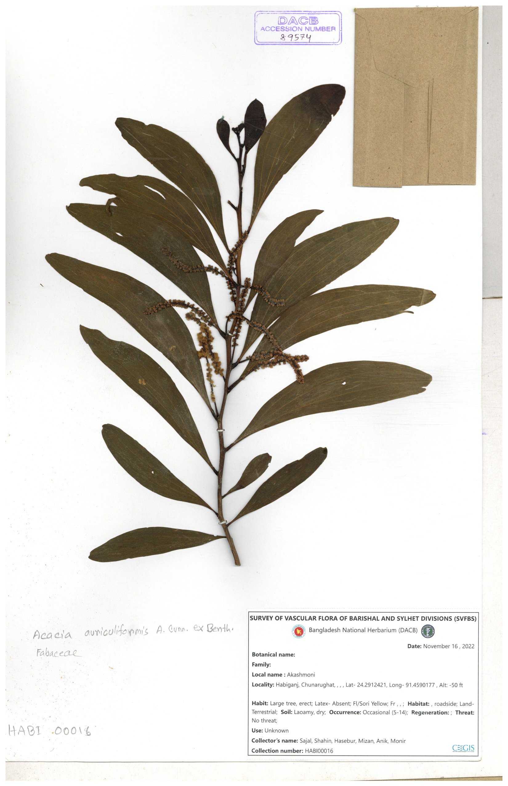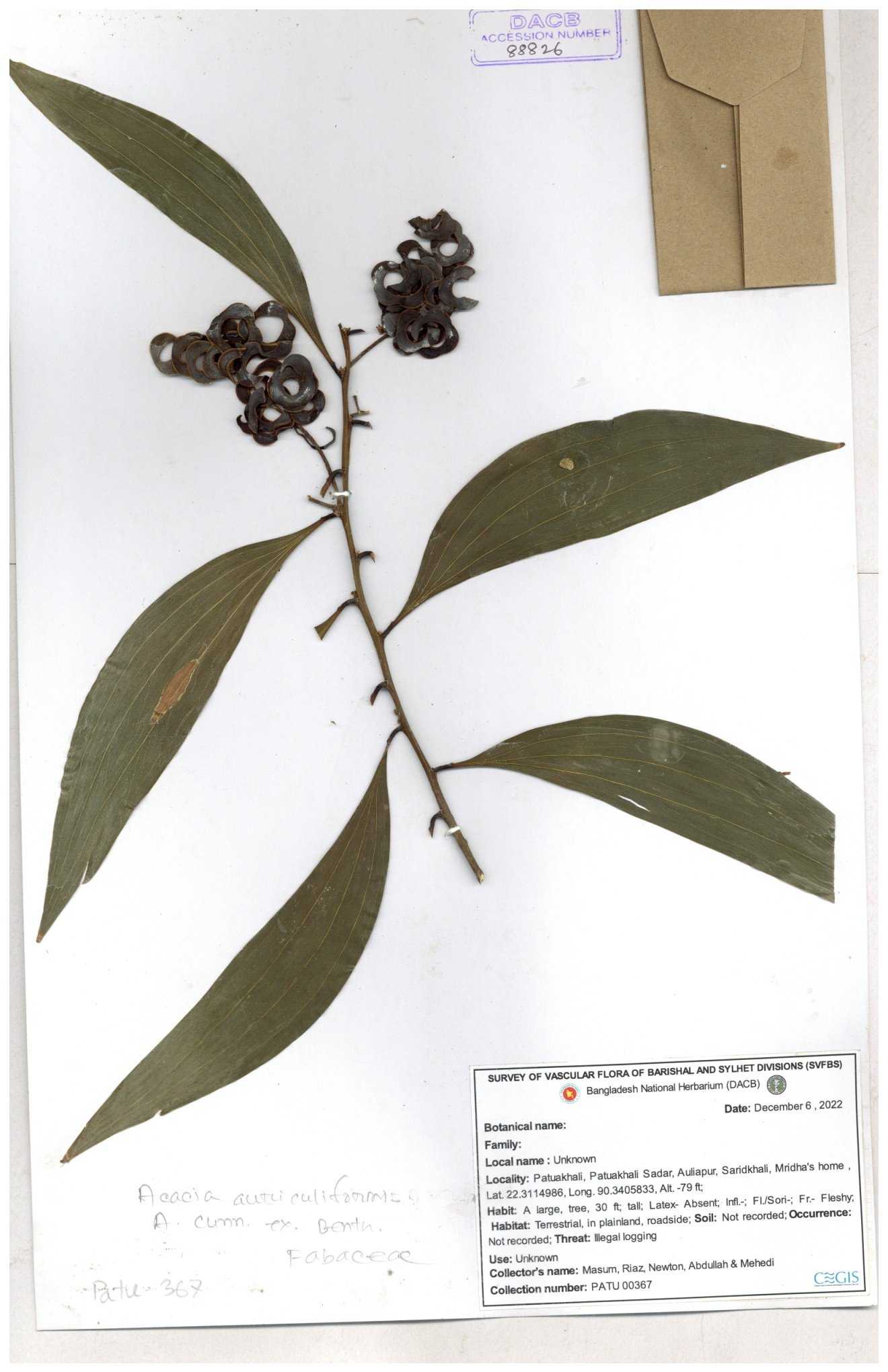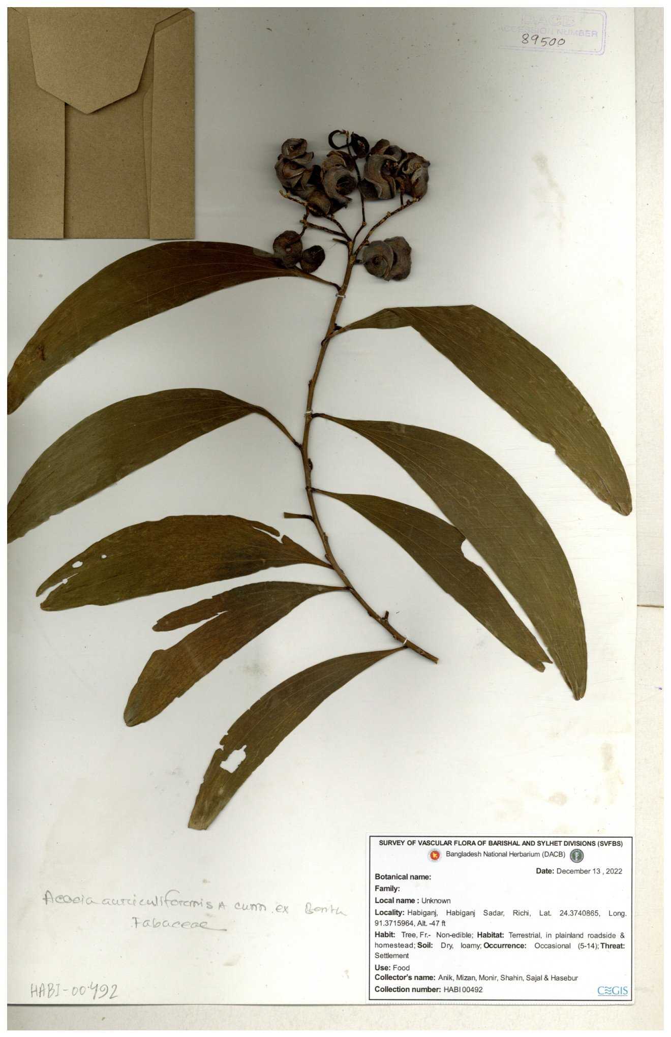 | 87326 | Fabaceae | Acacia auriculiformis A. cunn. | Acacia | Md. Hedayet Ullah | HU- 0025 10-11-2022 |