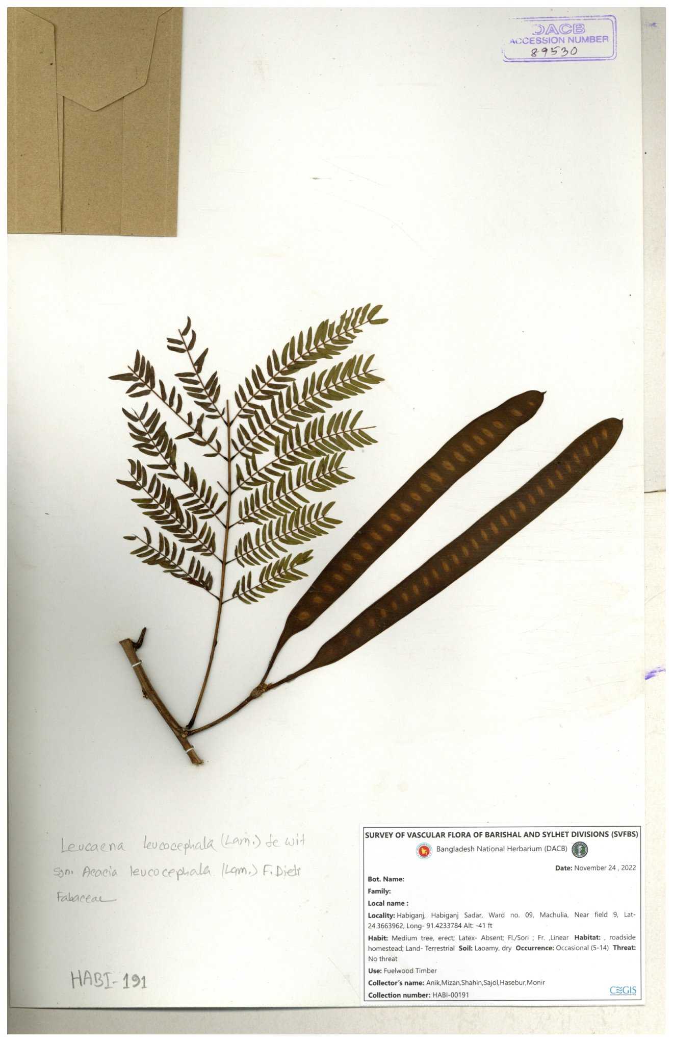 | 42339 | Fabaceae | Acacia auriculiformis | Sarder Nasir Uddin | N-5419 19-08-2014 |
