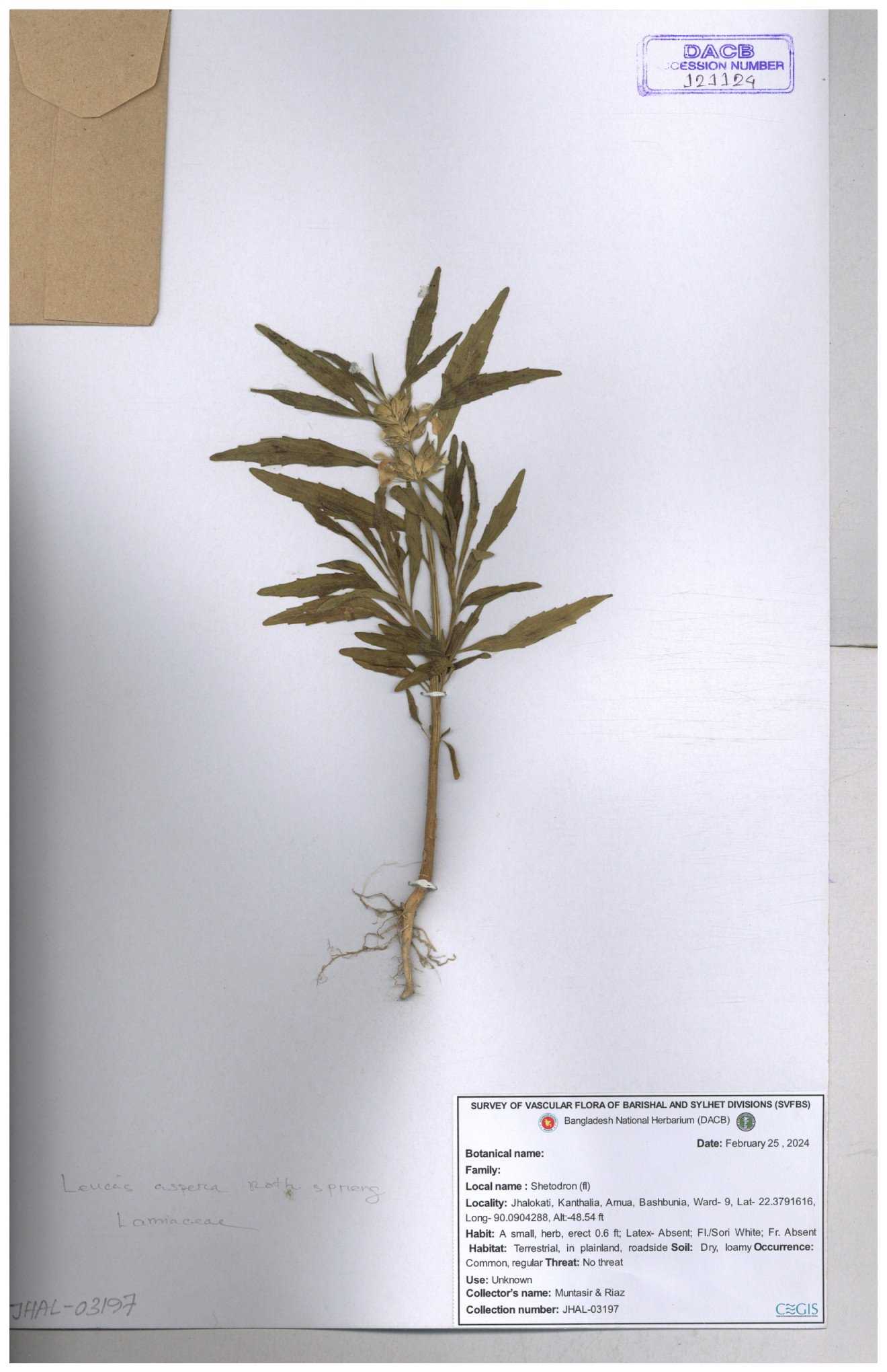 | 65332 | Lamiaceae | Leucas aspera (Willd.) Link | Joyanta, Mominur, Kamrul & Suborno | JCR-5242 26-04-2027 |