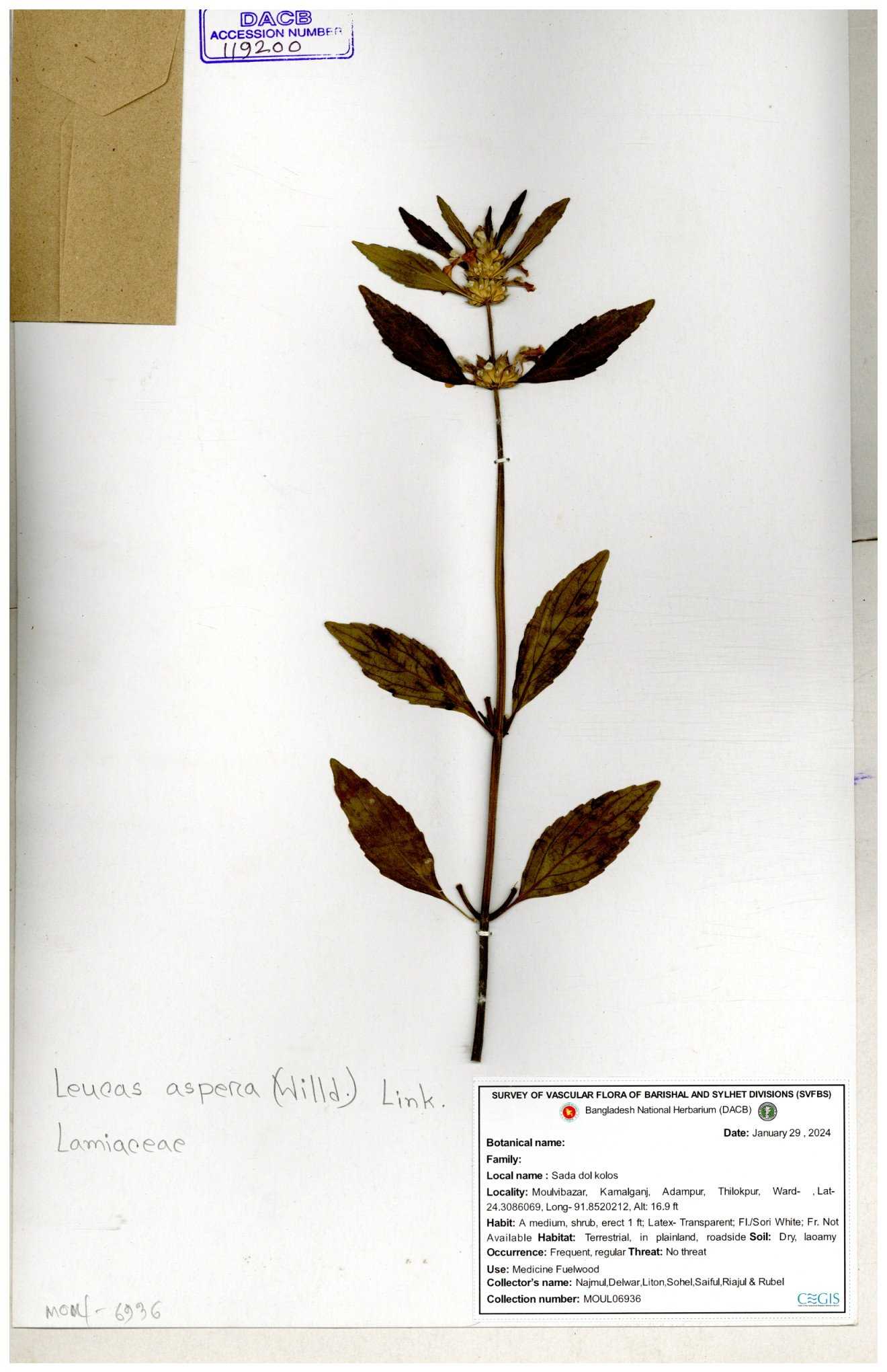 | 119200 | Lamiaceae | Leucas aspera | 30-11--0001 |
