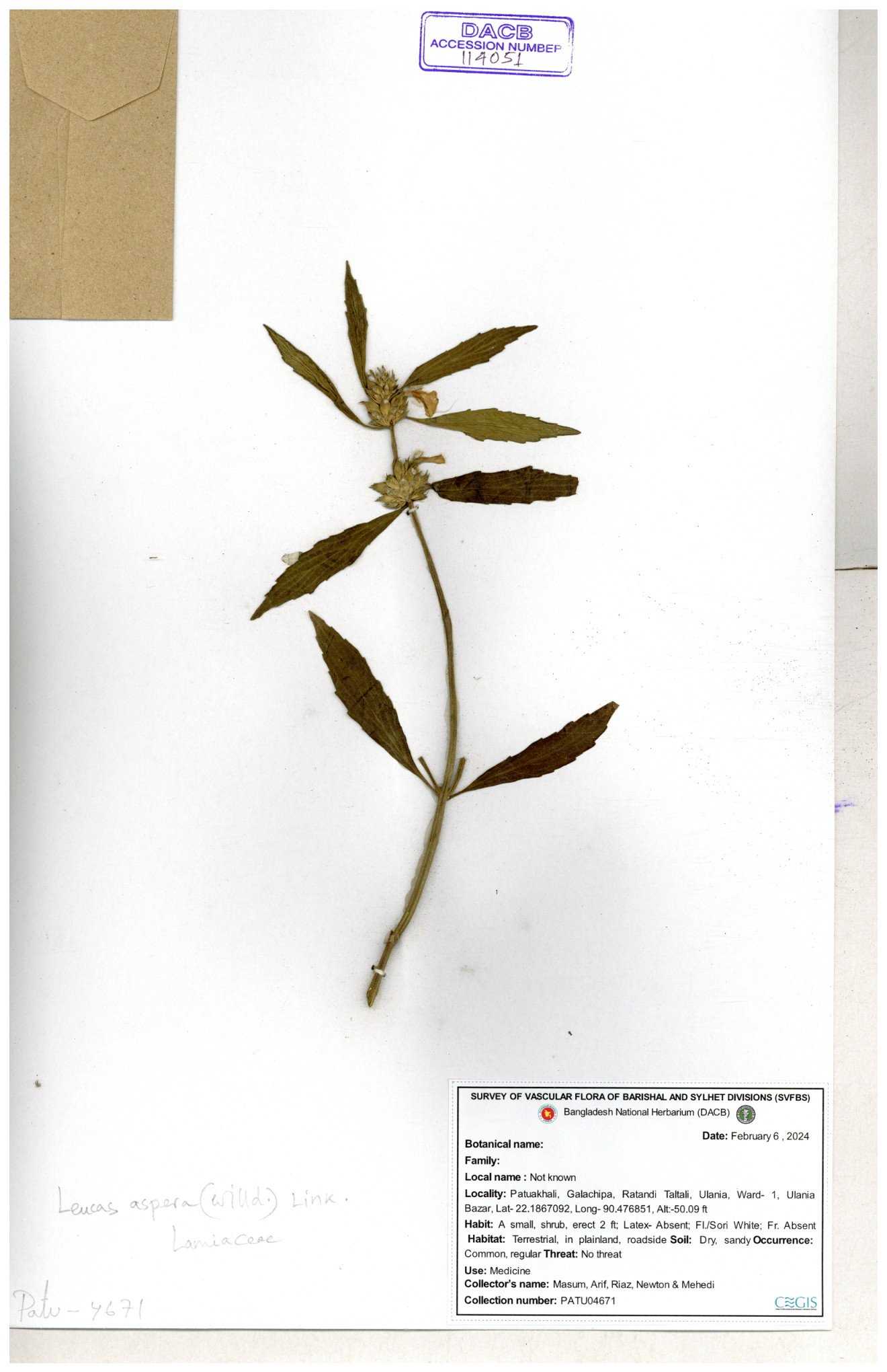 | 114051 | Lamiaceae | Leucas aspera | 30-11--0001 |