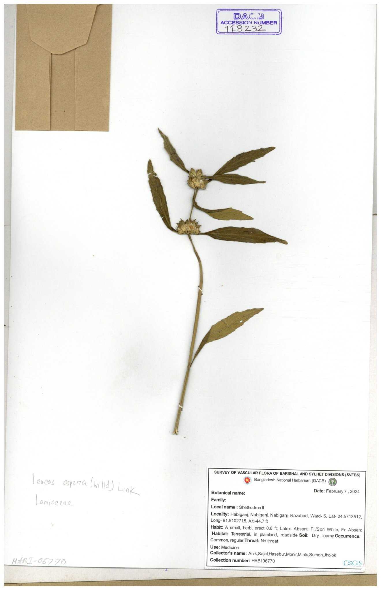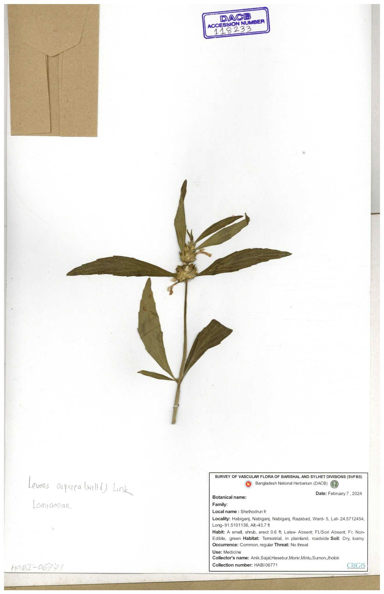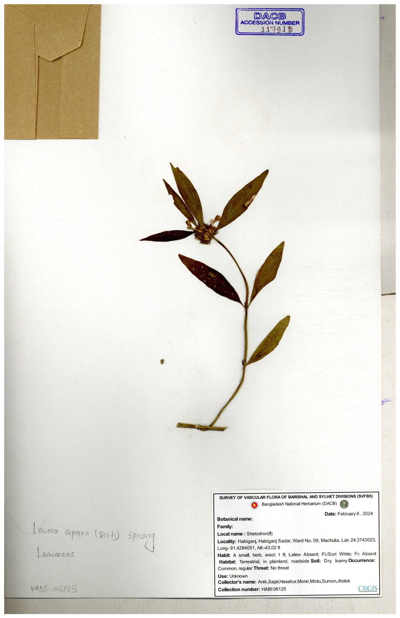 | 118232 | Lamiaceae | Leucas aspera | 30-11--0001 |