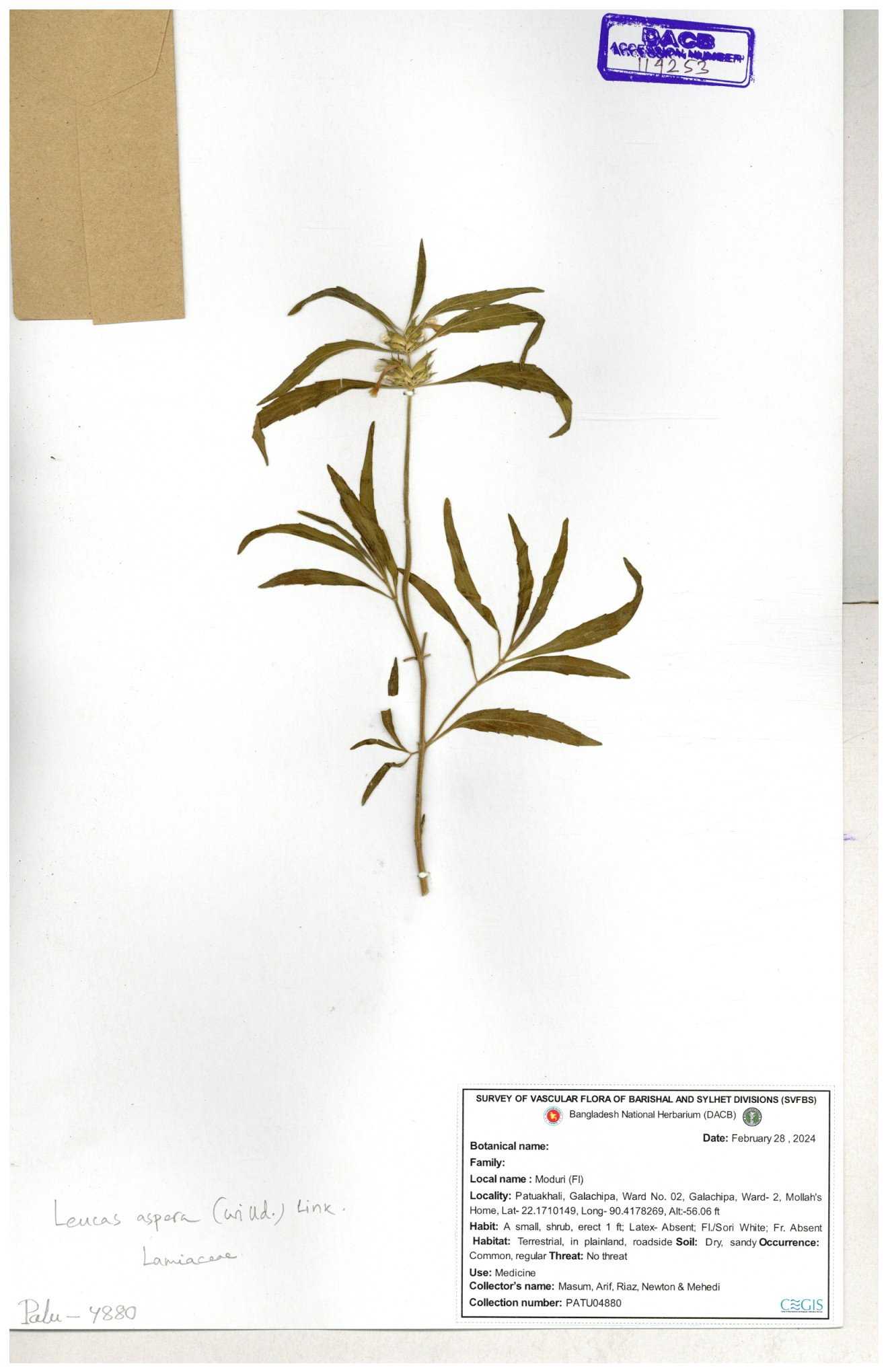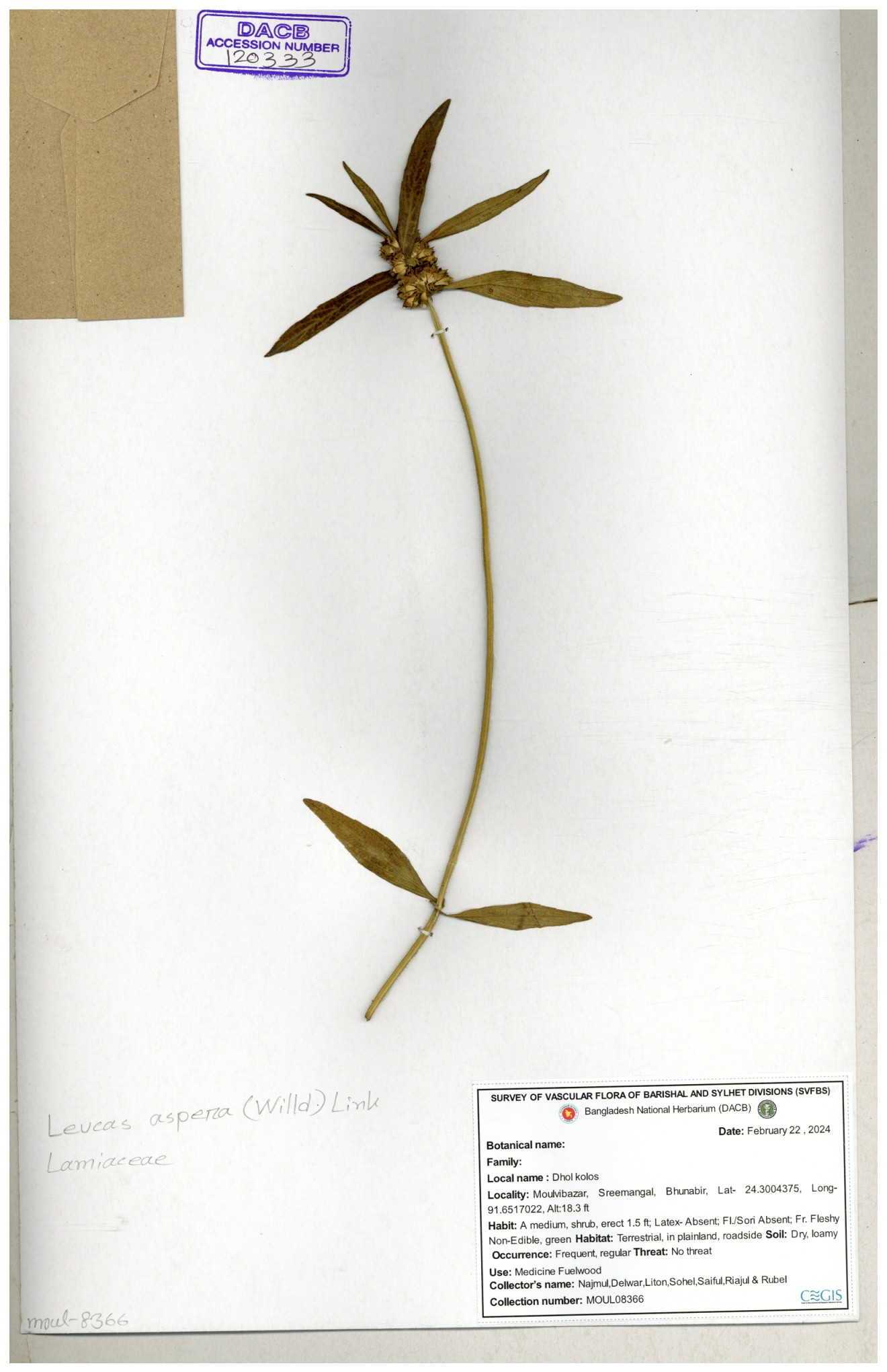| 120332 | Lamiaceae | Leucas aspera | 30-11--0001 |
