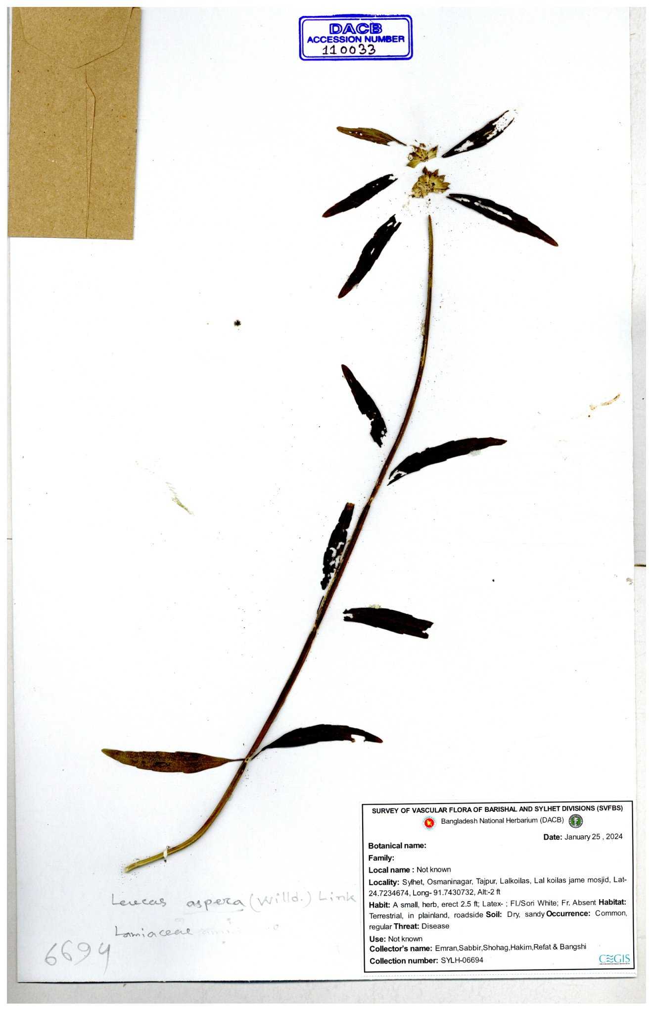 | 109699 | Lamiaceae | Leucas aspera | 30-11--0001 |