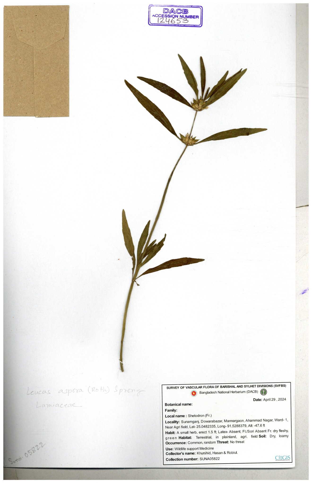 | 134422 | Lamiaceae | Leucas zeylanica | Sohan, Zia, Alamin, Saumik, Liton | 30-11--0001 |