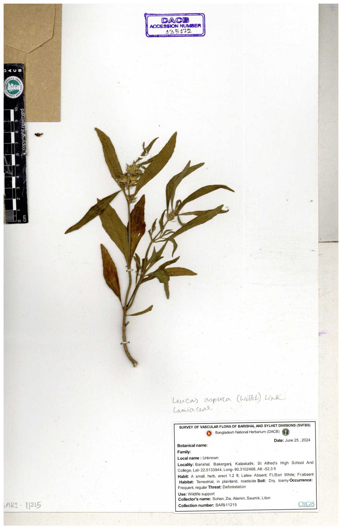 | 135172 | Lamiaceae | Leucas aspera | 30-11--0001 |