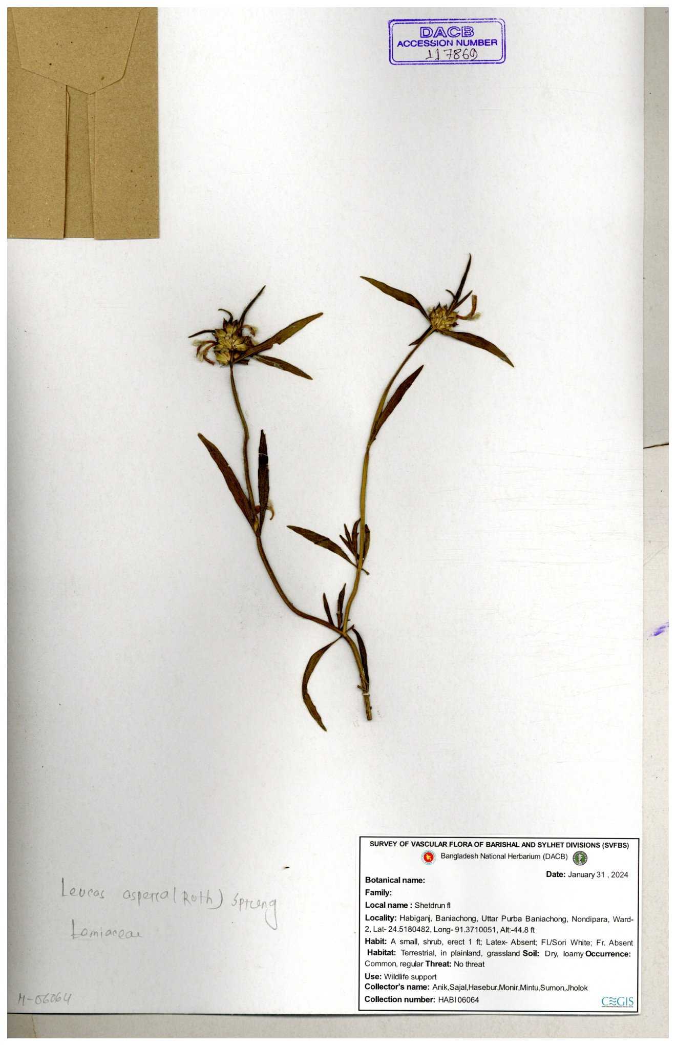 | 77069 | Lamiaceae | Leucas aspera | 30-11--0001 |