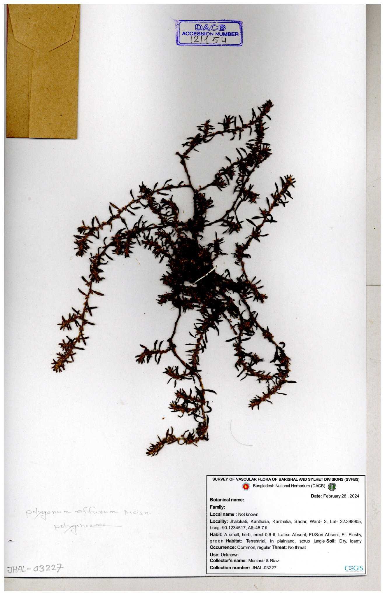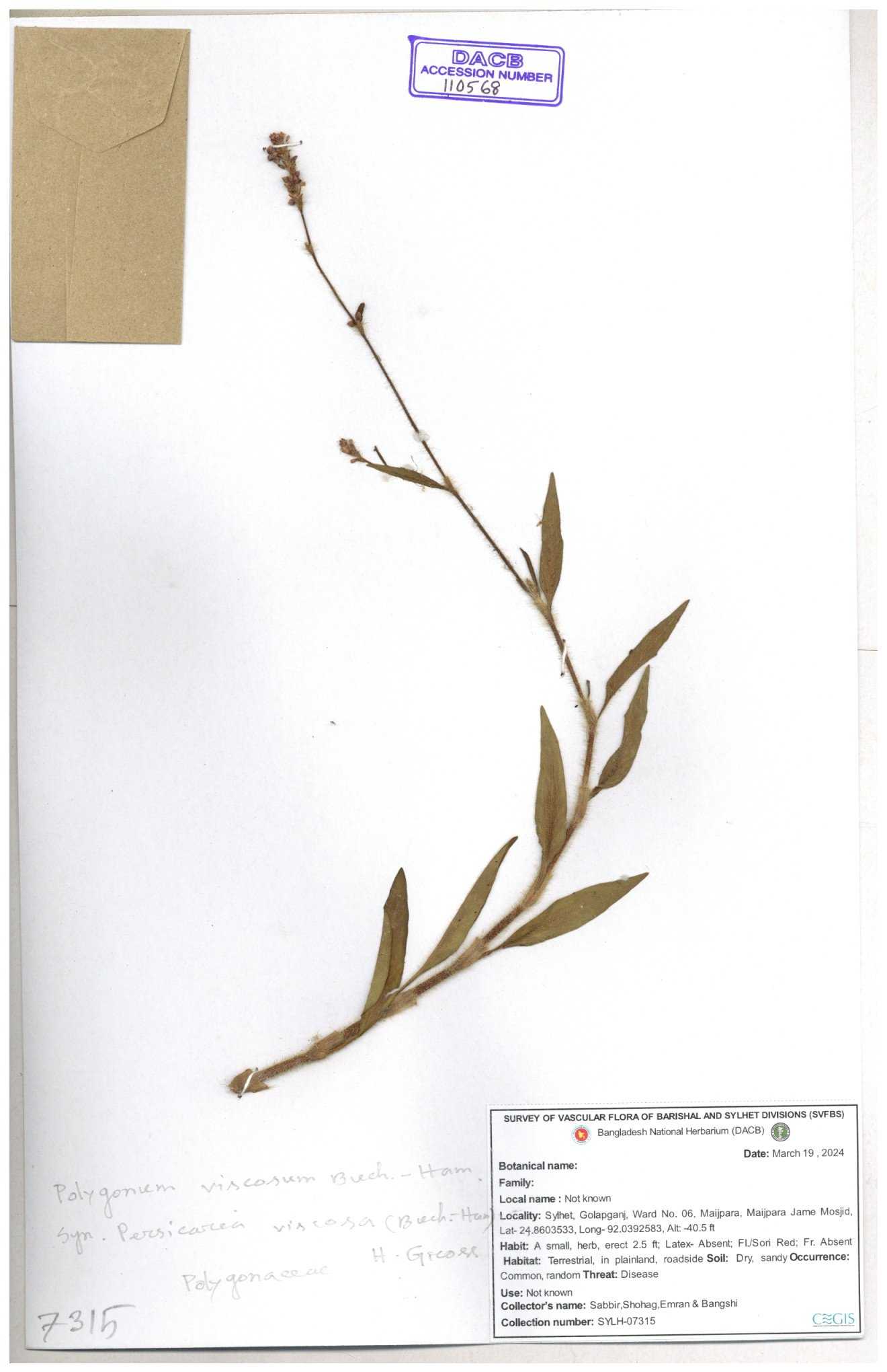| 85463 | Polygonaceae | Polygonum hydropiper | I Hossen, Ms. Islam & MR Miah | IH-2466 19-12-2016 |